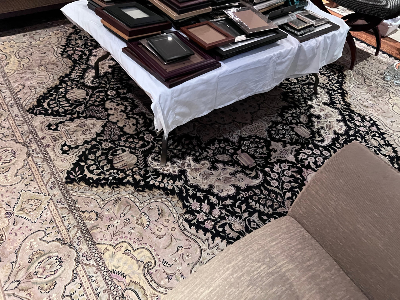 100% Wool Rug, Black Border- 14.5ft x 10ft.