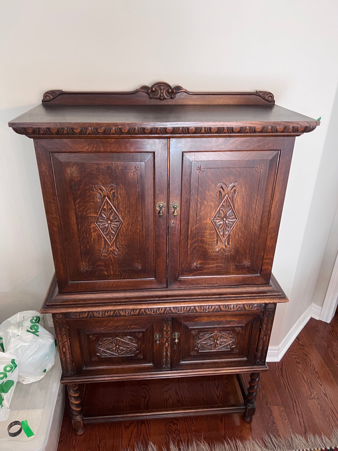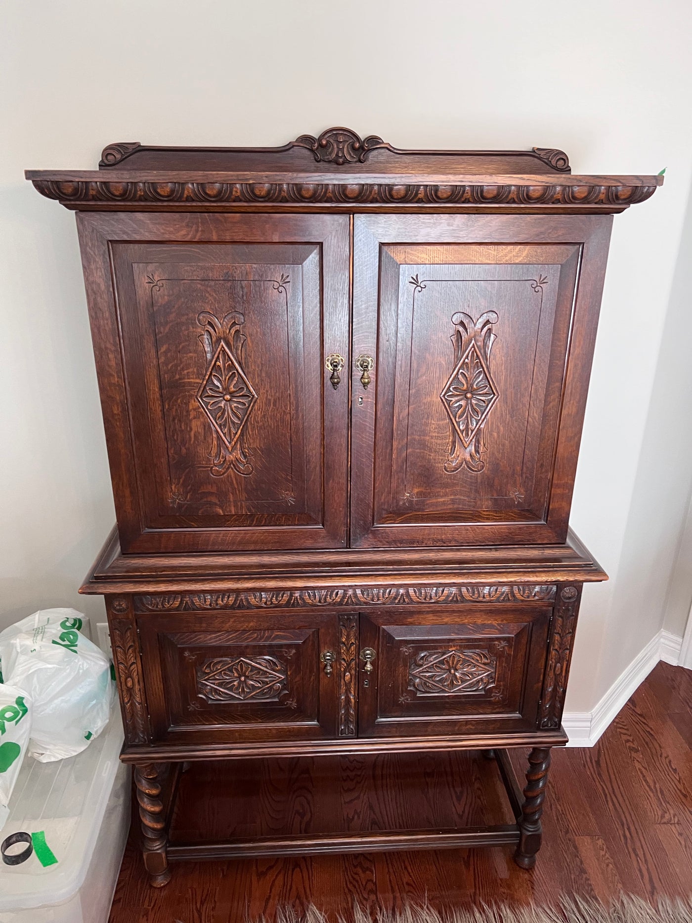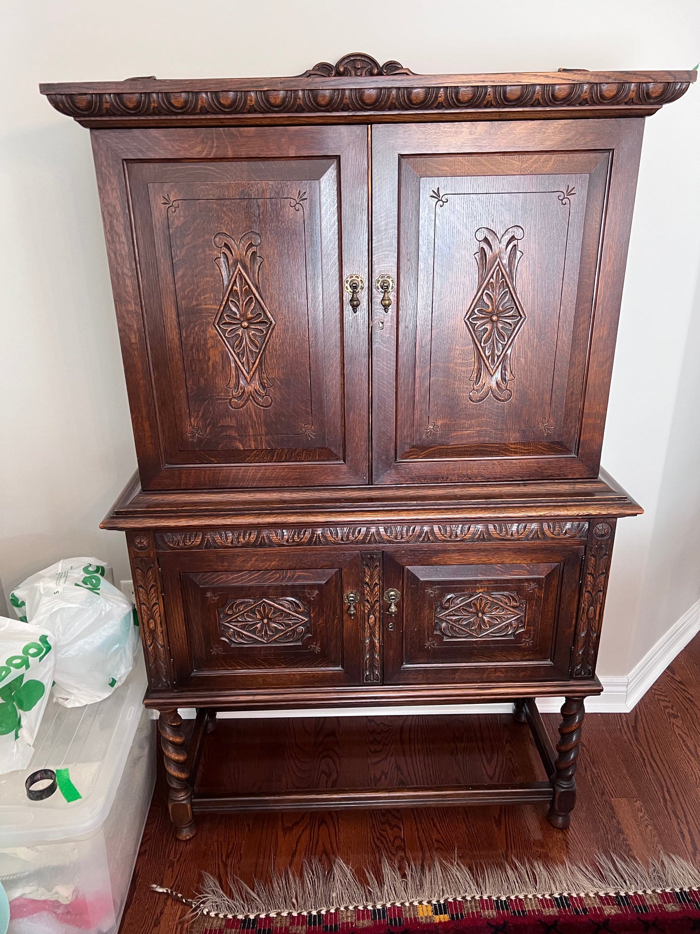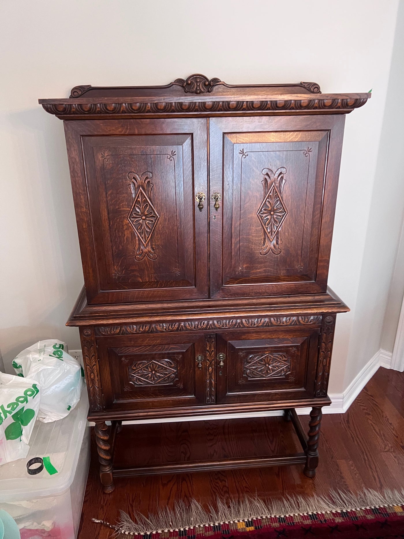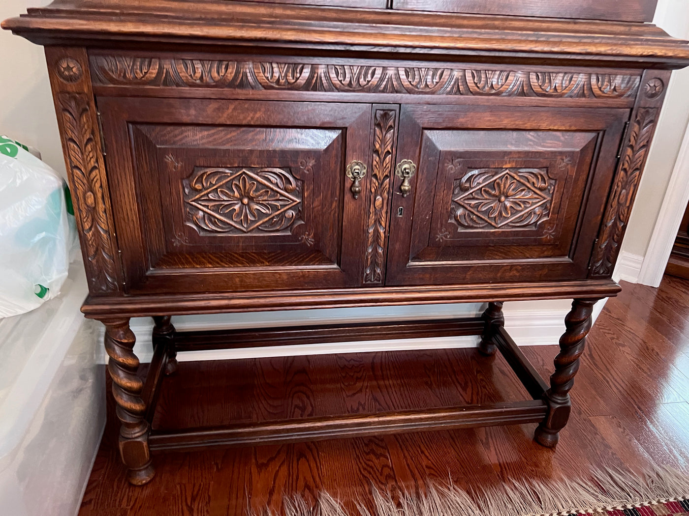 Antique Golden Oak Wood, Barley Twist Hutch.