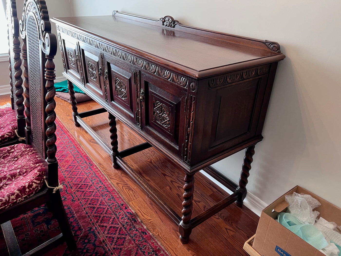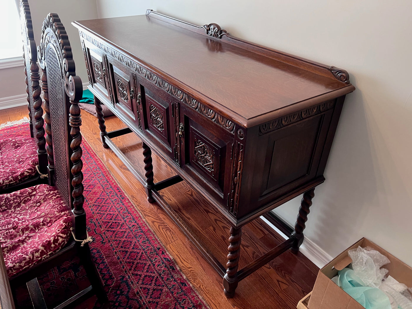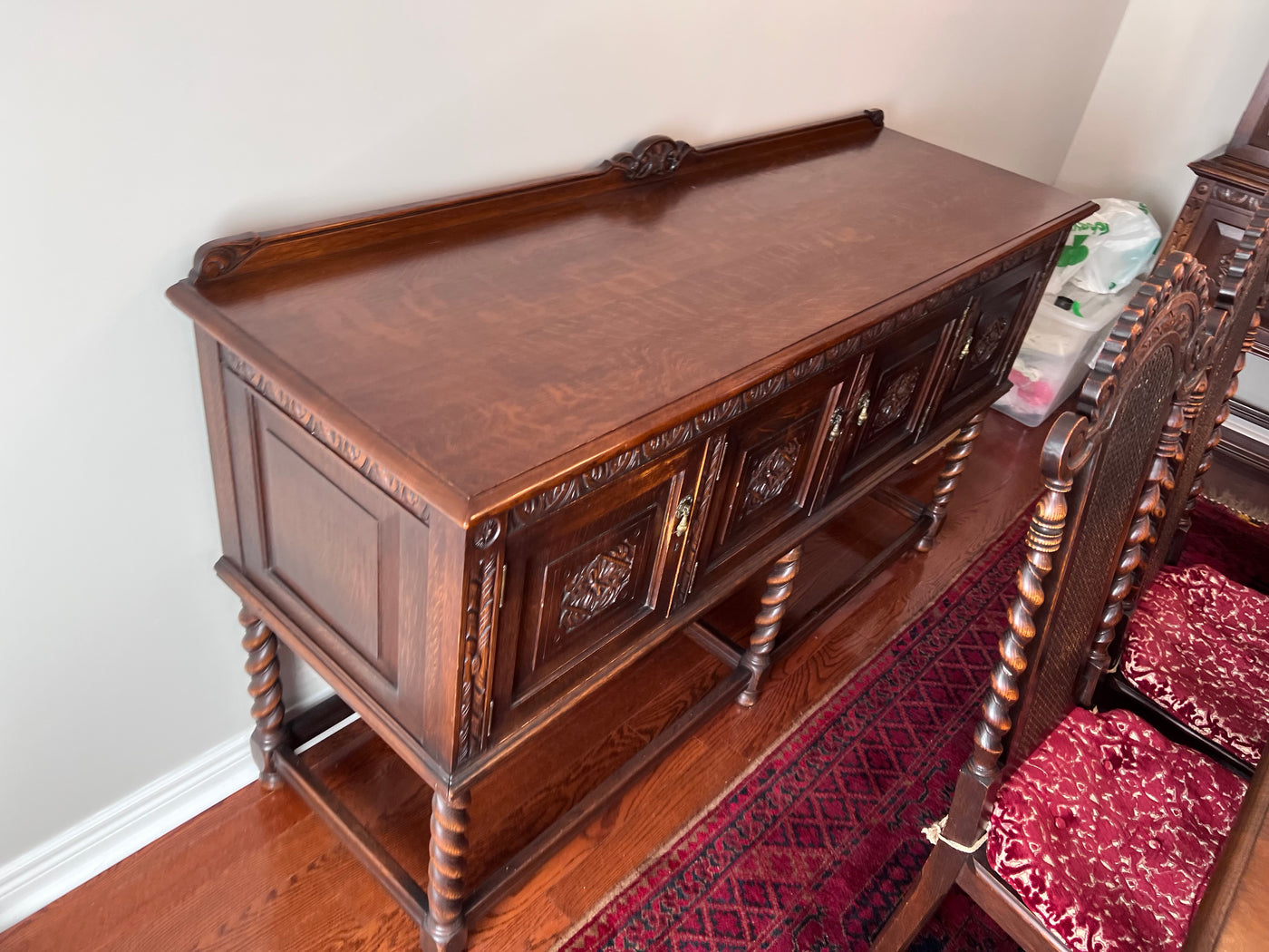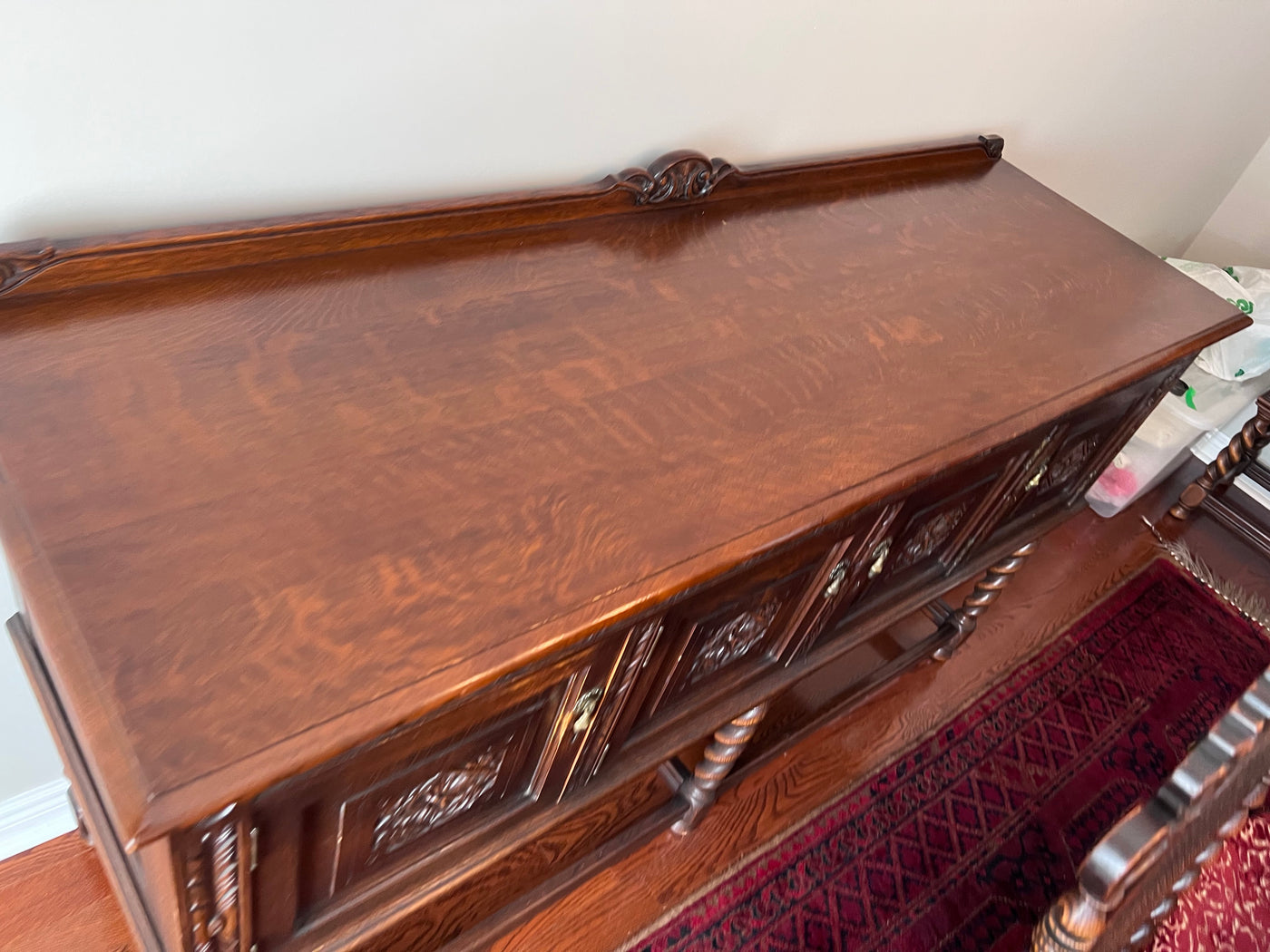 Antique Golden Oak Wood Carved, Barley Twist Sideboard.