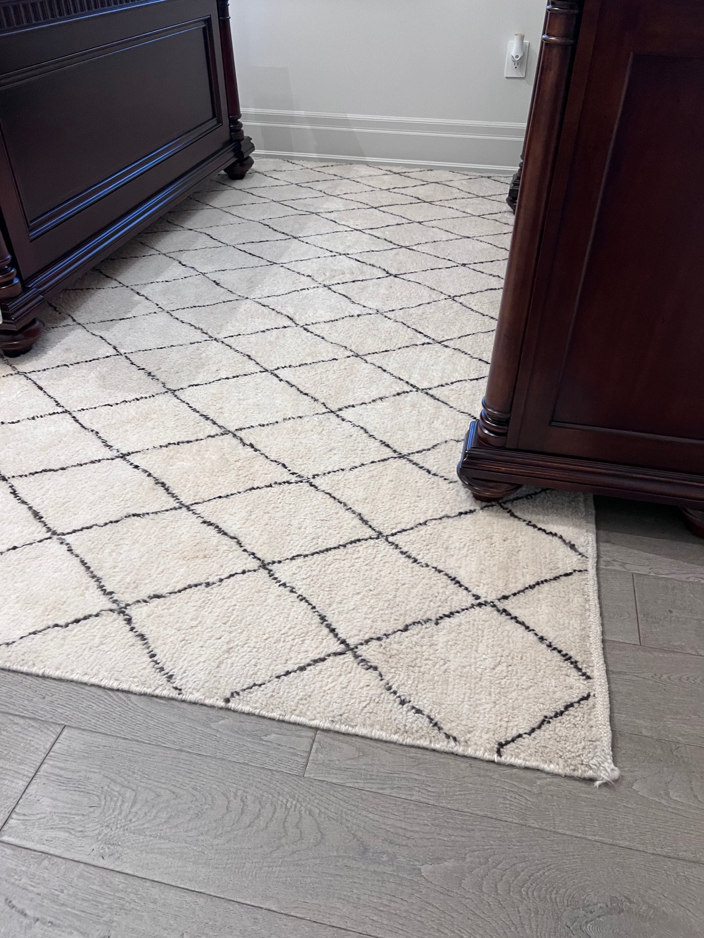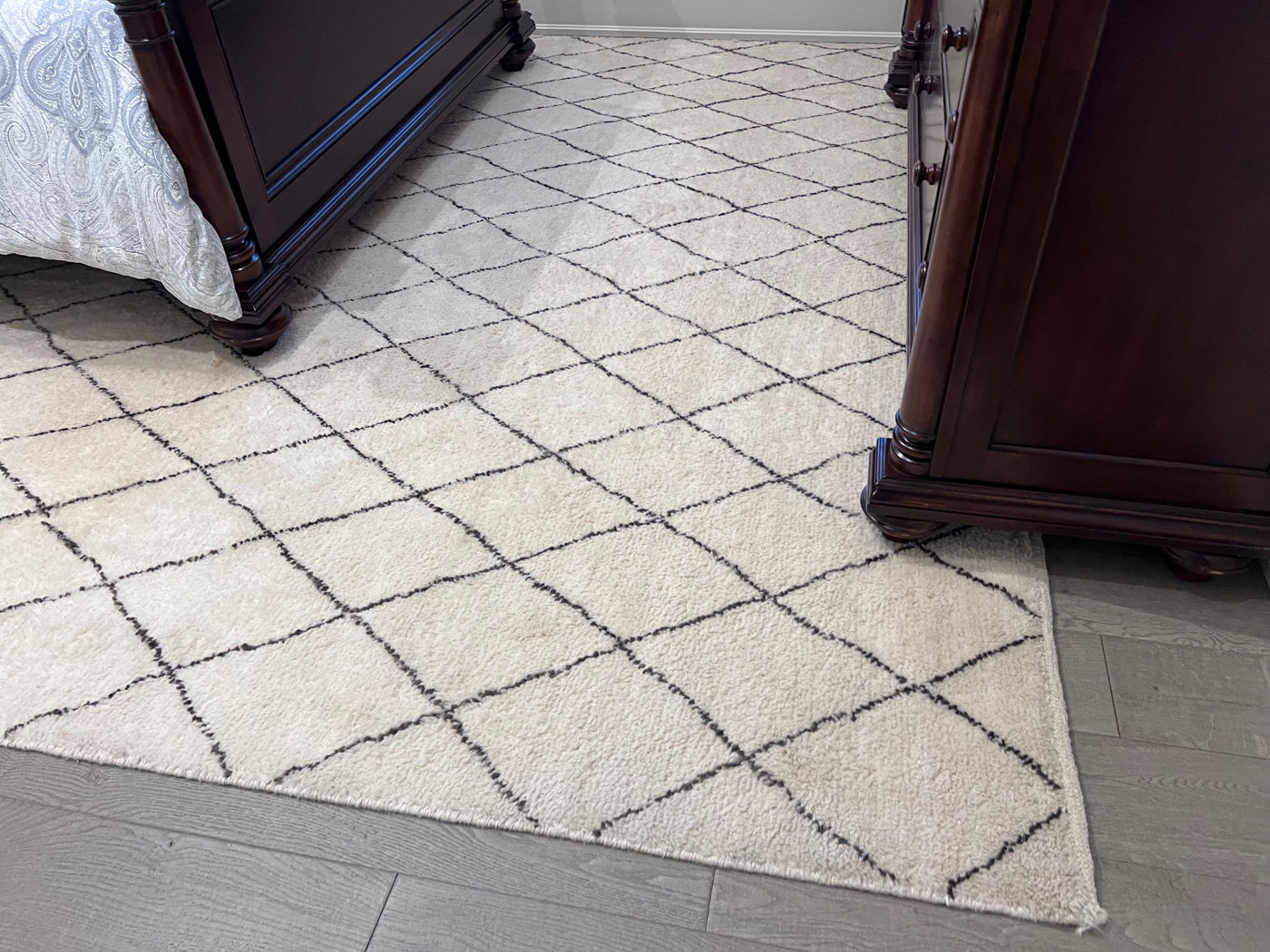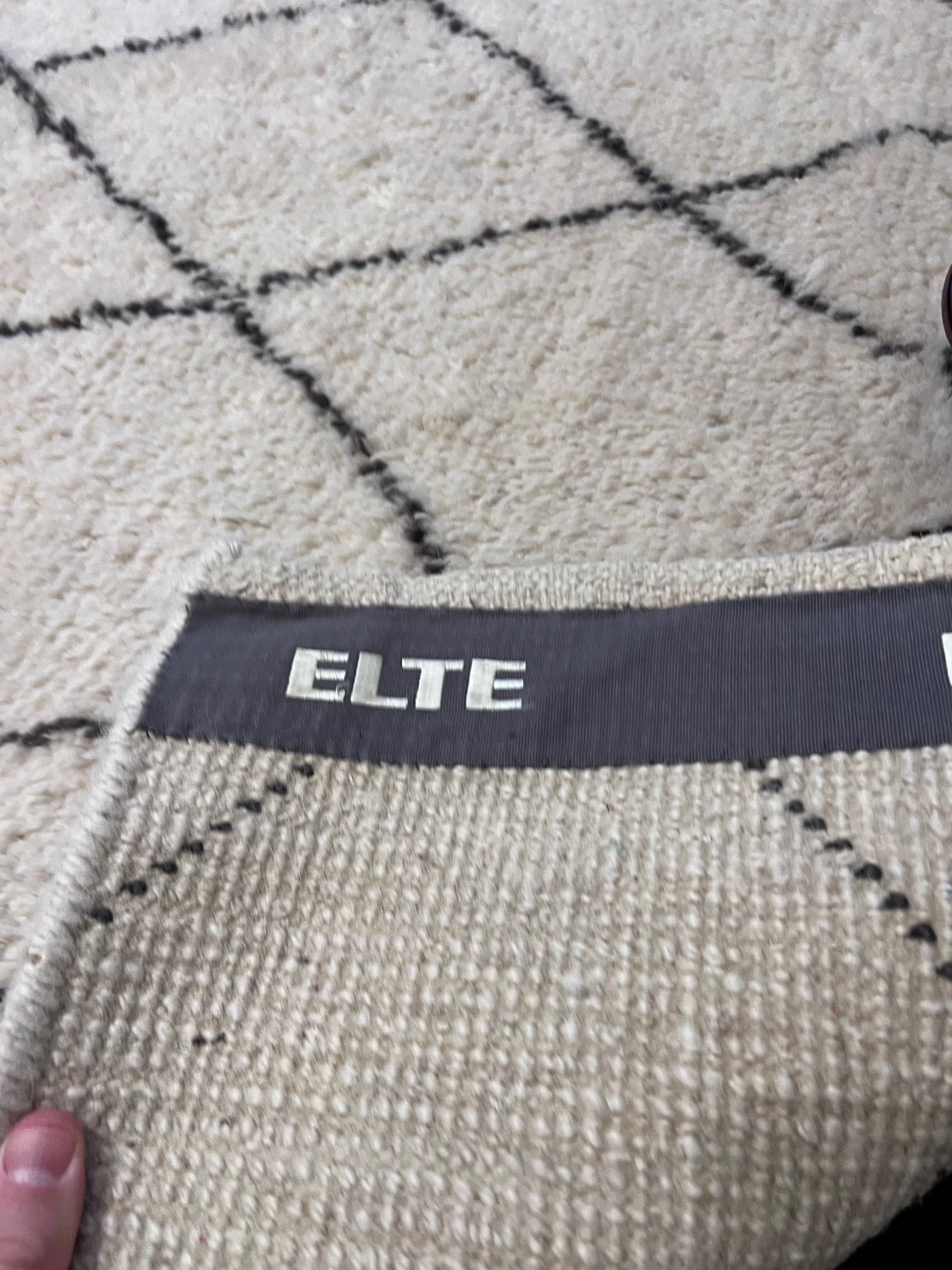 ELTE 100% Wool Rug Moroccan Collection Cream w/Gray Diamond Pattern 9x12ft.