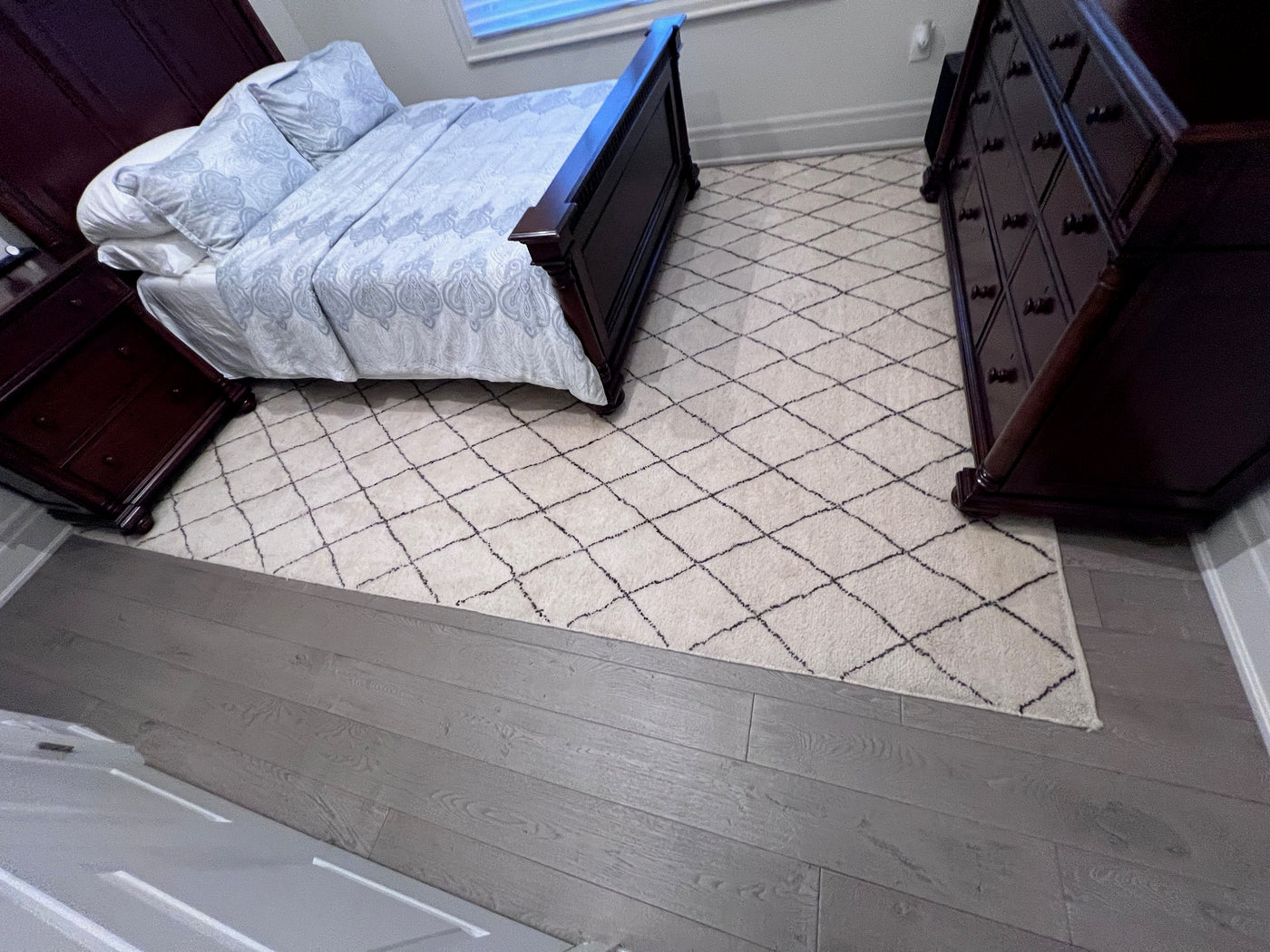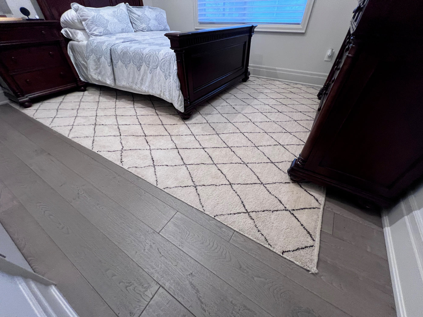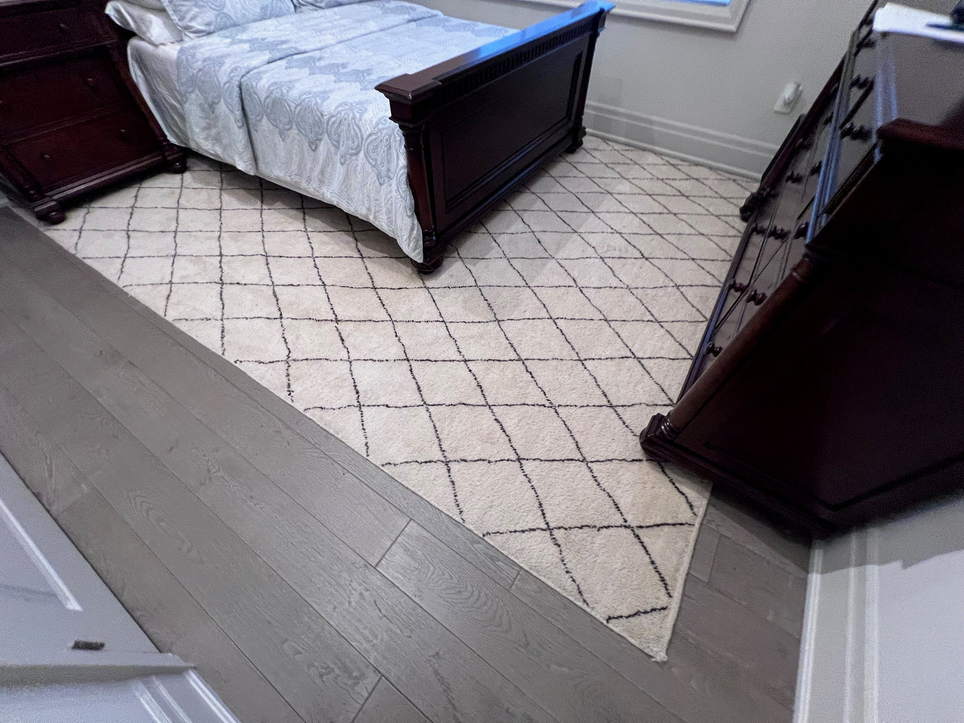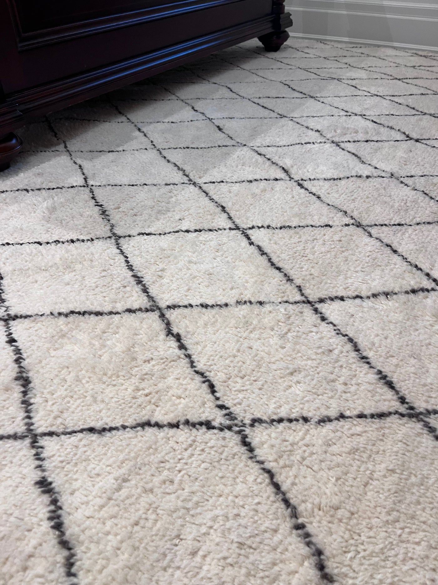 ELTE 100% Wool Rug Moroccan Collection Cream w/Gray Diamond Pattern 9x12ft.