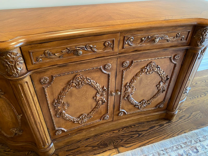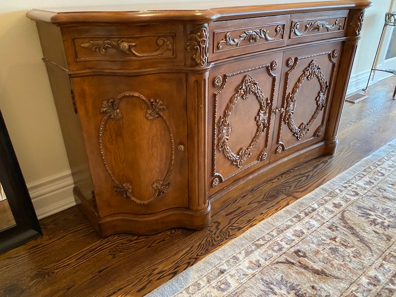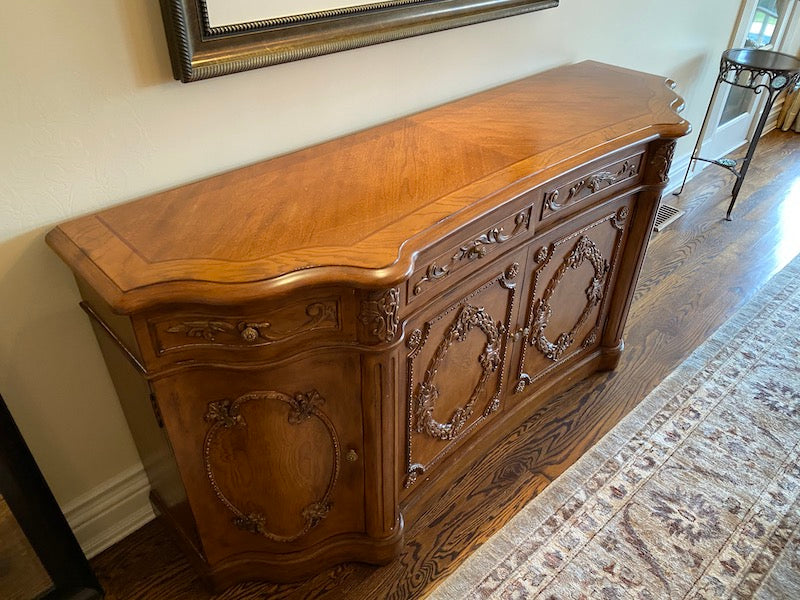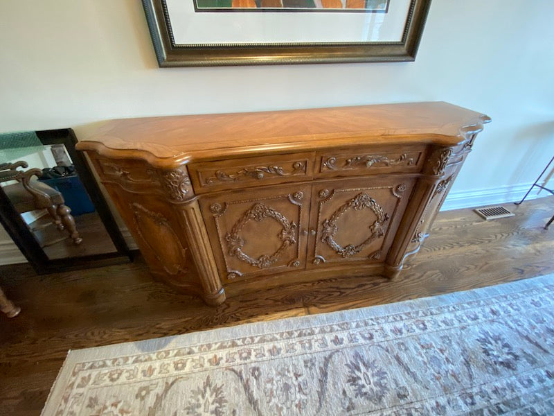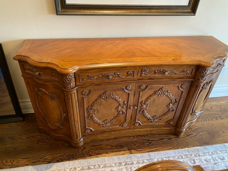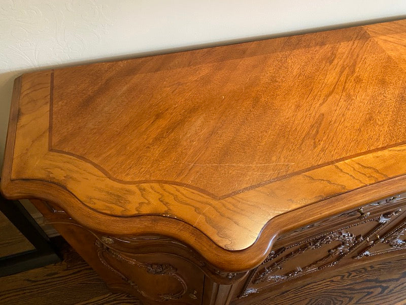 This piece is in very good condition overall-- there is 1-2 minor scratches on the surface of the cabinet. Please view up close pictures for full disclosure.