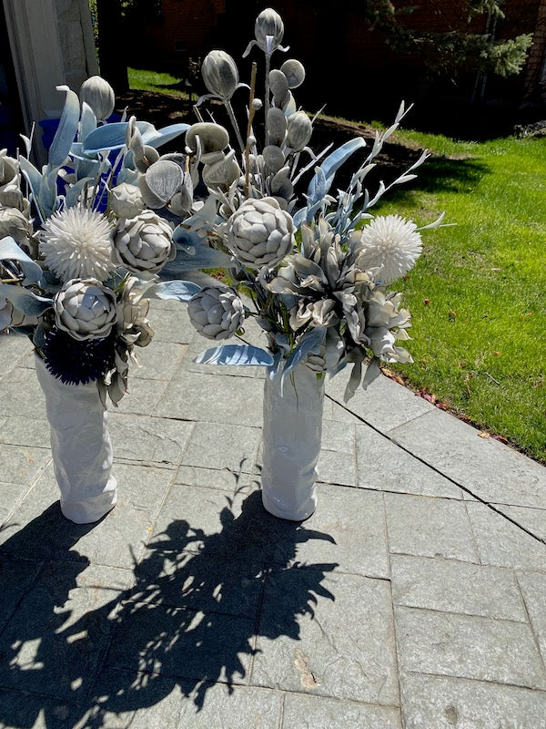 2 White Decorative Vases.