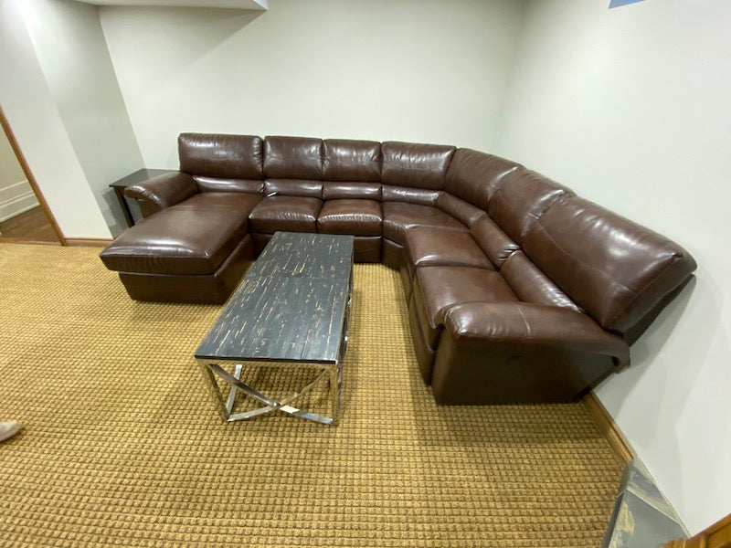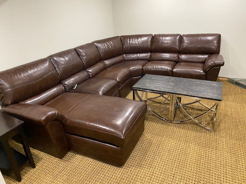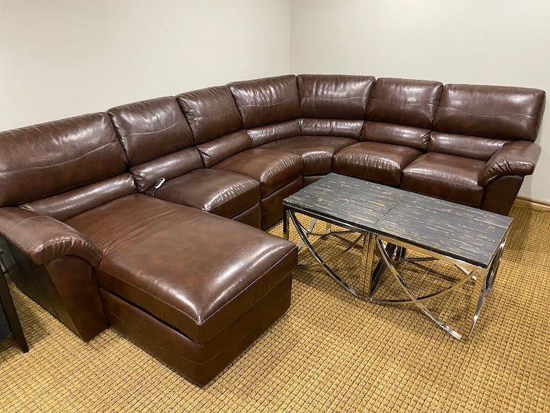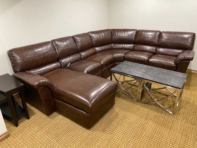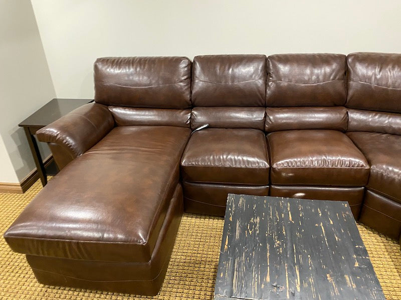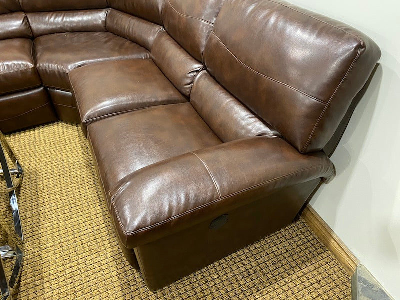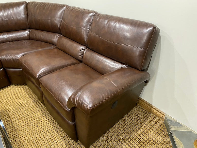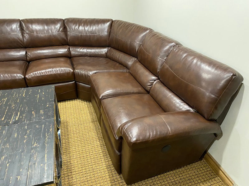 La Z Boy Power Reclining Brown Leather Sectional Sofa.