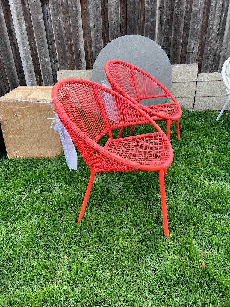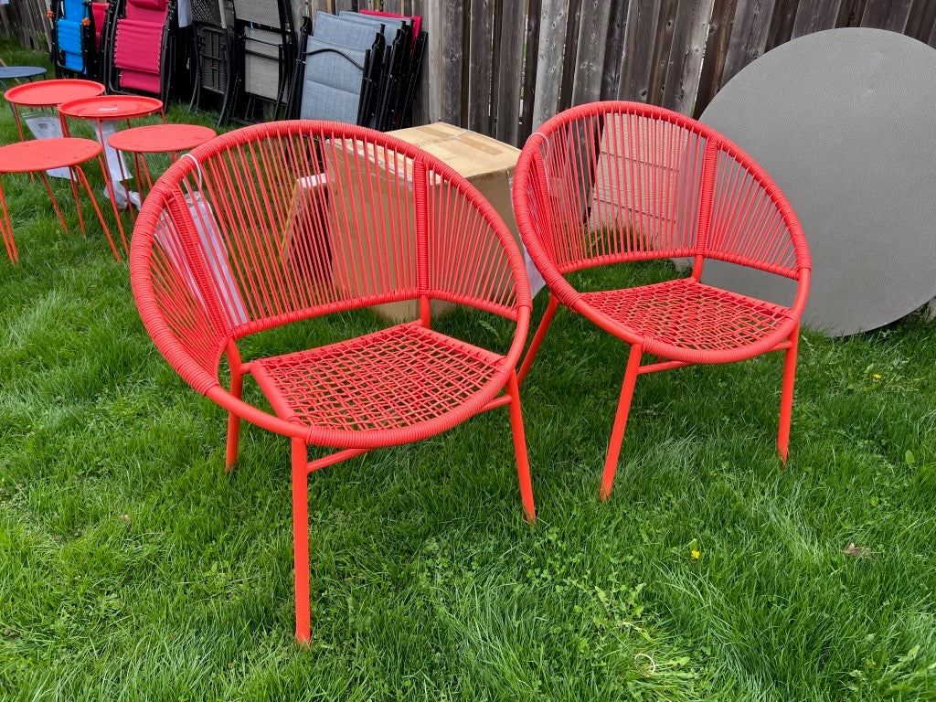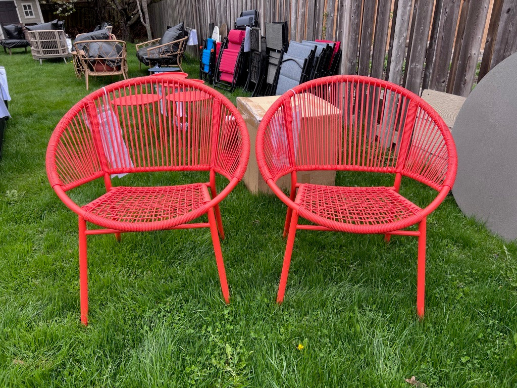 Pair of Orange Steel and Wicker Egg Chairs