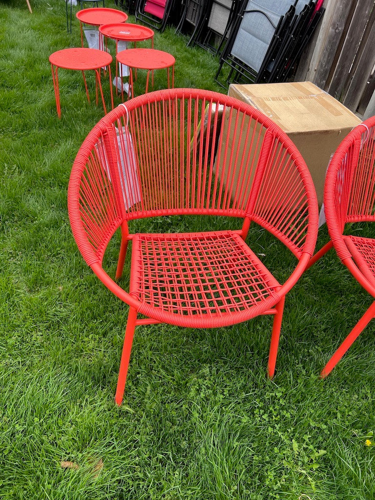 Pair of Orange Steel and Wicker Egg Chairs.