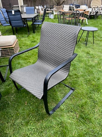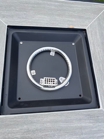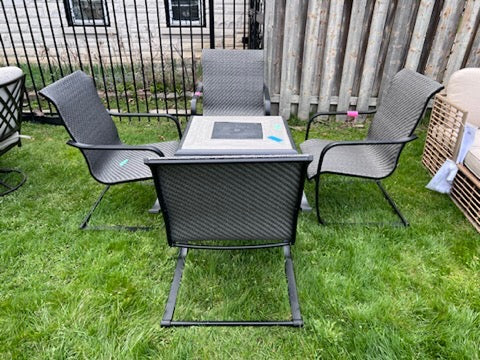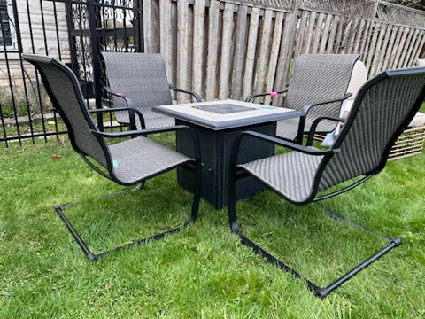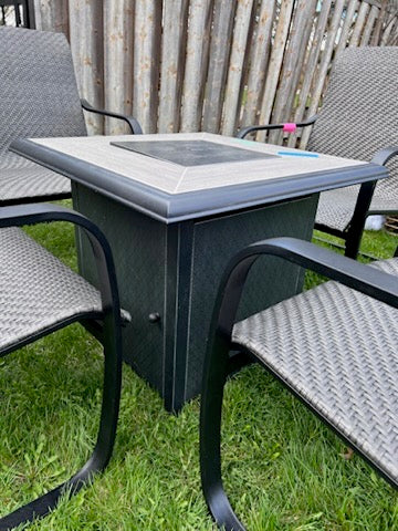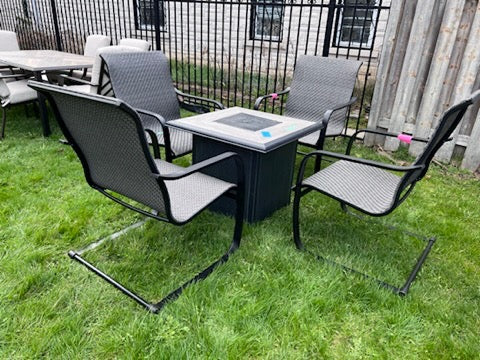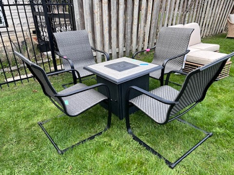 5-Piece Black/Frey Metal Outdoor Patio Fire Pit Seating Set. Propane Fire Pit.