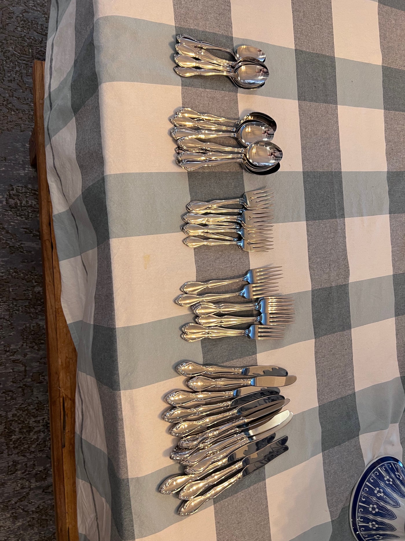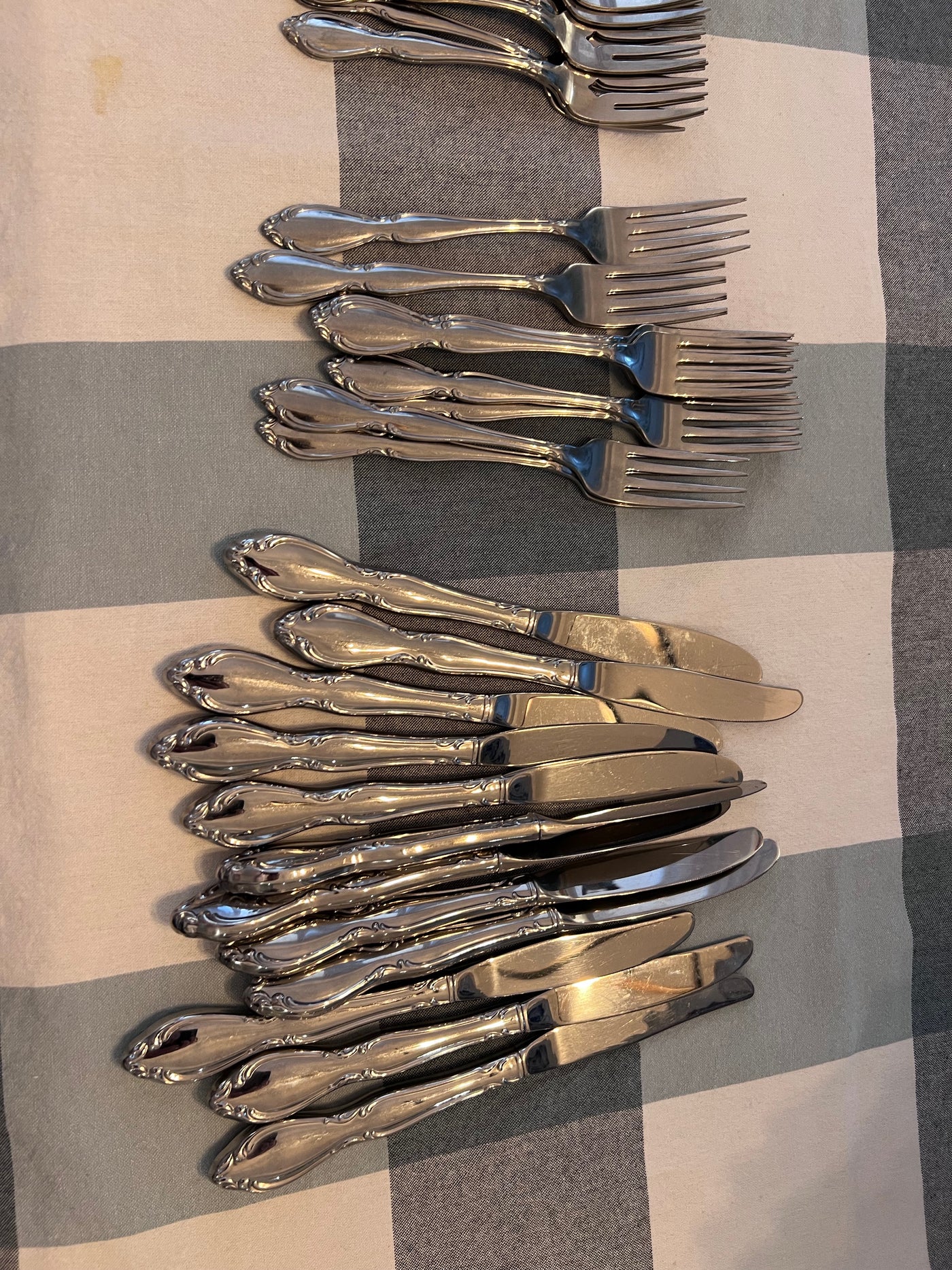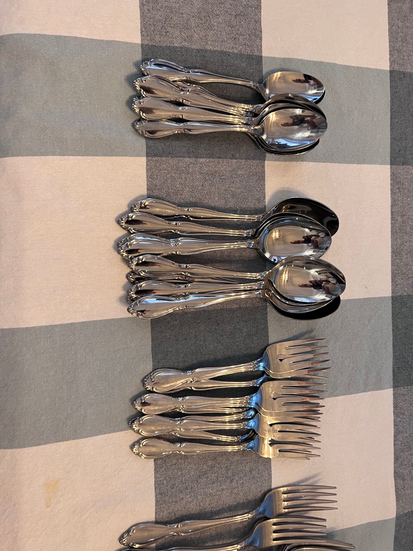 12 knives11 forks11 desert forks12 place spoons11 tea spoons