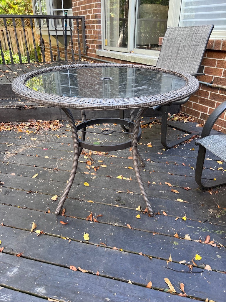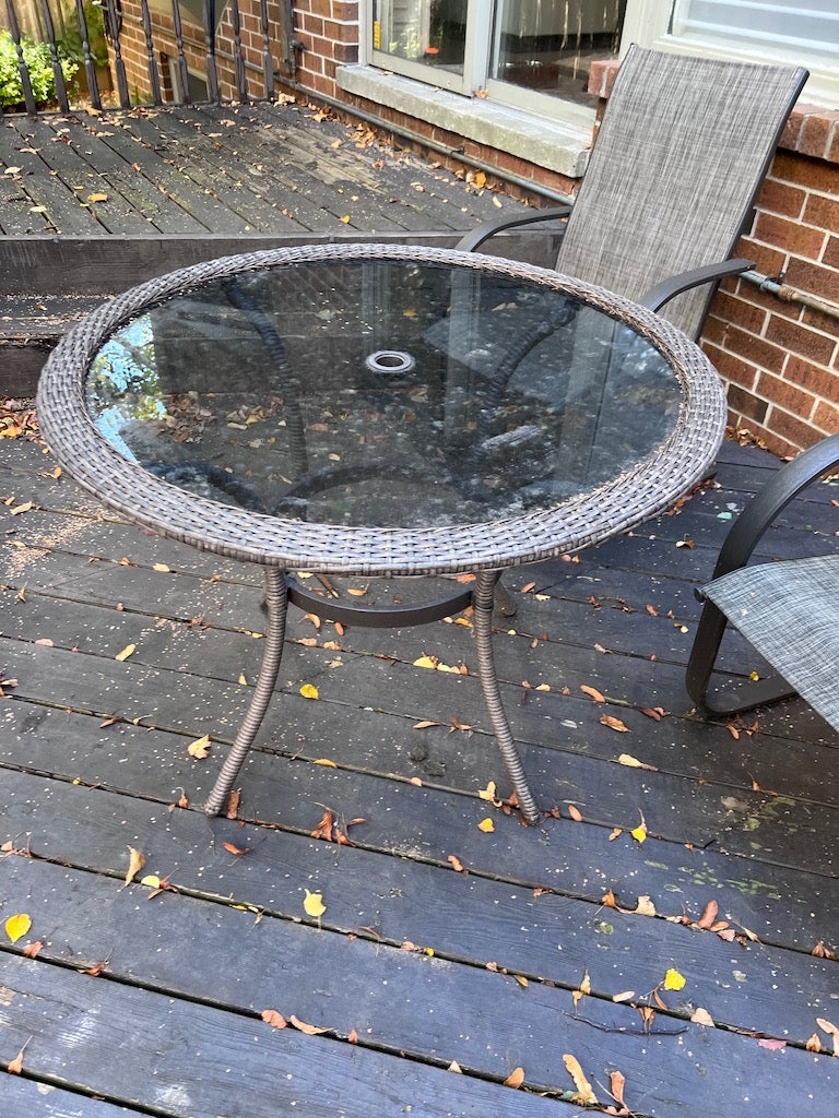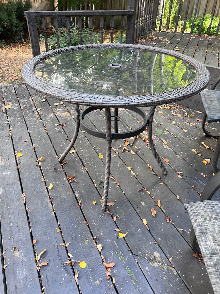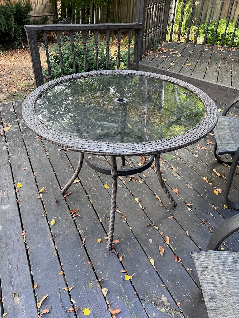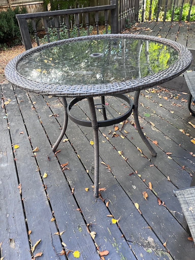 CANVAS Canterbury Round All-Weather Wicker Outdoor/Patio Dining Table w/Glass Top, 38x29-in.