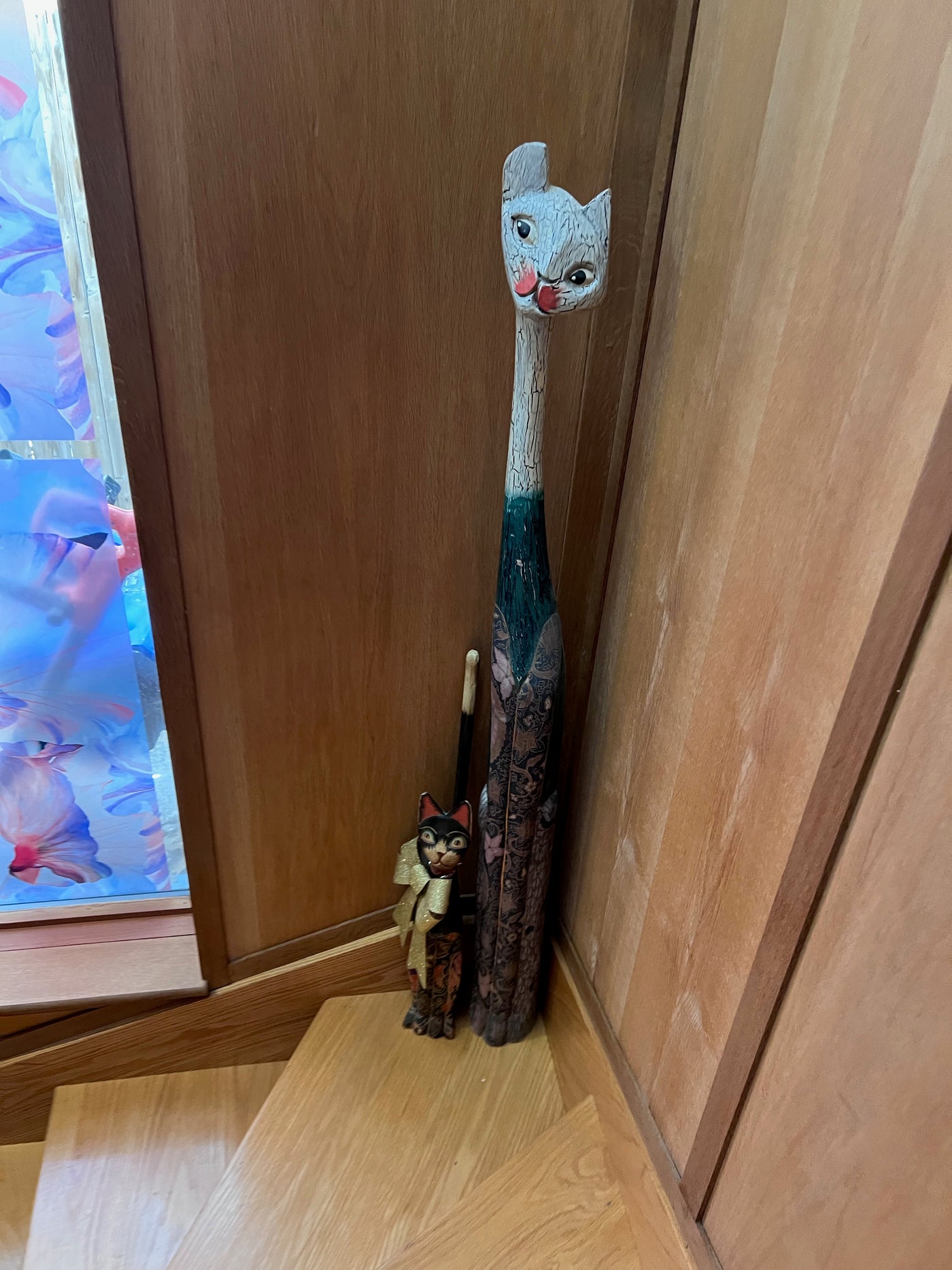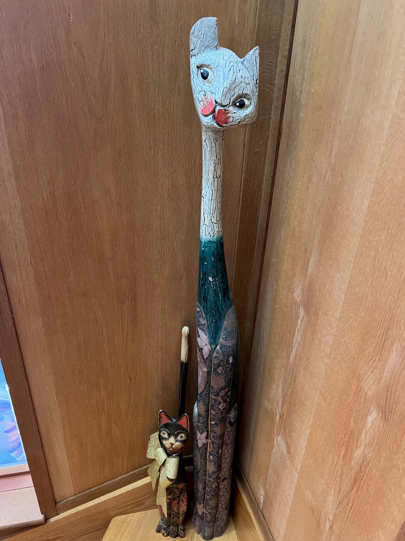 Wood Cat Sculptures Lot.