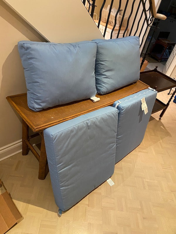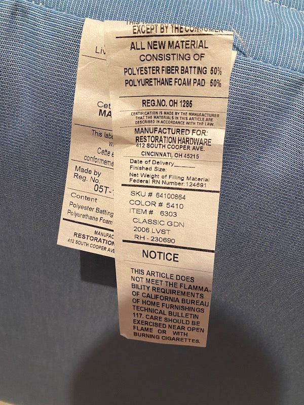 Restoration Hardware, Classic Garden Blue Linen Outdoor Cushions Lot.