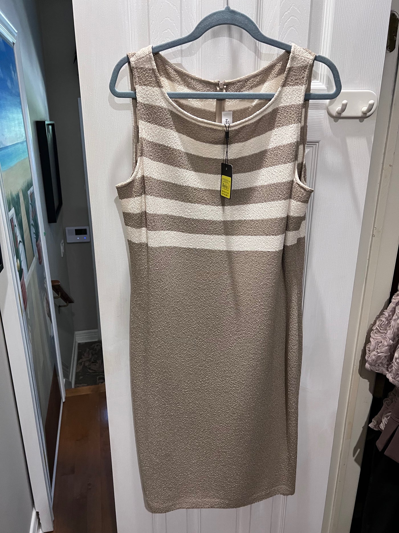 BRAND NEW St. Johns Terra Sand/Brt Whie Wool Dress, Size 14 (*retail $695).