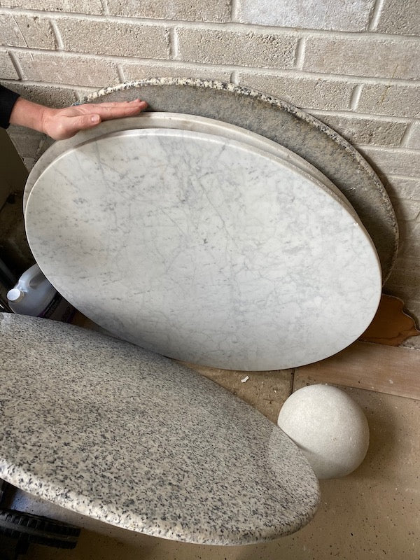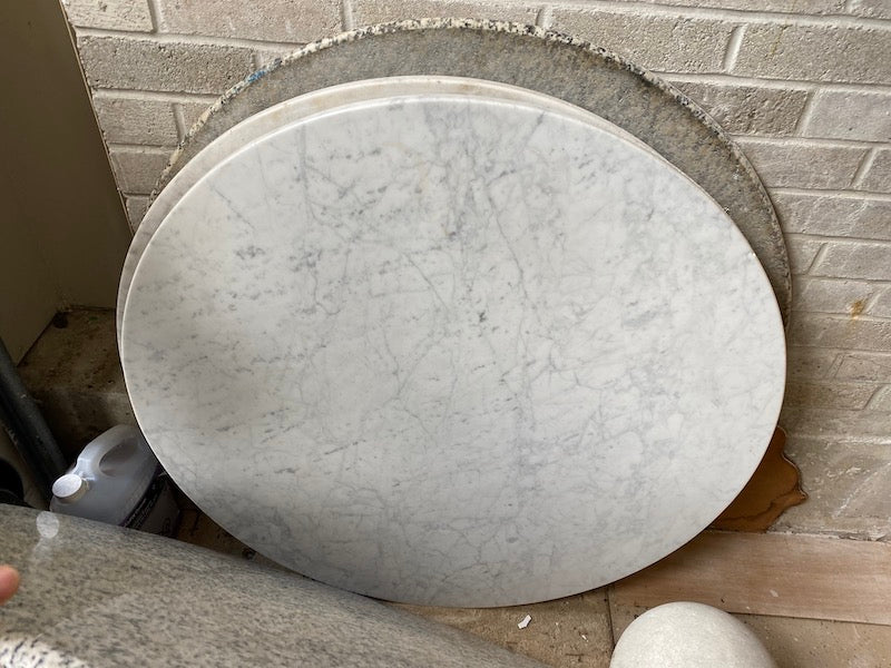 Round Marble Slab (*2 Available). Can be used to make a table top. Comes brand new and is sold as is. No apparent damage.
