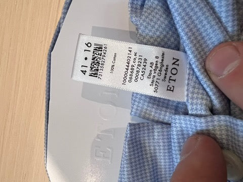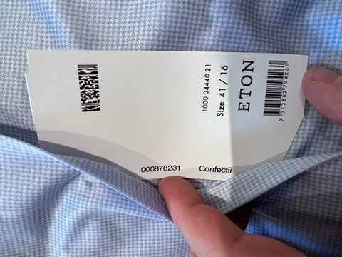 BRAND NEW Men's Eton Blue Cotton Shirt (size 41, 16).