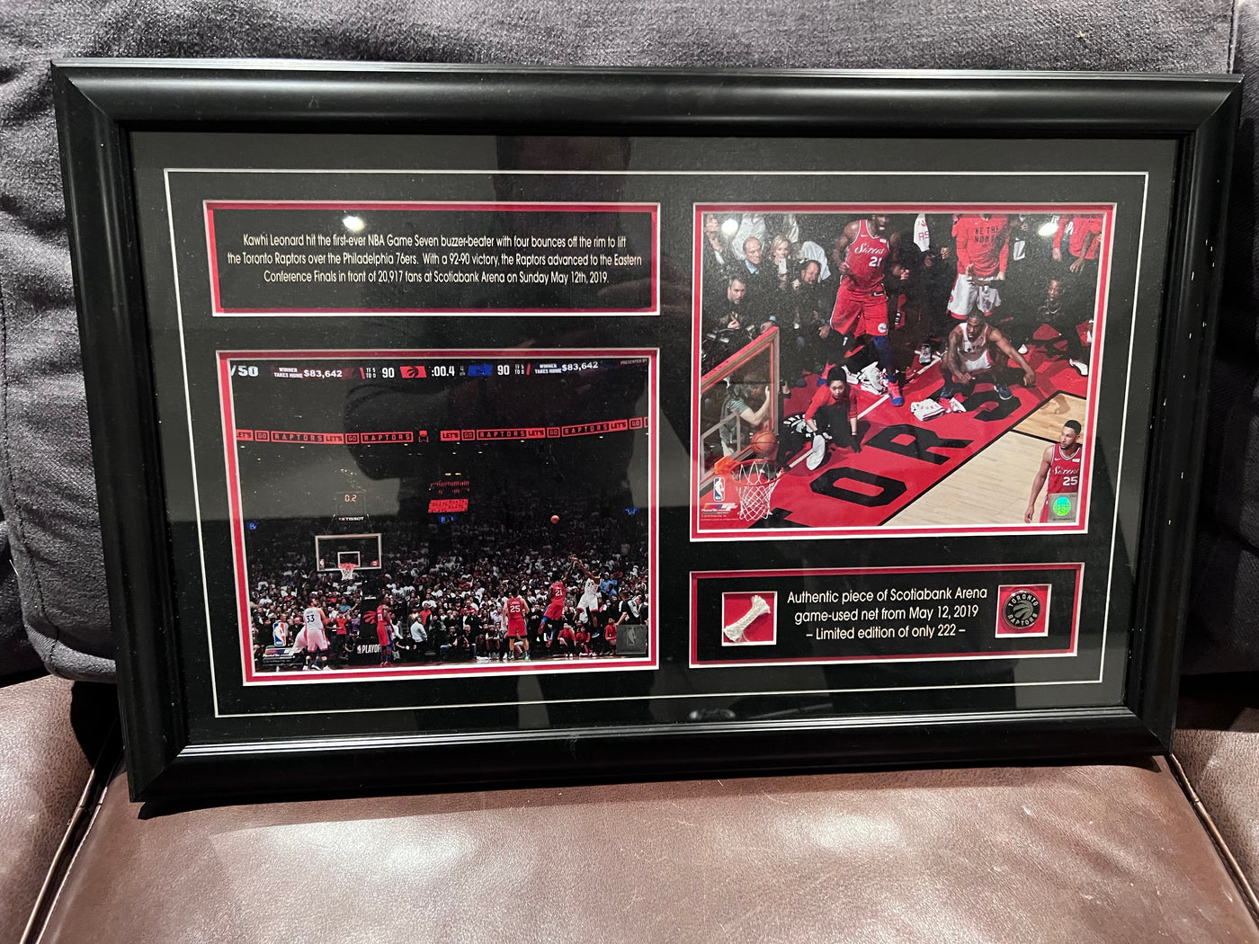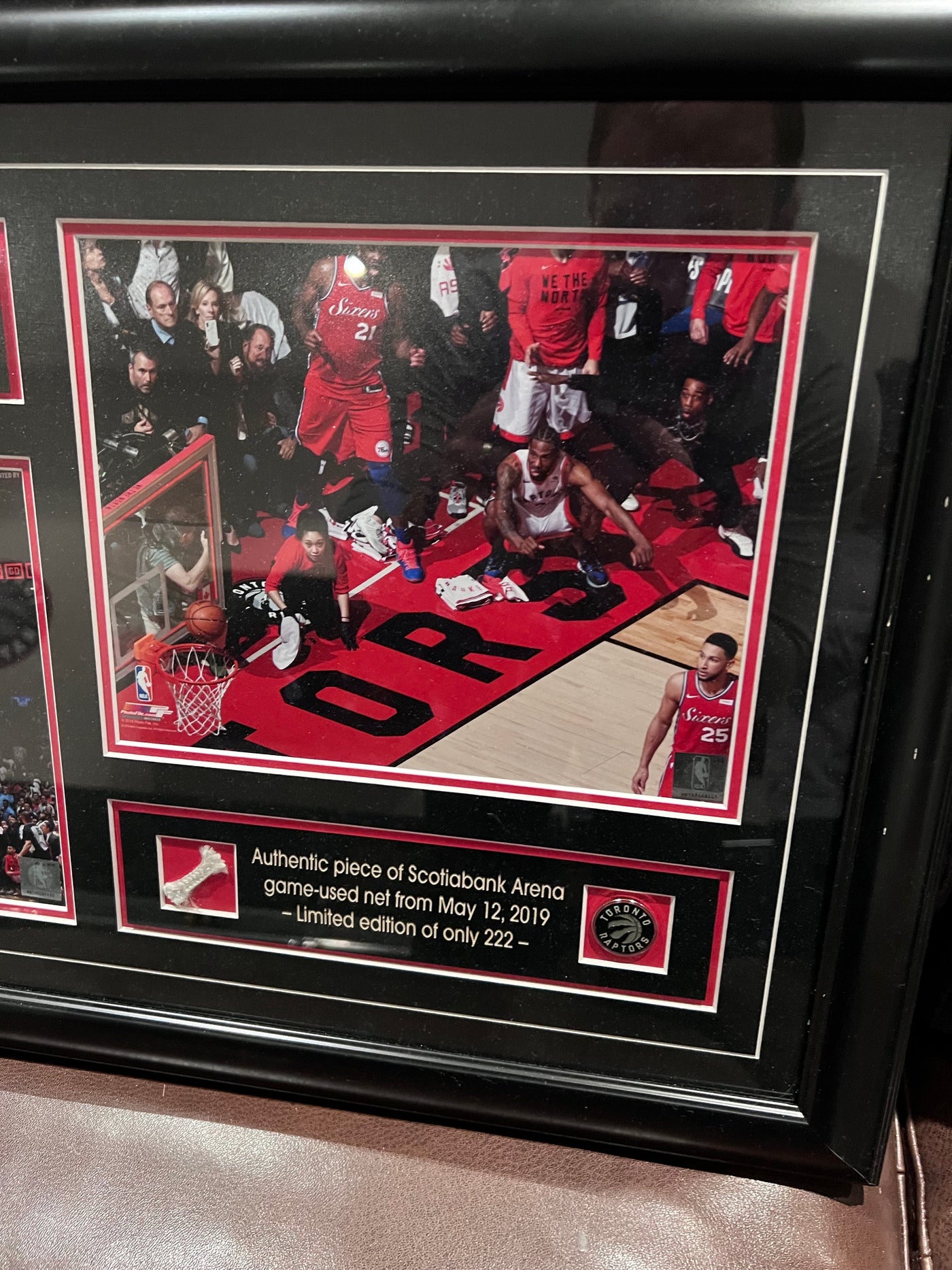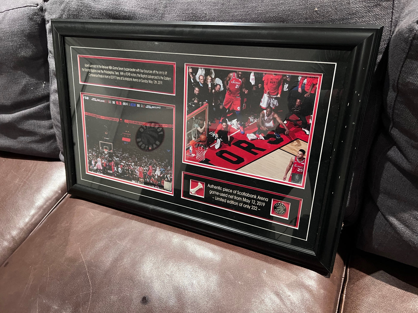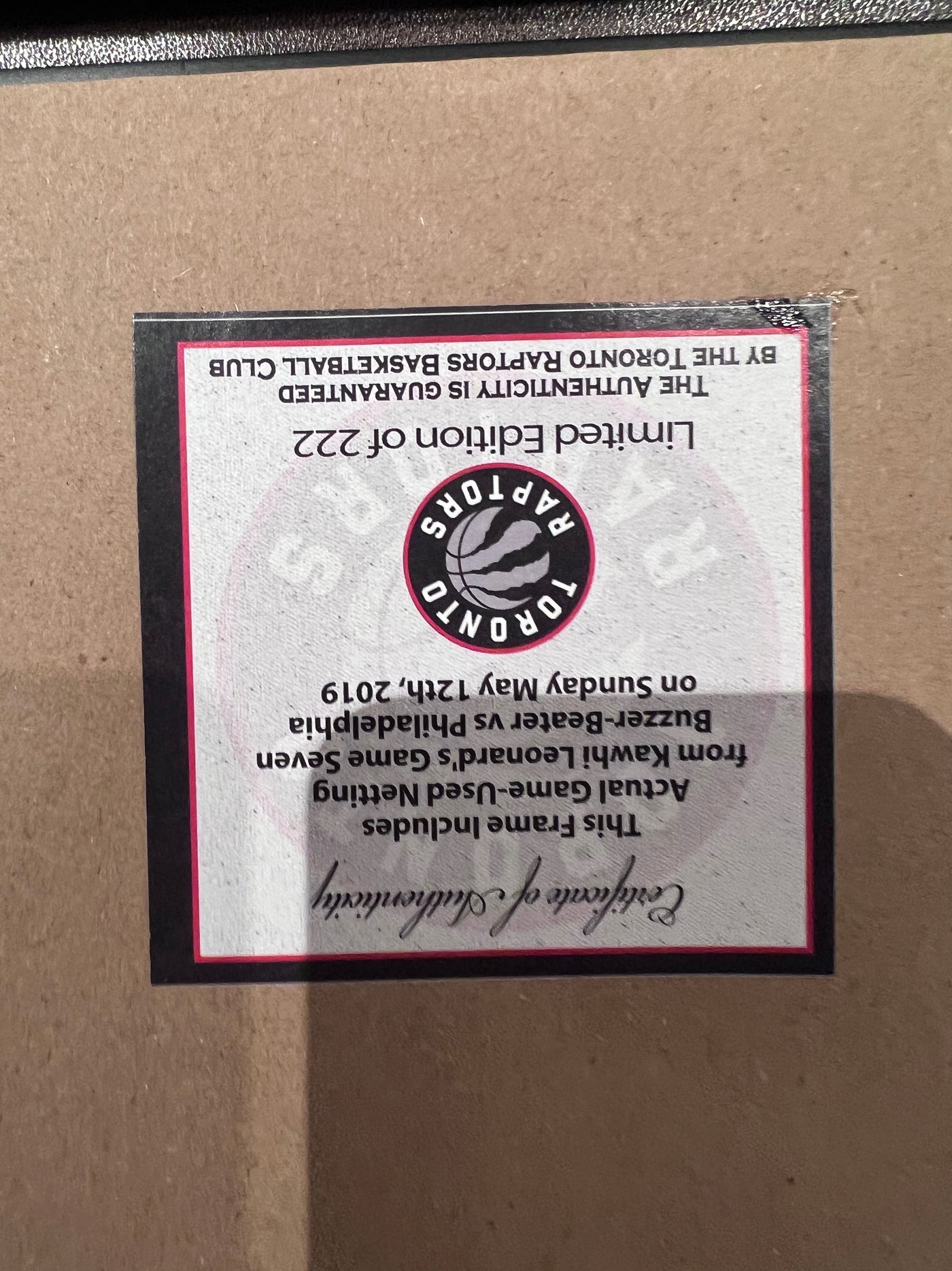 Toronto Raptors Limited Edition of 222 'Authentic Piece of Scotiabank Arena Game-Used Net from May 12, 2019'.