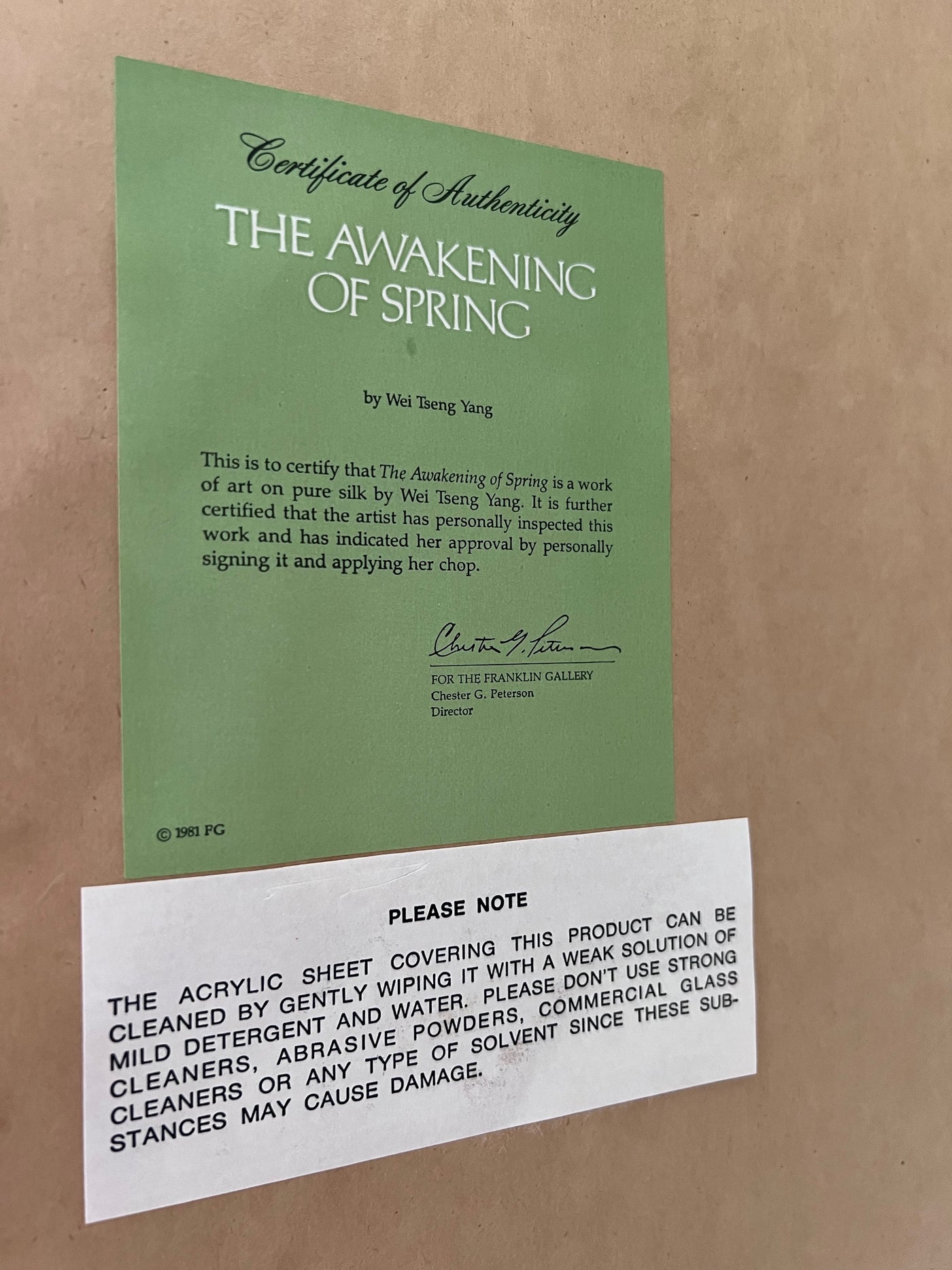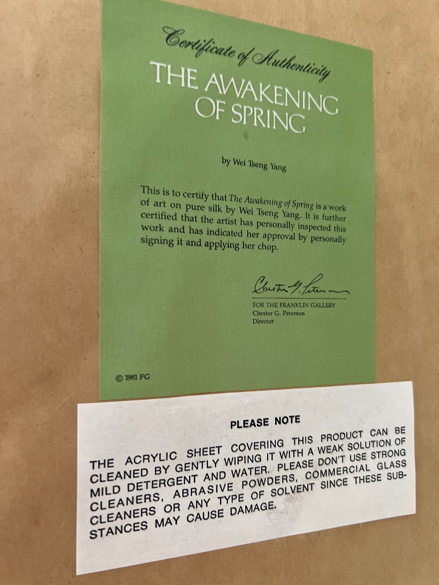 Wei Tseng Yang "The Awakening of Spring" on Pure Silk, with Certificate of Authenticity