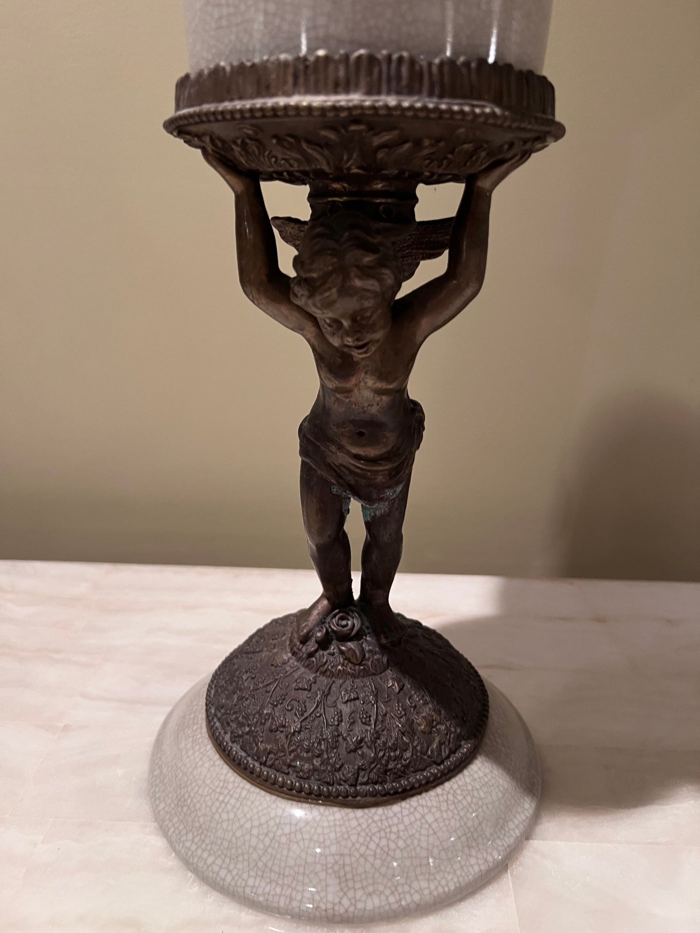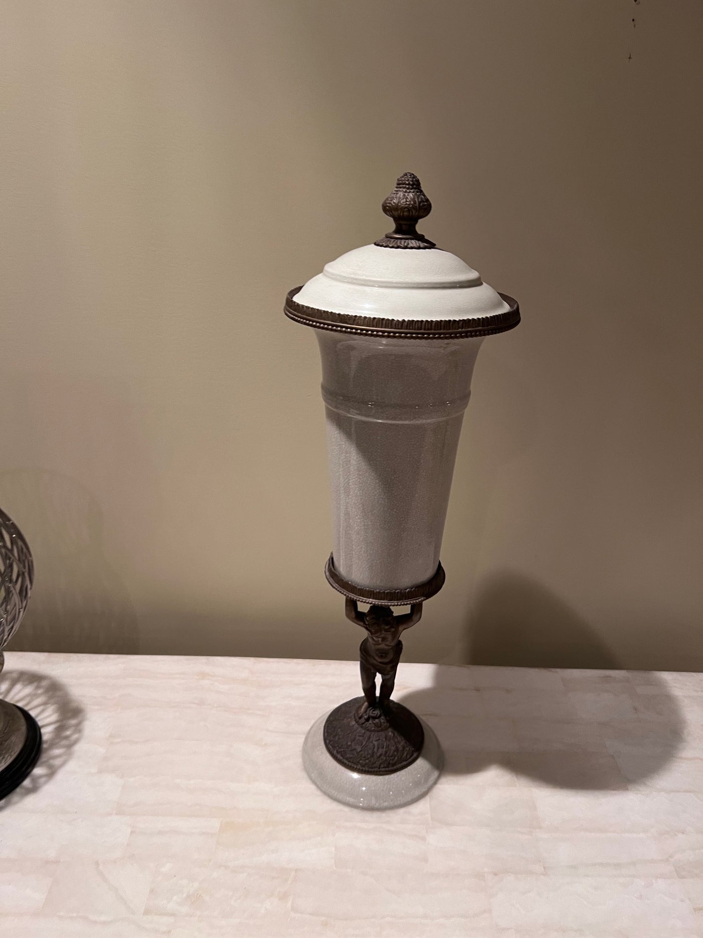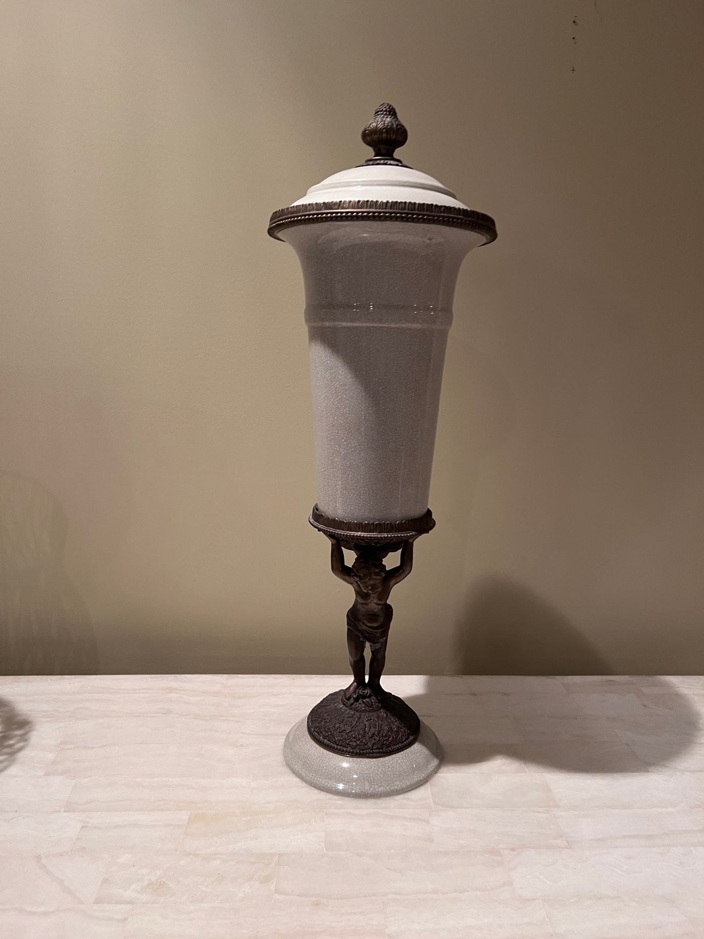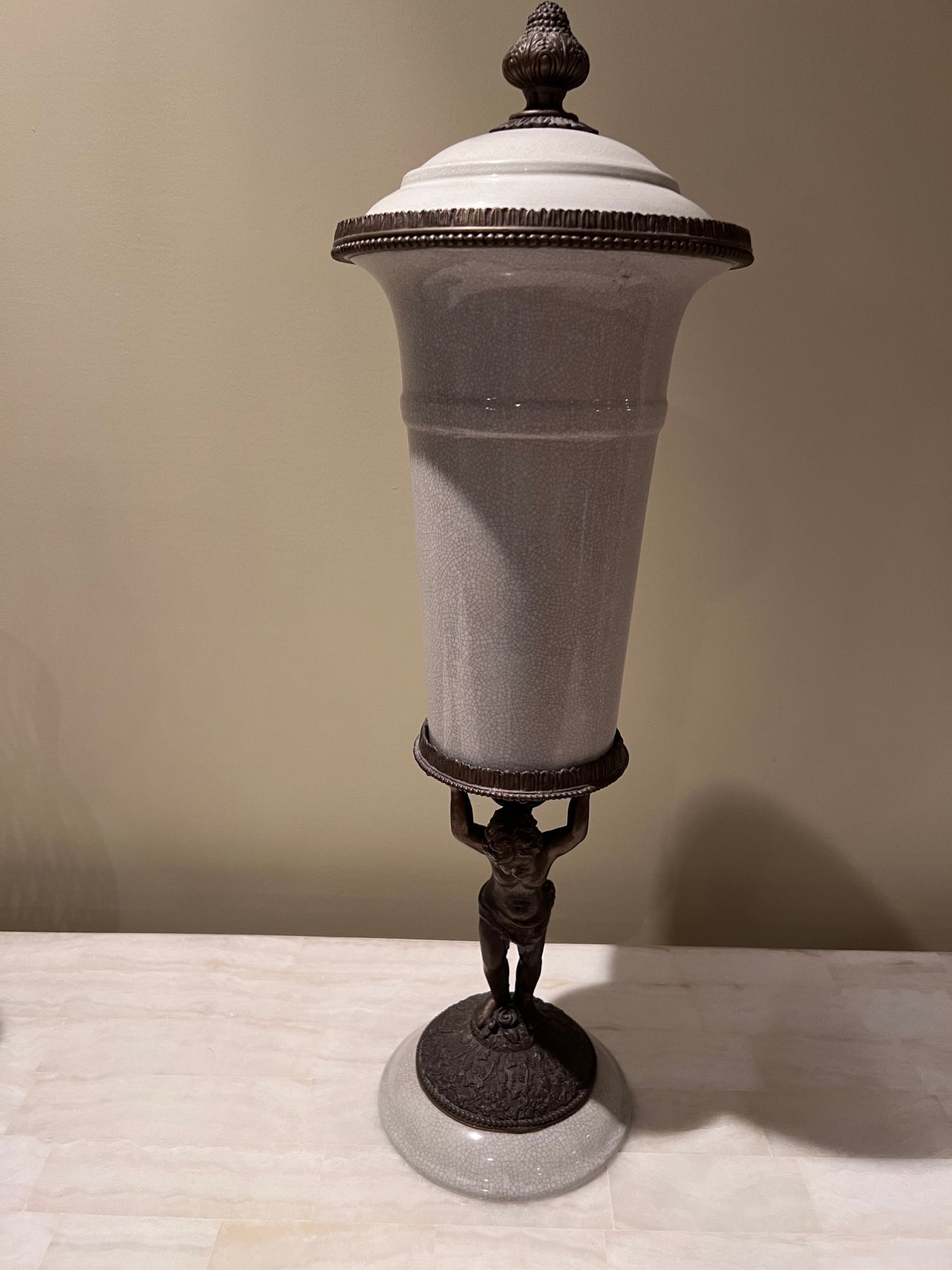 Bronzed Figural Lidded Urn.