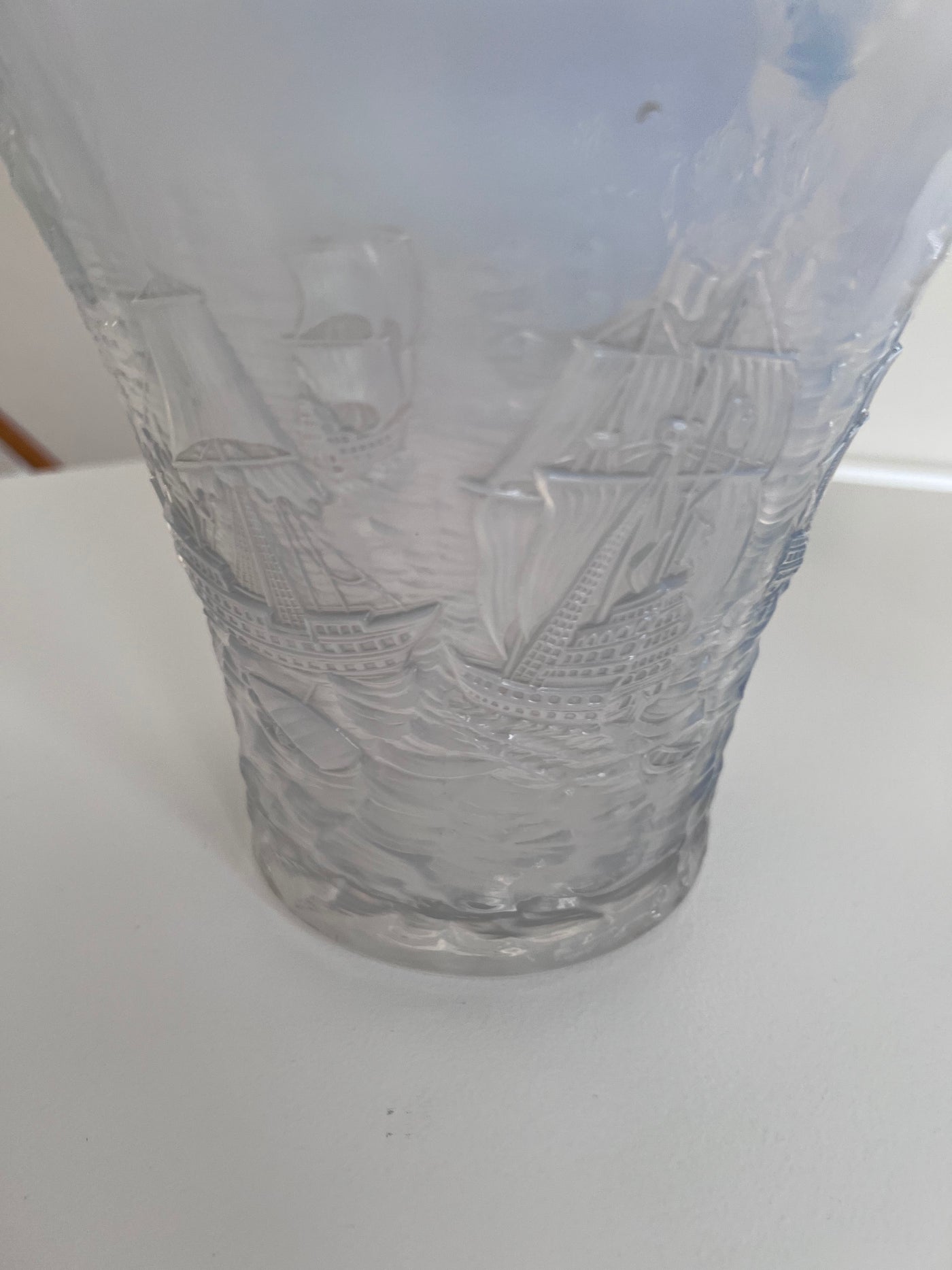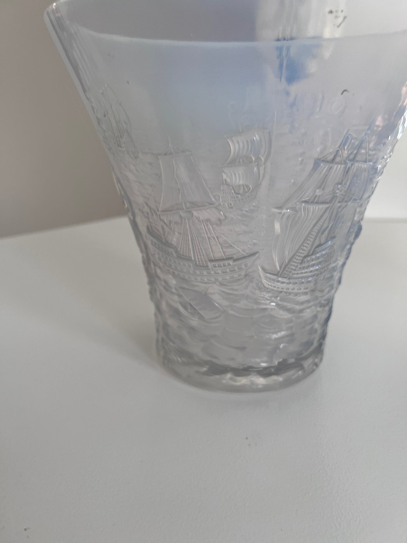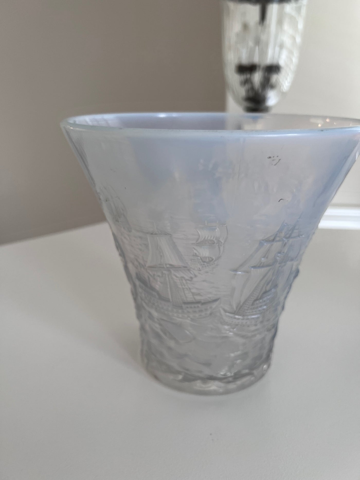 1930's Joseph Inwald Barolac Art Deco Vase in Opalescent Glass w/Ships Motif.
