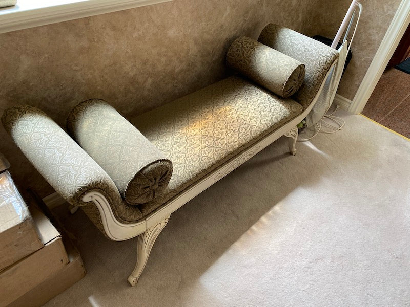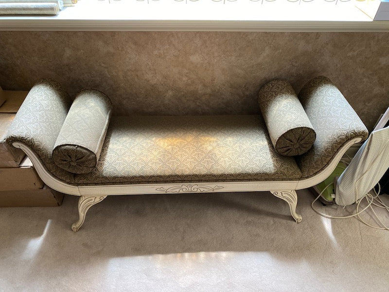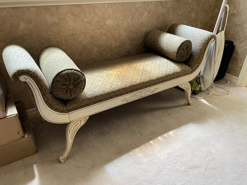 Cleopatra Bench with Rolled Arms, White Wood Frame.