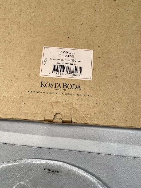 2 Brand New "Kosta Boda" Grape Cheese Plates. 260mm.