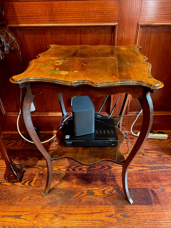Antique Accent Table, Scalloped Edged with a Floral Painted Inlay