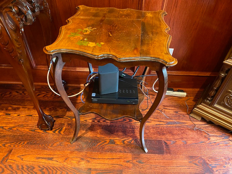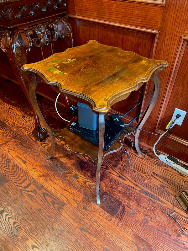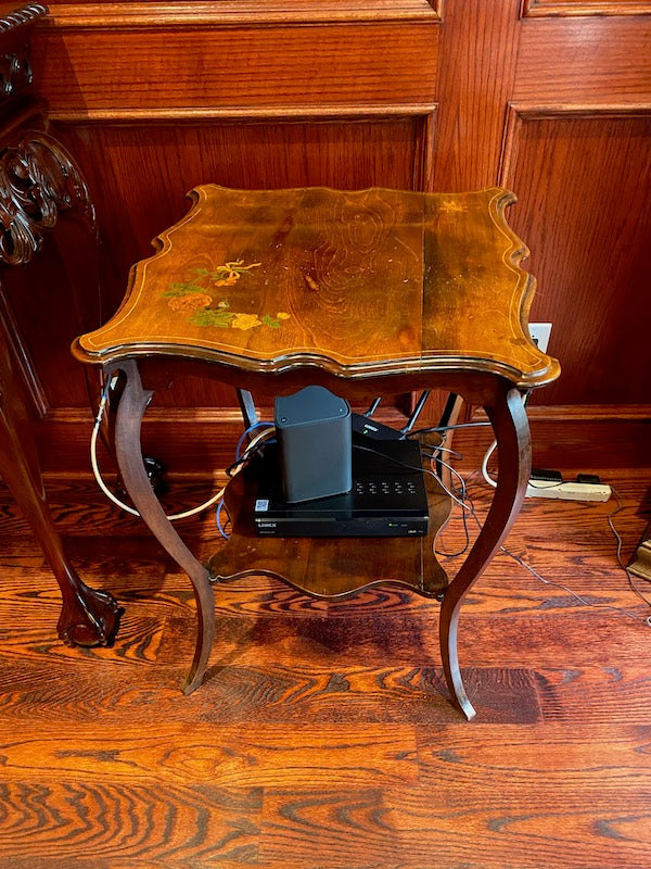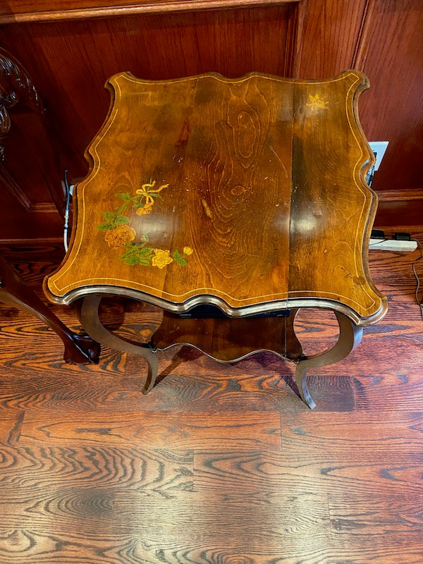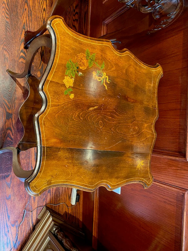 Antique Accent Table, Scalloped Edged with a Floral Painted Inlay.