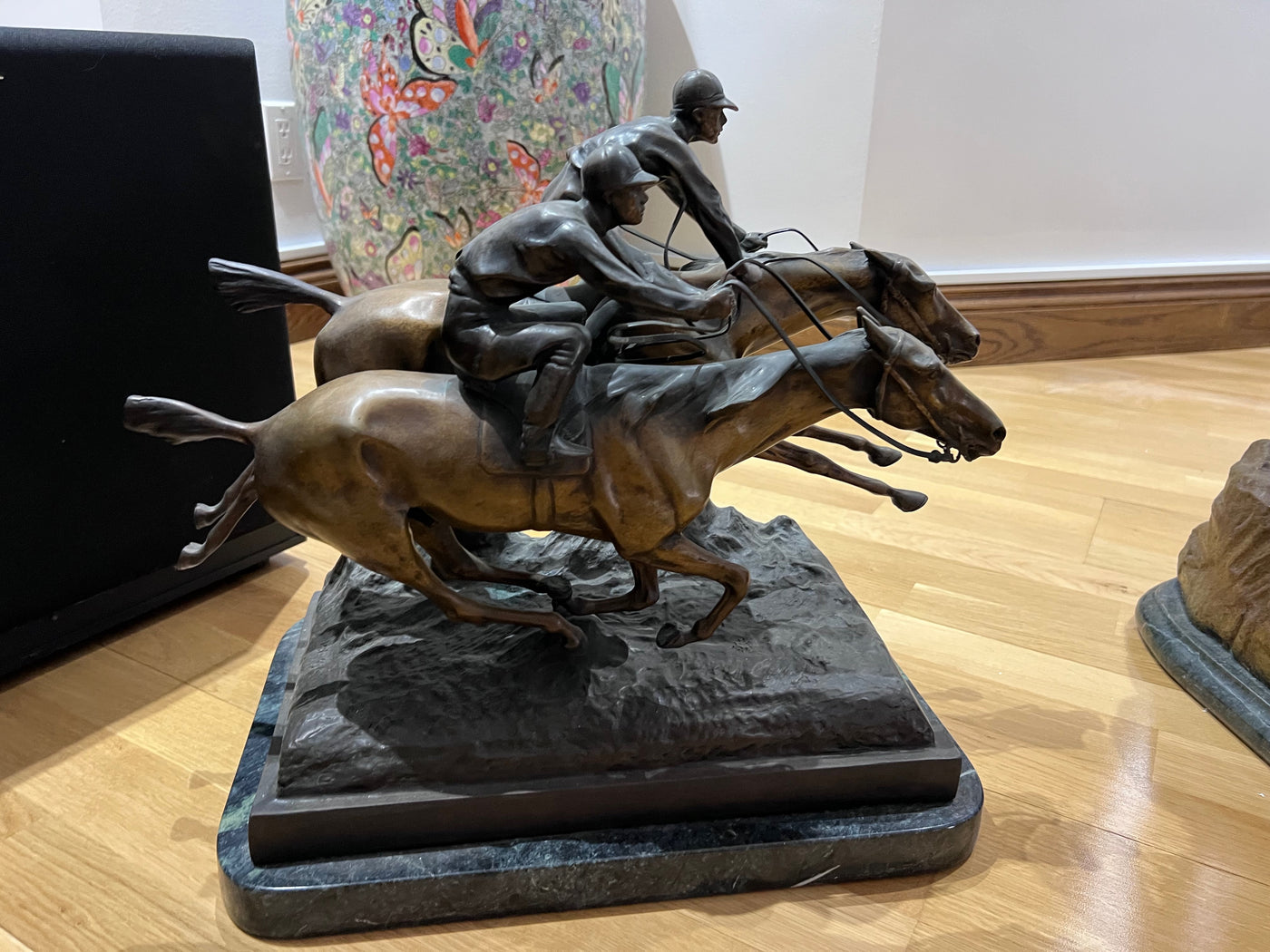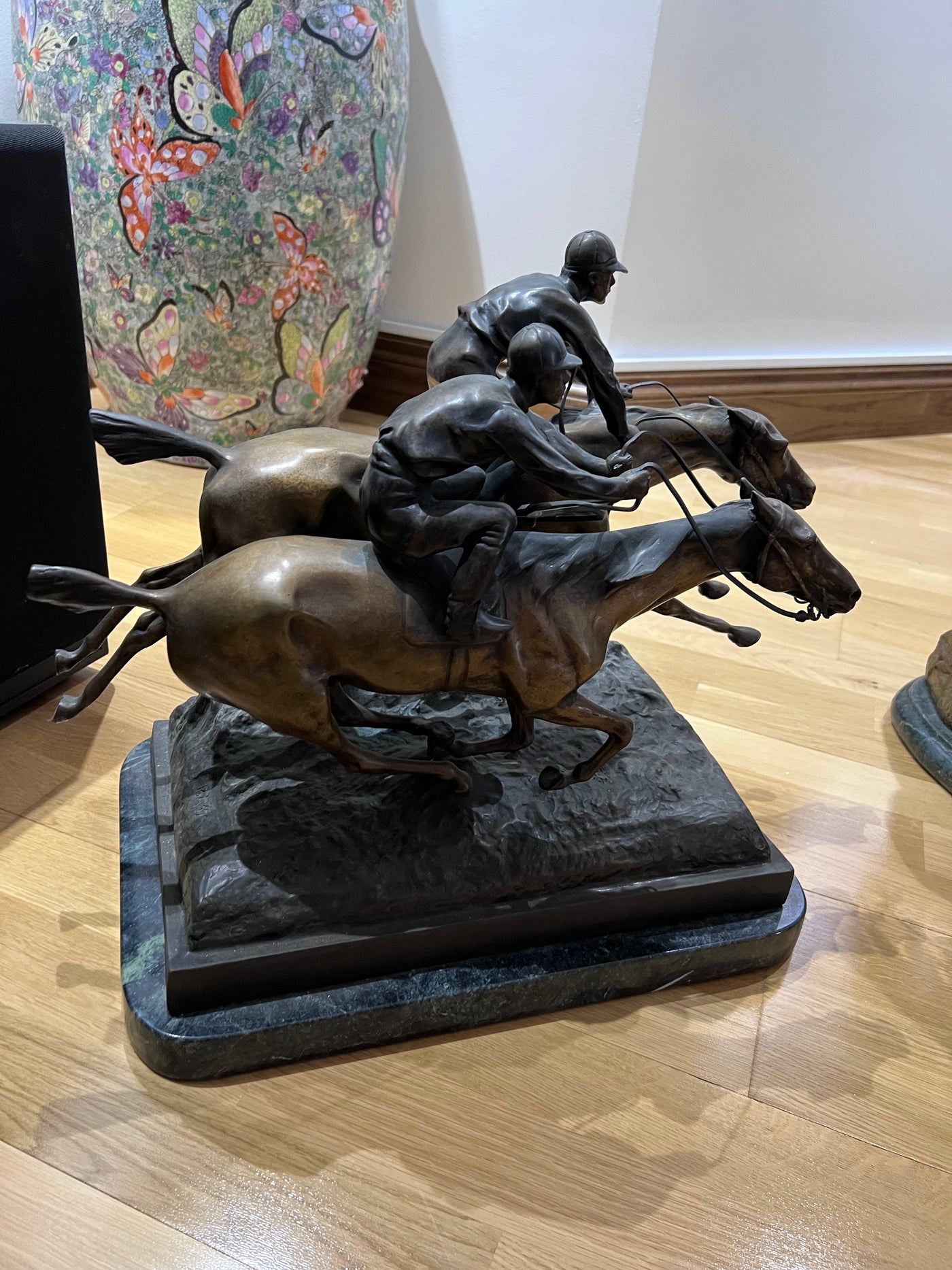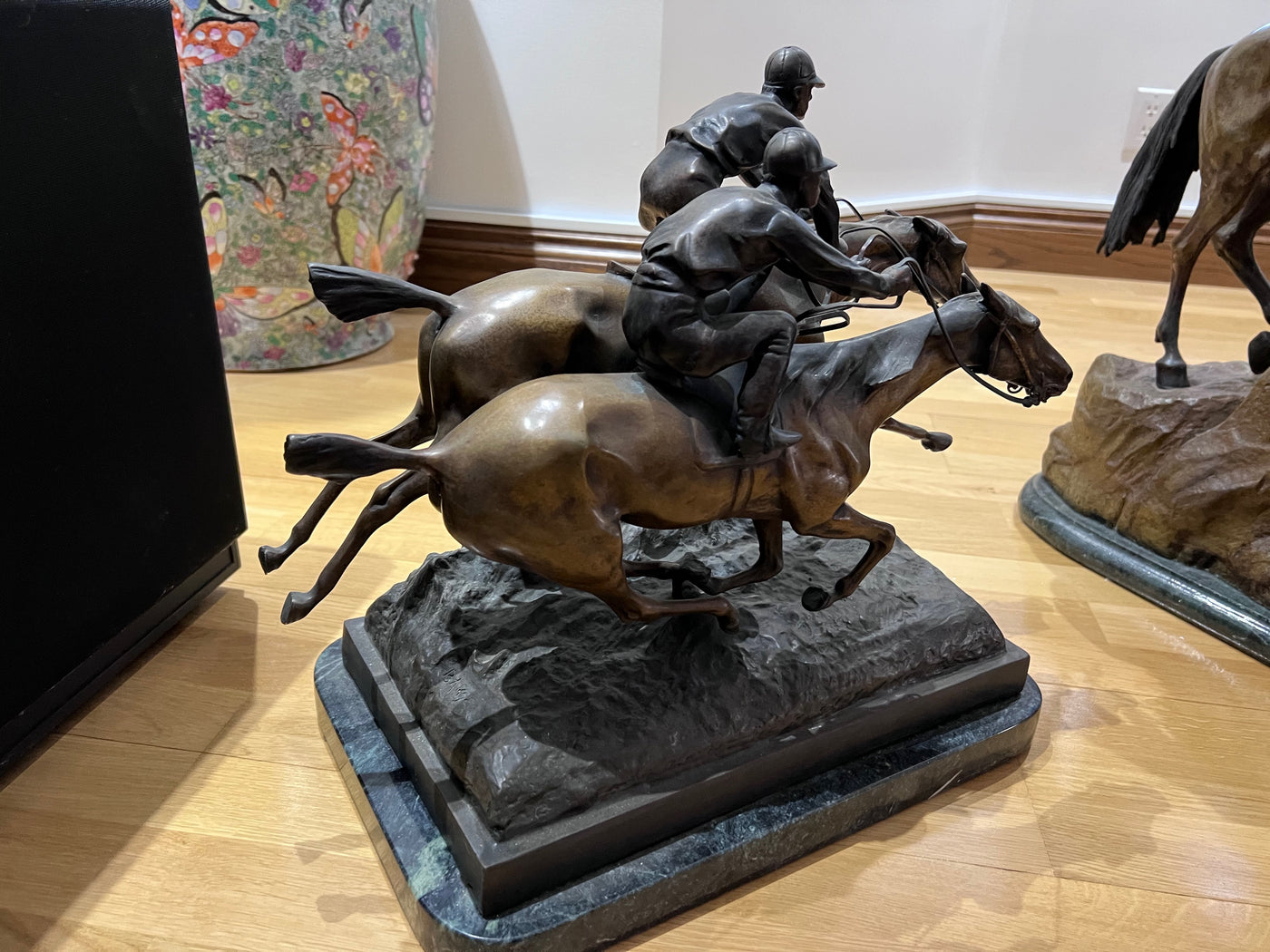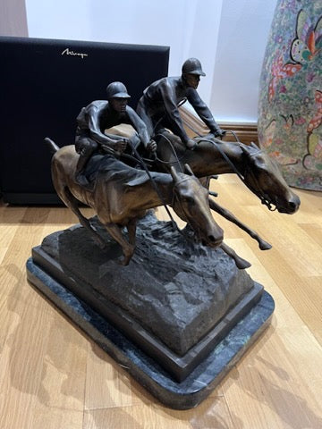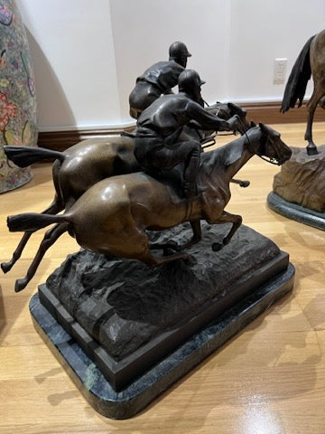 Alfred Barye Bronze Sculpture- "2 Horses Racing".