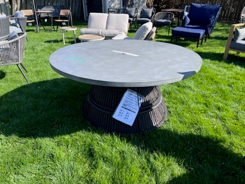 Concrete Style Steel and Wicker Round Dining Table.