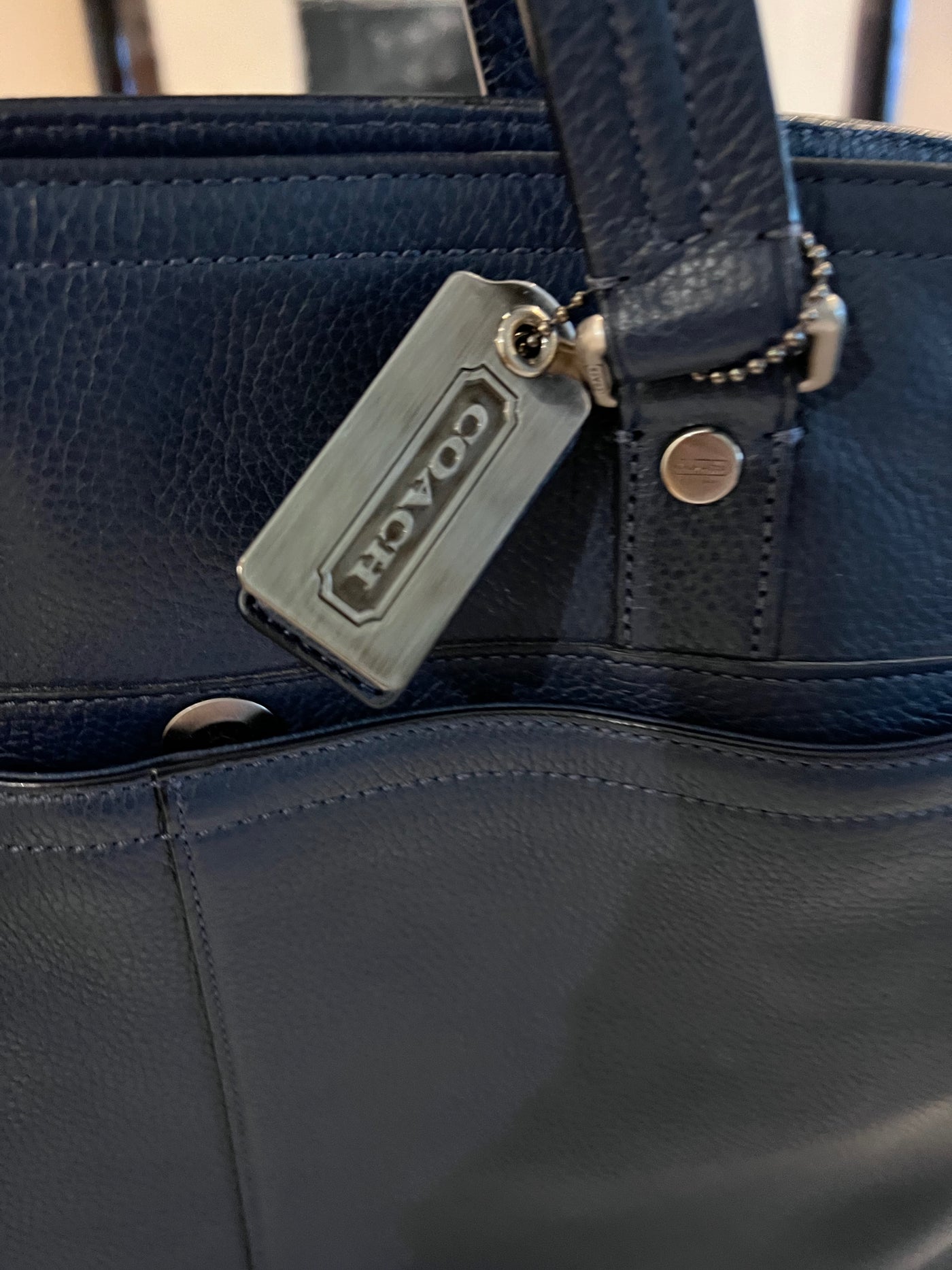 Coach Blue Leather Tote Bag.