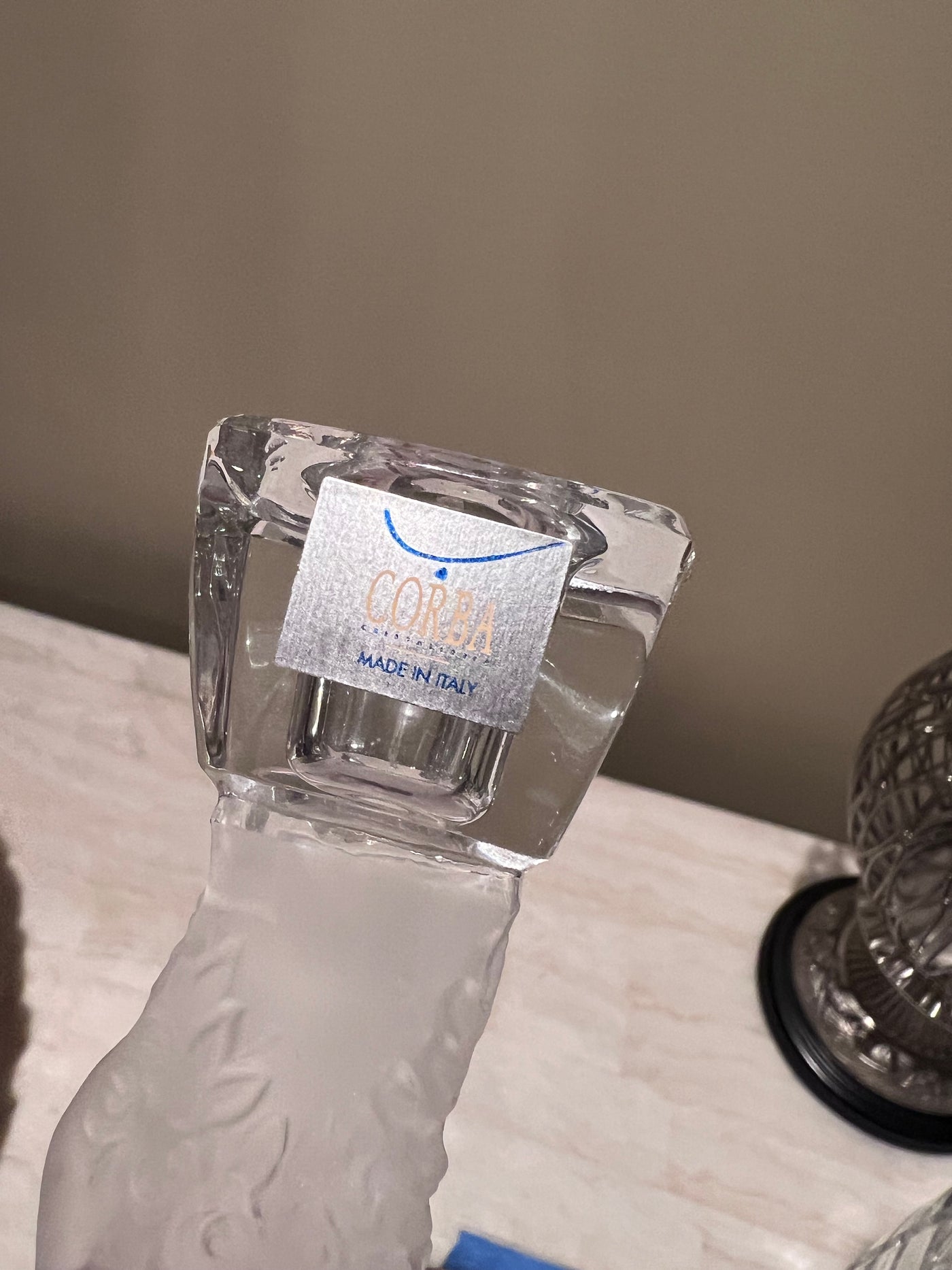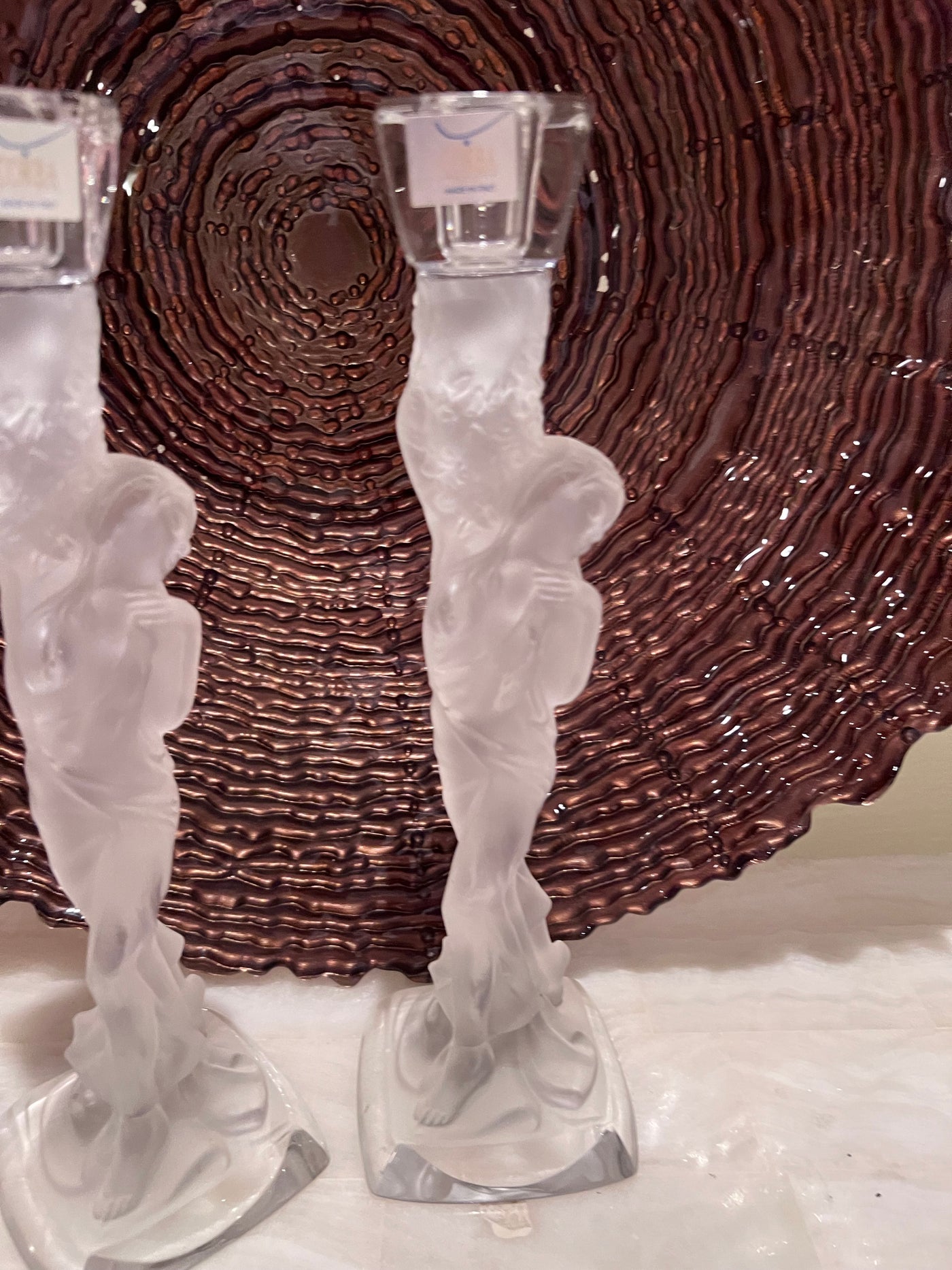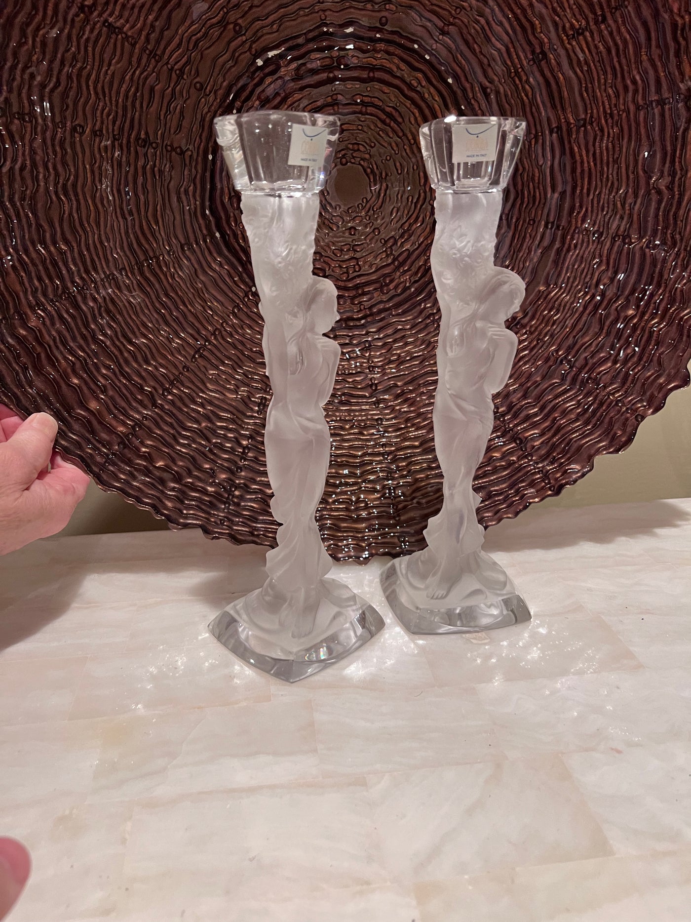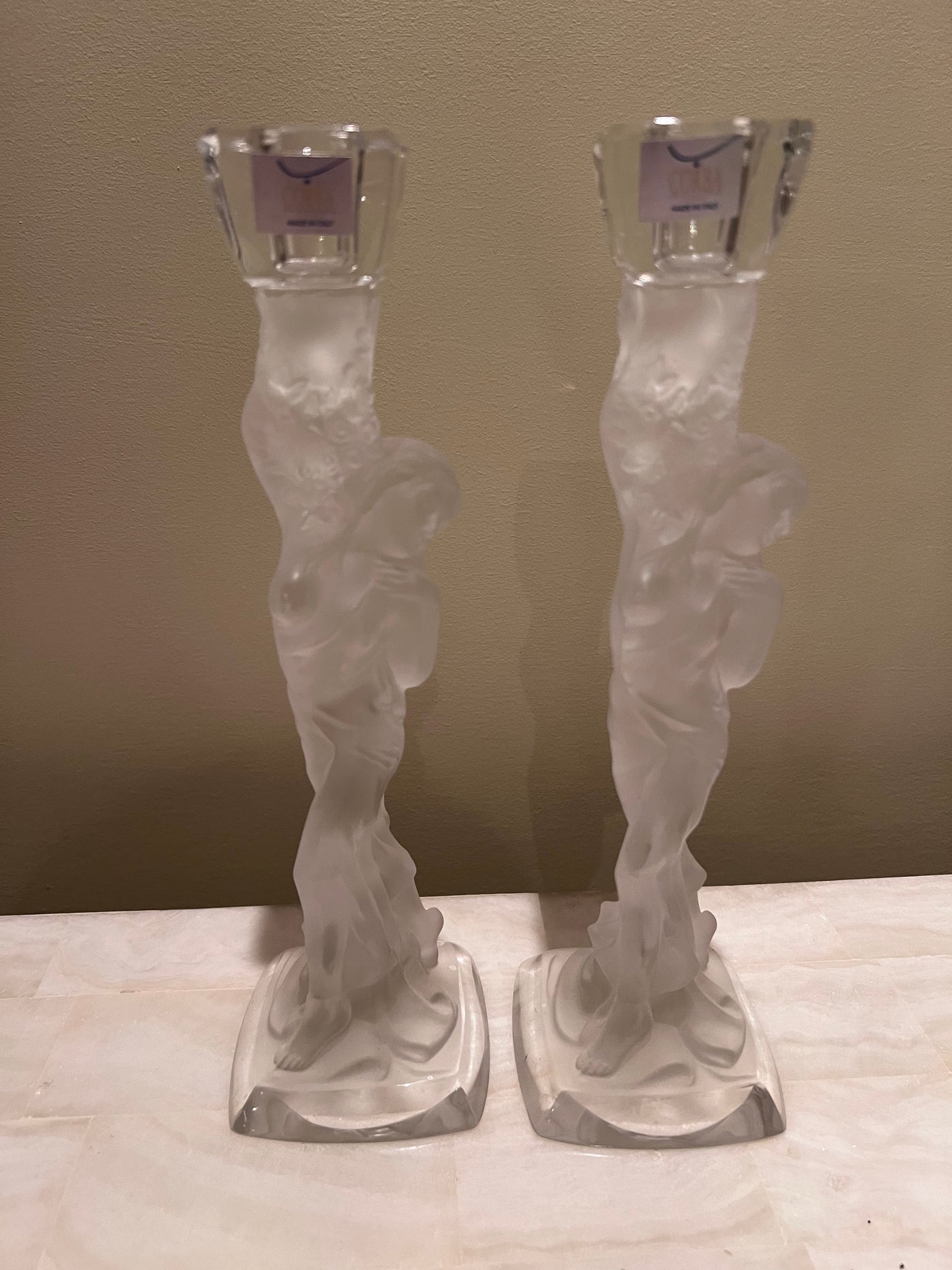 Pair of Corba Italy Frosted Glass Candlesticks.