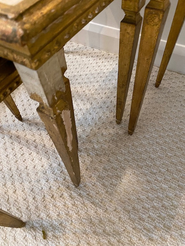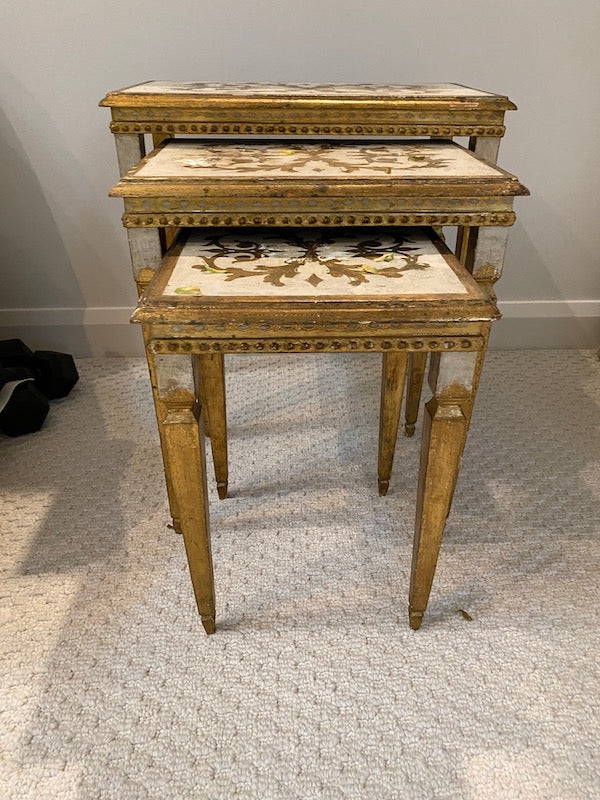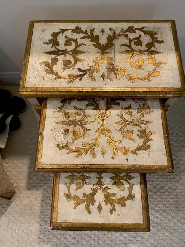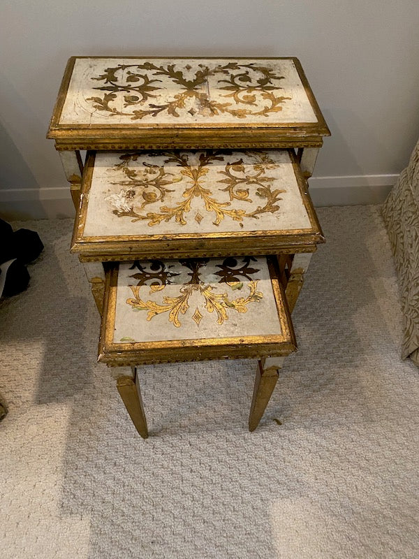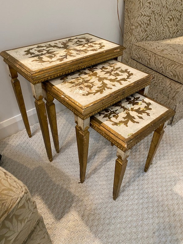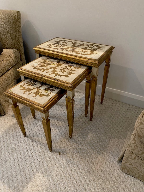 Set of 3 Florentine Gold Nesting Tables, Made in Italy.