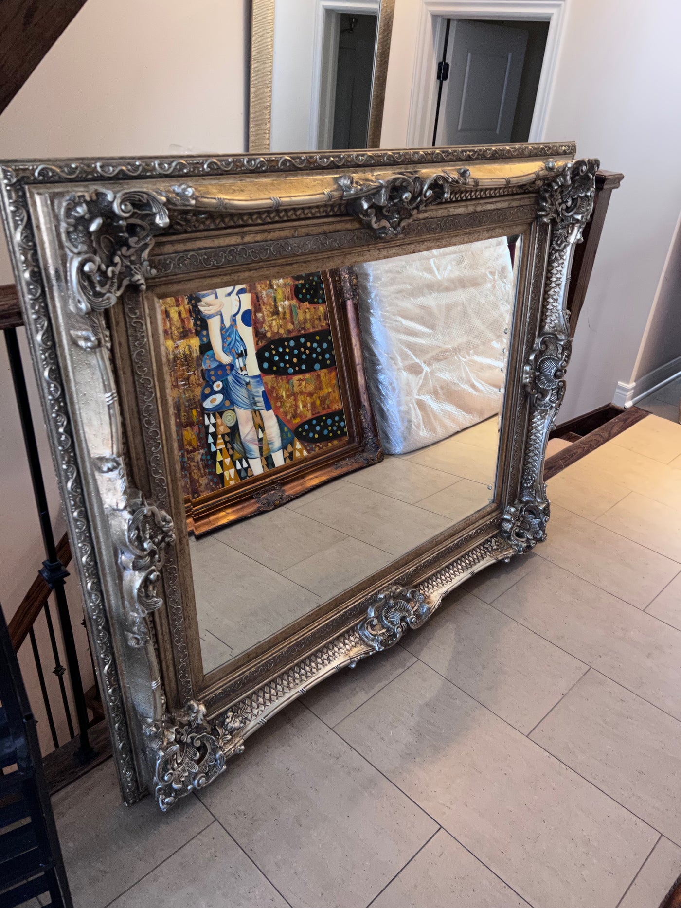 Large Solid Silver Framed Mirror Imported from South Africa.