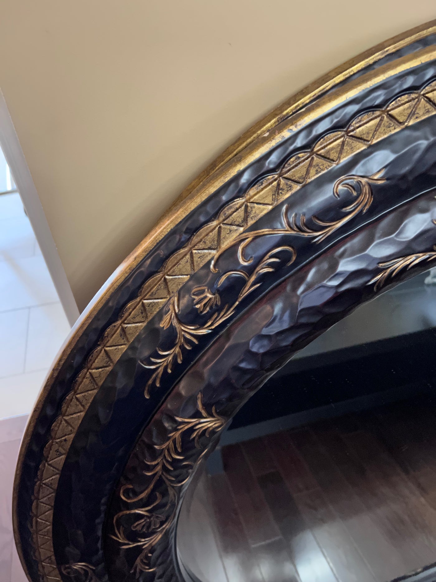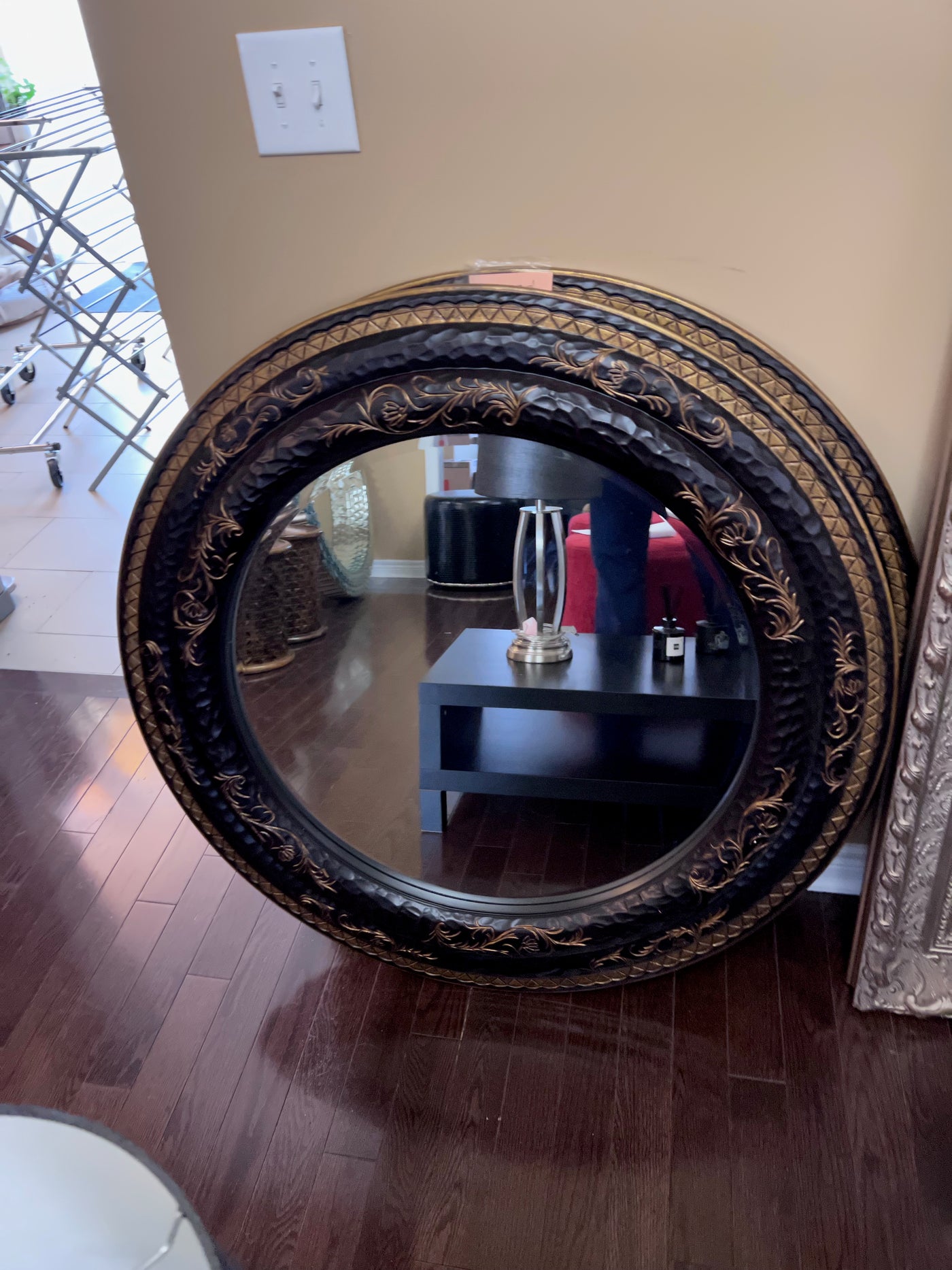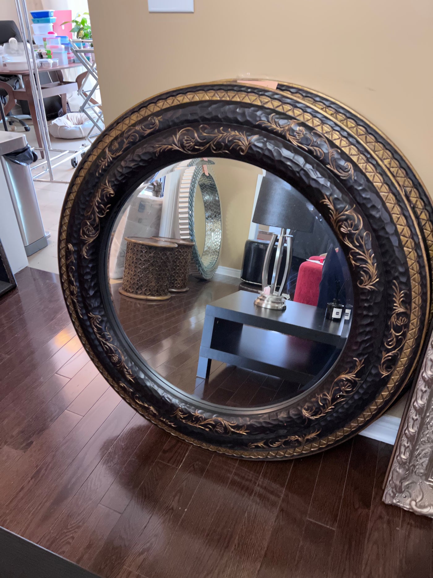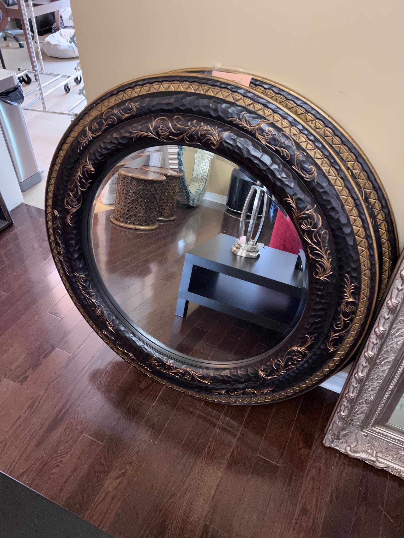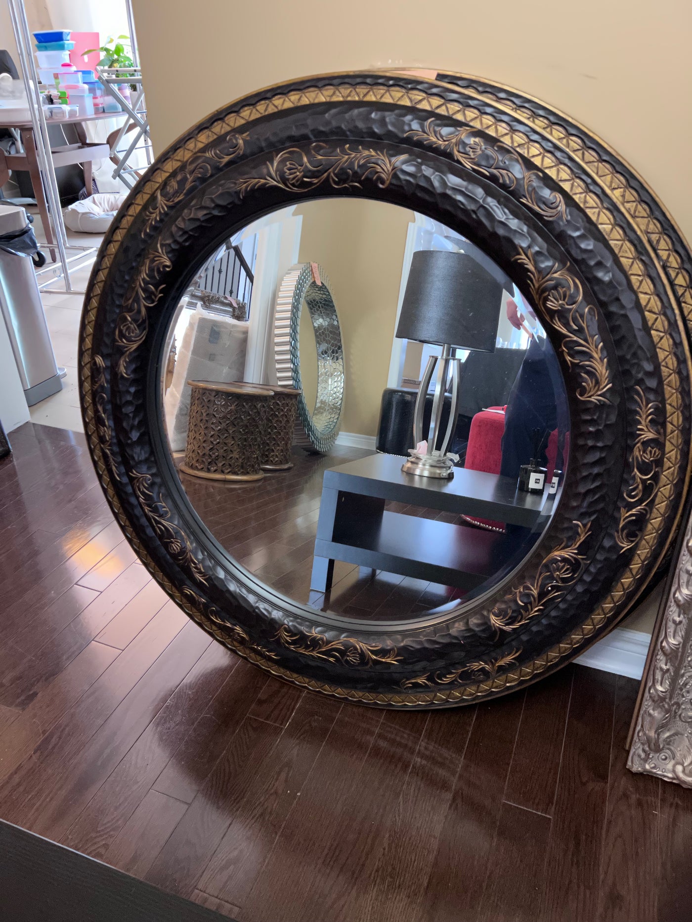 Round Black & Gold Mirror Imported from South Africa (*1 Available).