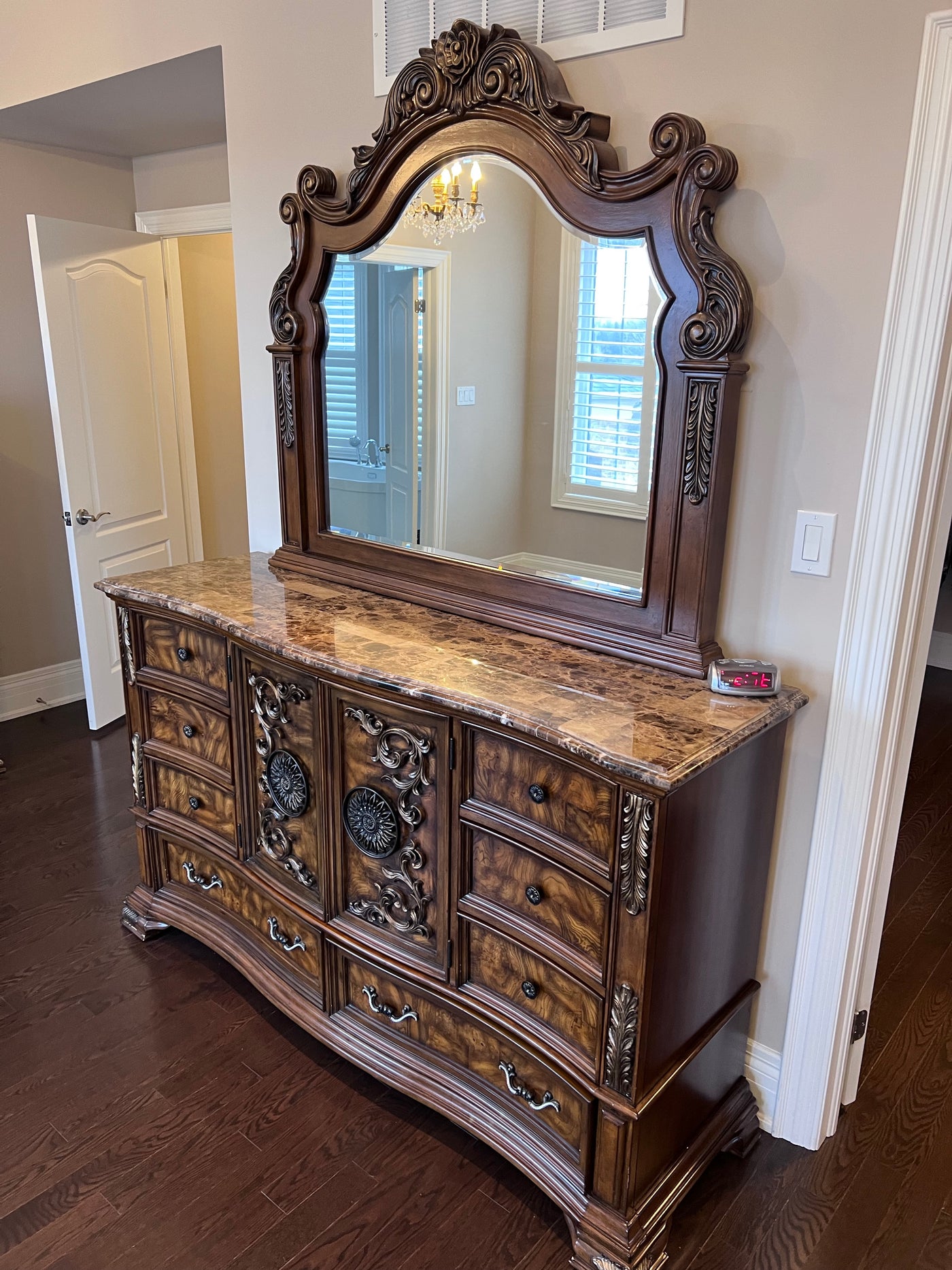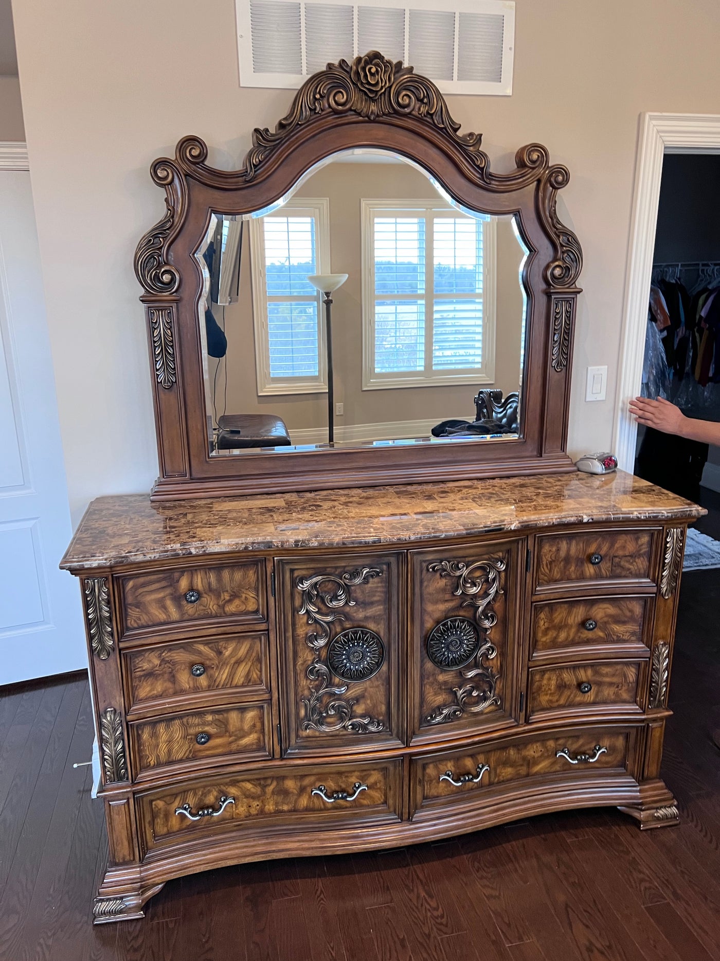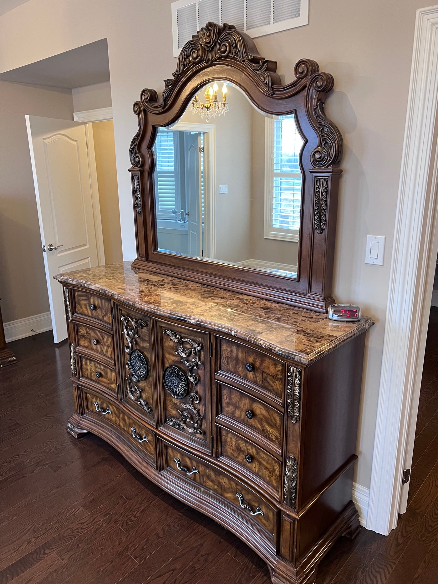 Cosmos Furniture Santa Monica Traditional Dresser with Mirror in Cherry Finish.
