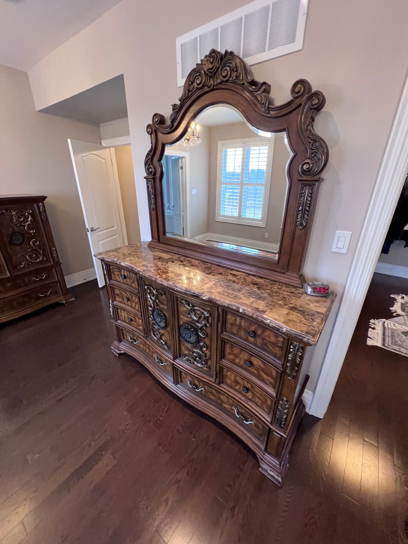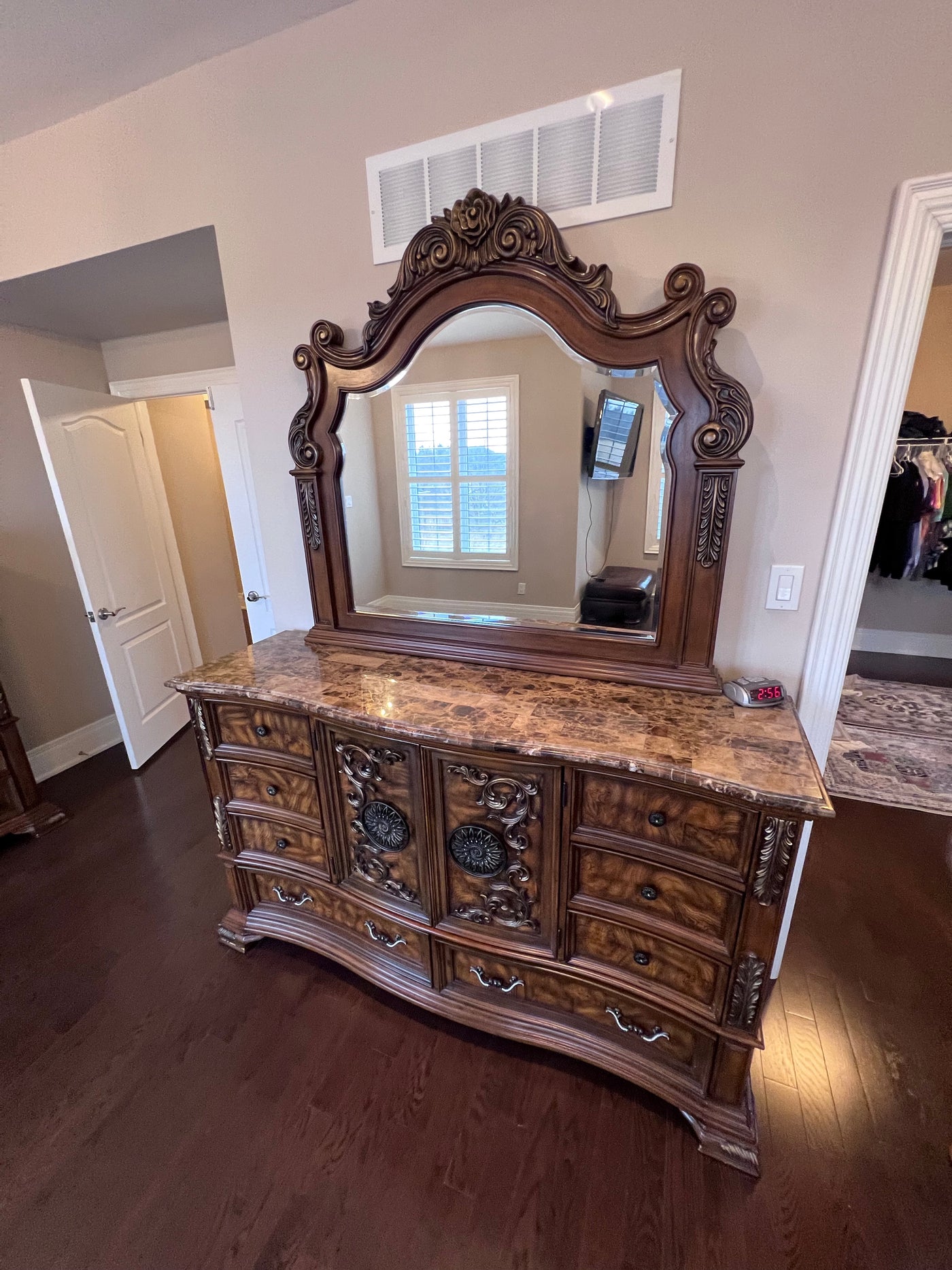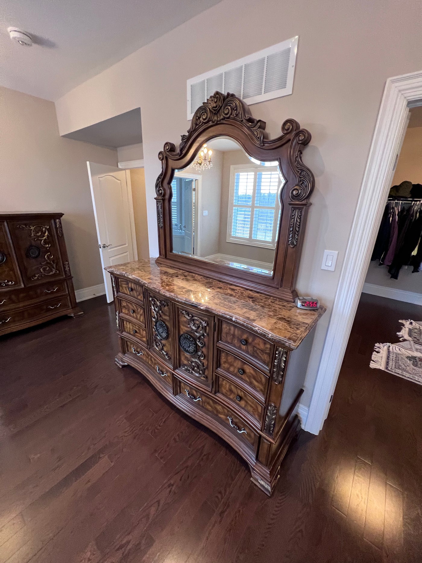 Cosmos Furniture Santa Monica Traditional Dresser with Mirror in Cherry Finish.