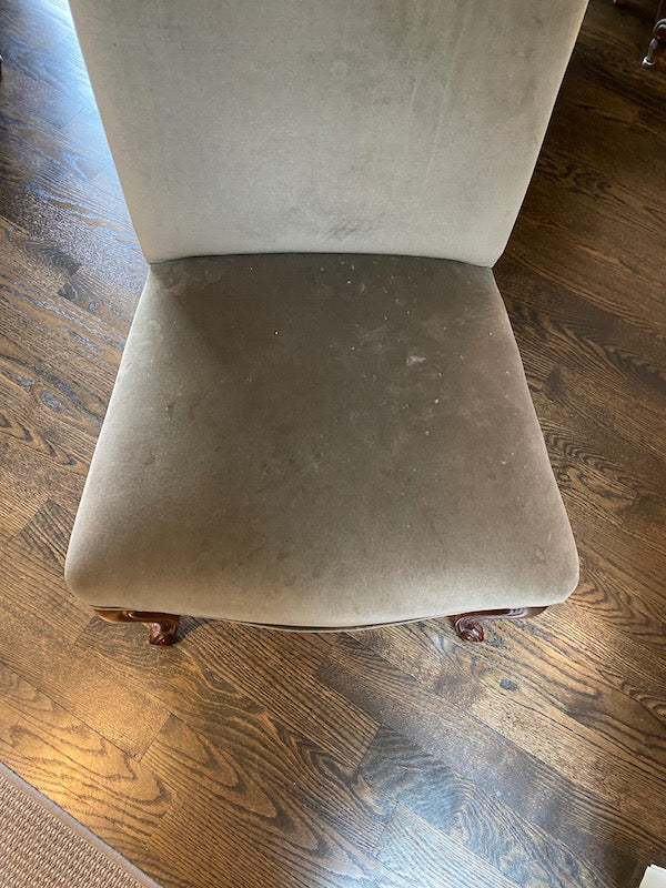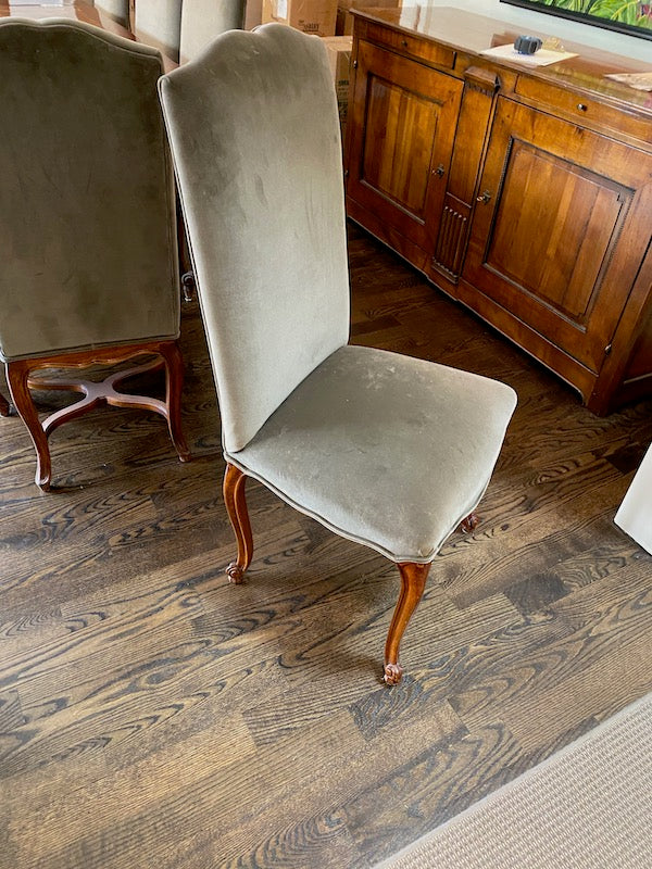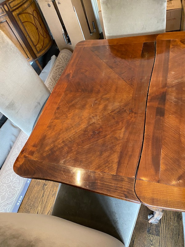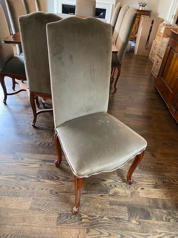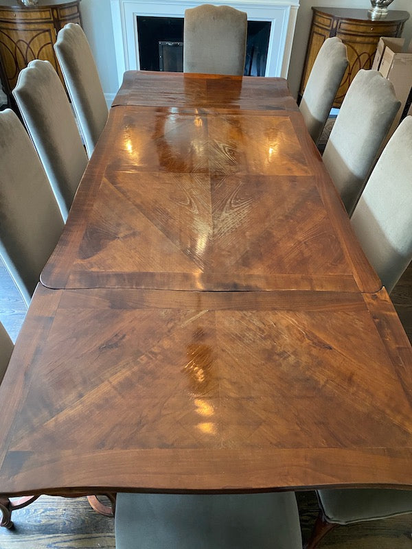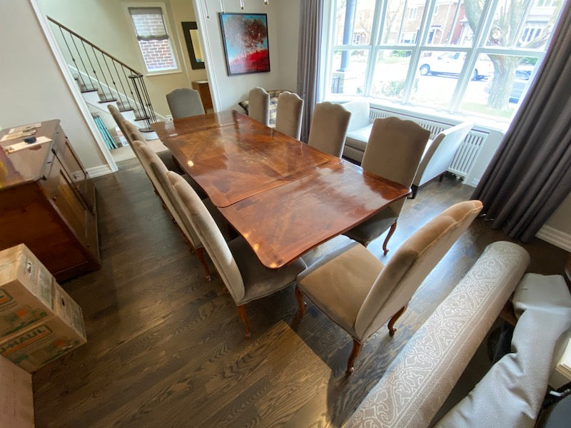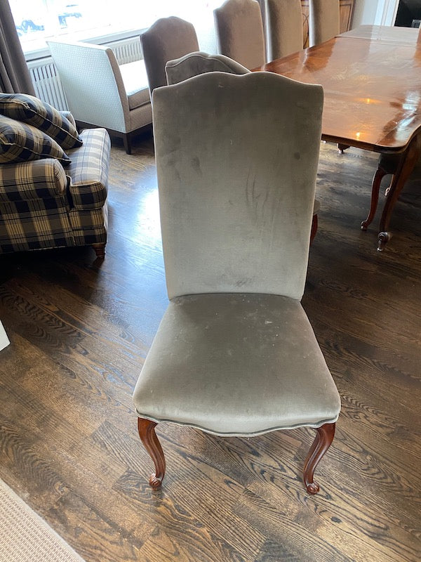 Mahogany Dining Table + 10 "Silva" Grey Dining Chairs.