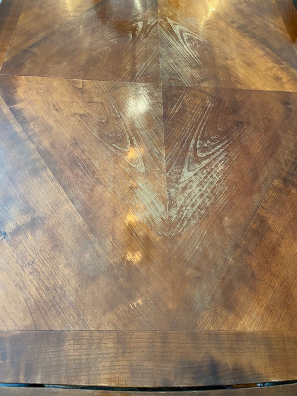 *2 leaves on either side can drop down to make the table smaller-- 23" each side.