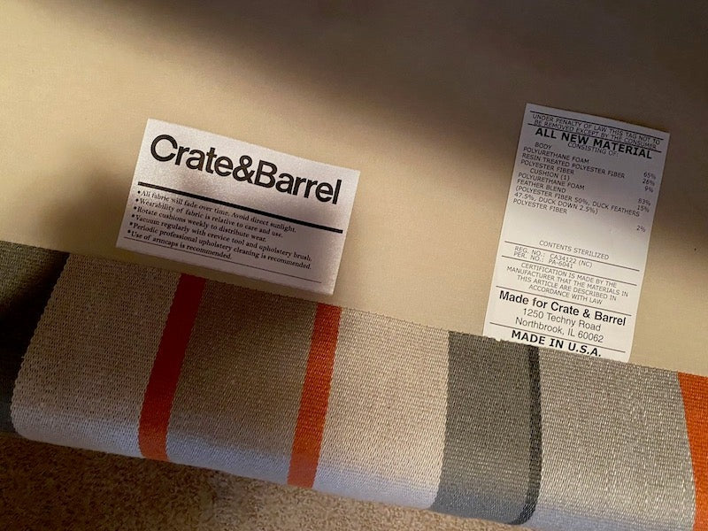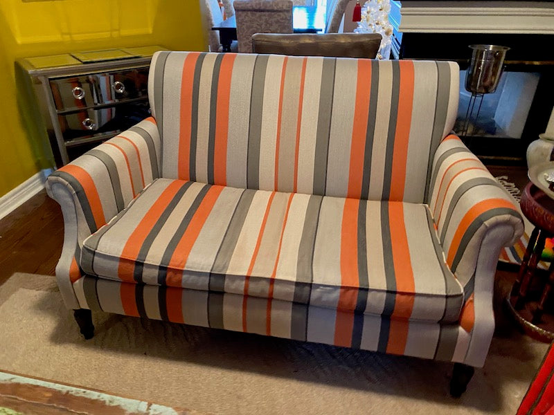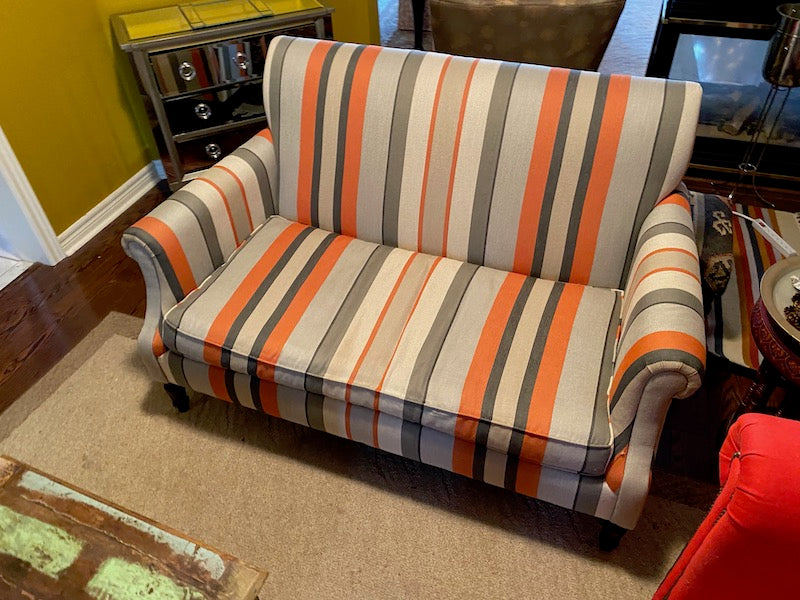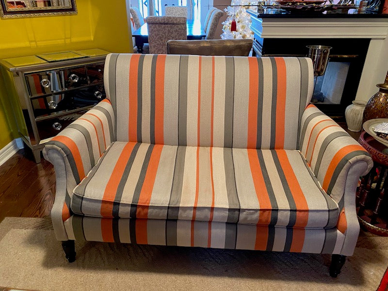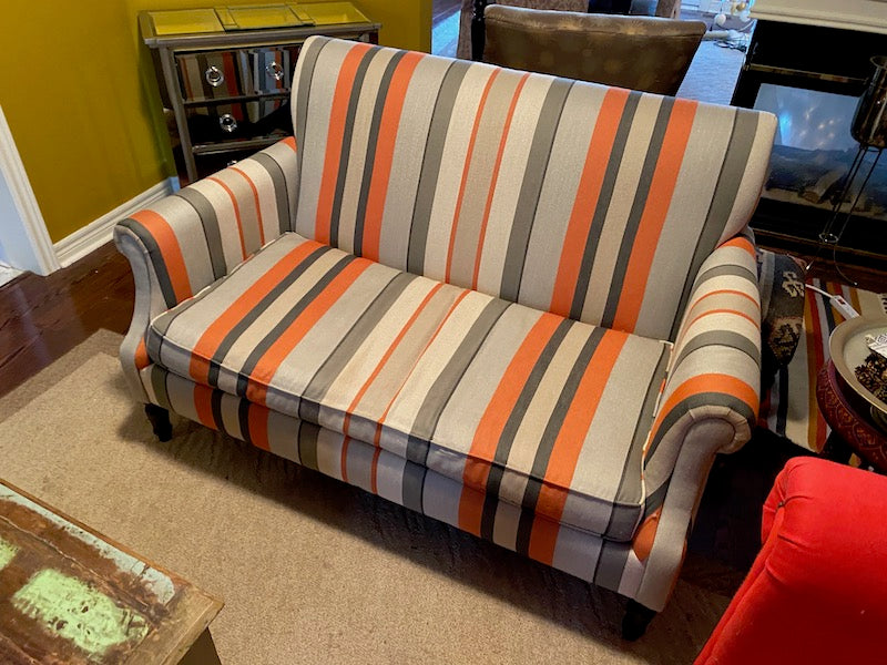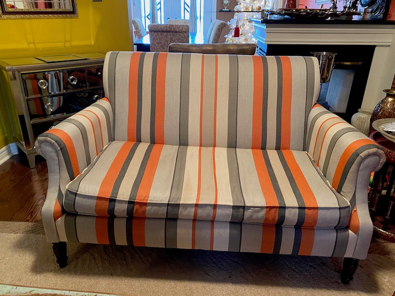 Crate & Barrel Striped Love Seat.