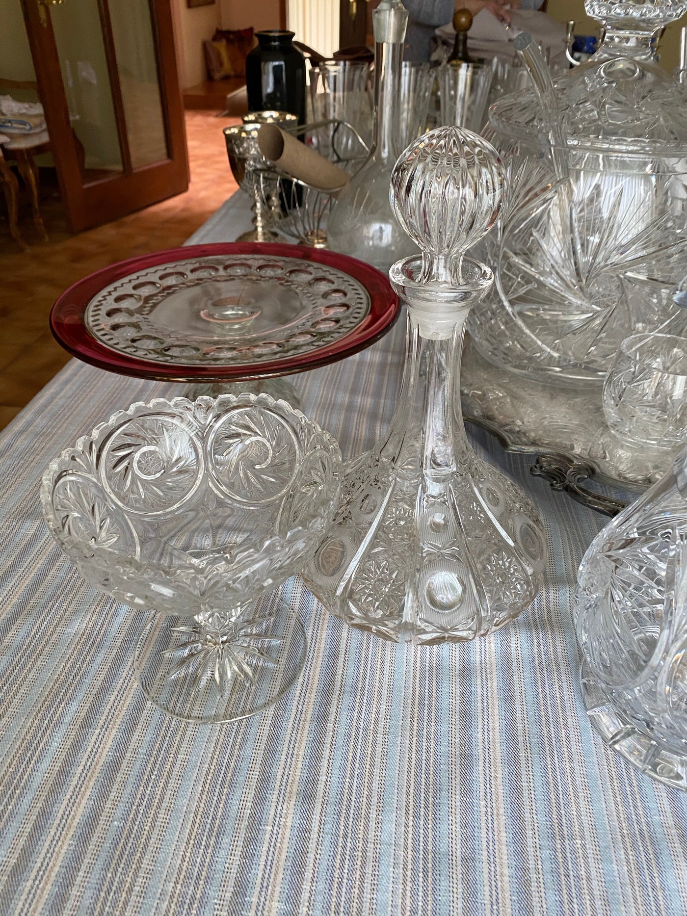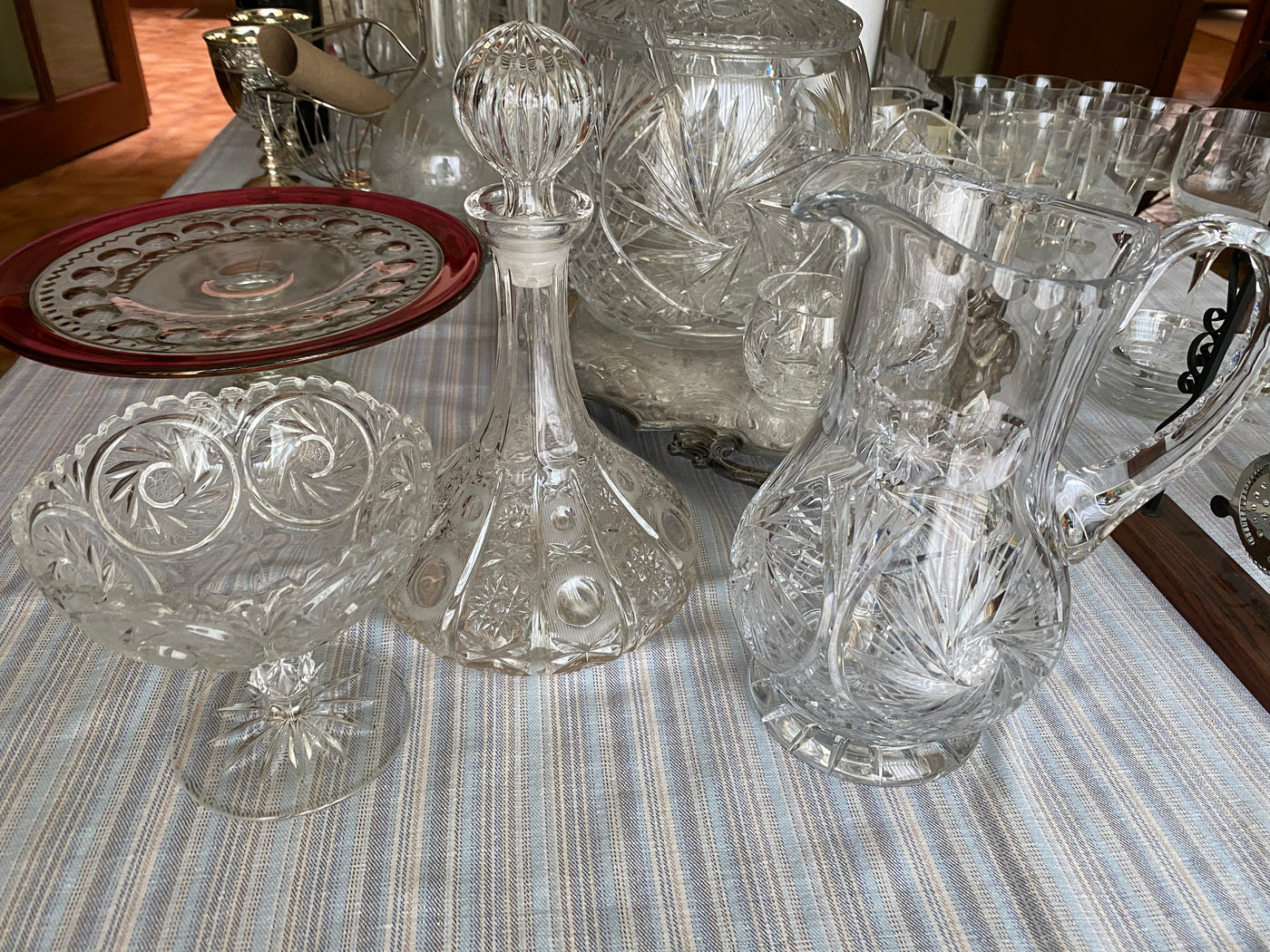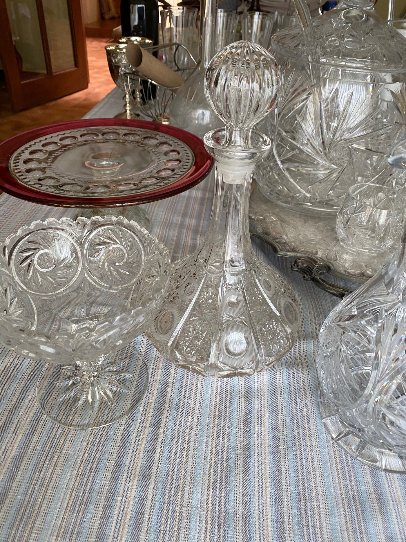Crystal Lot. Includes 3 pieces; decanter, jug and small bowl.