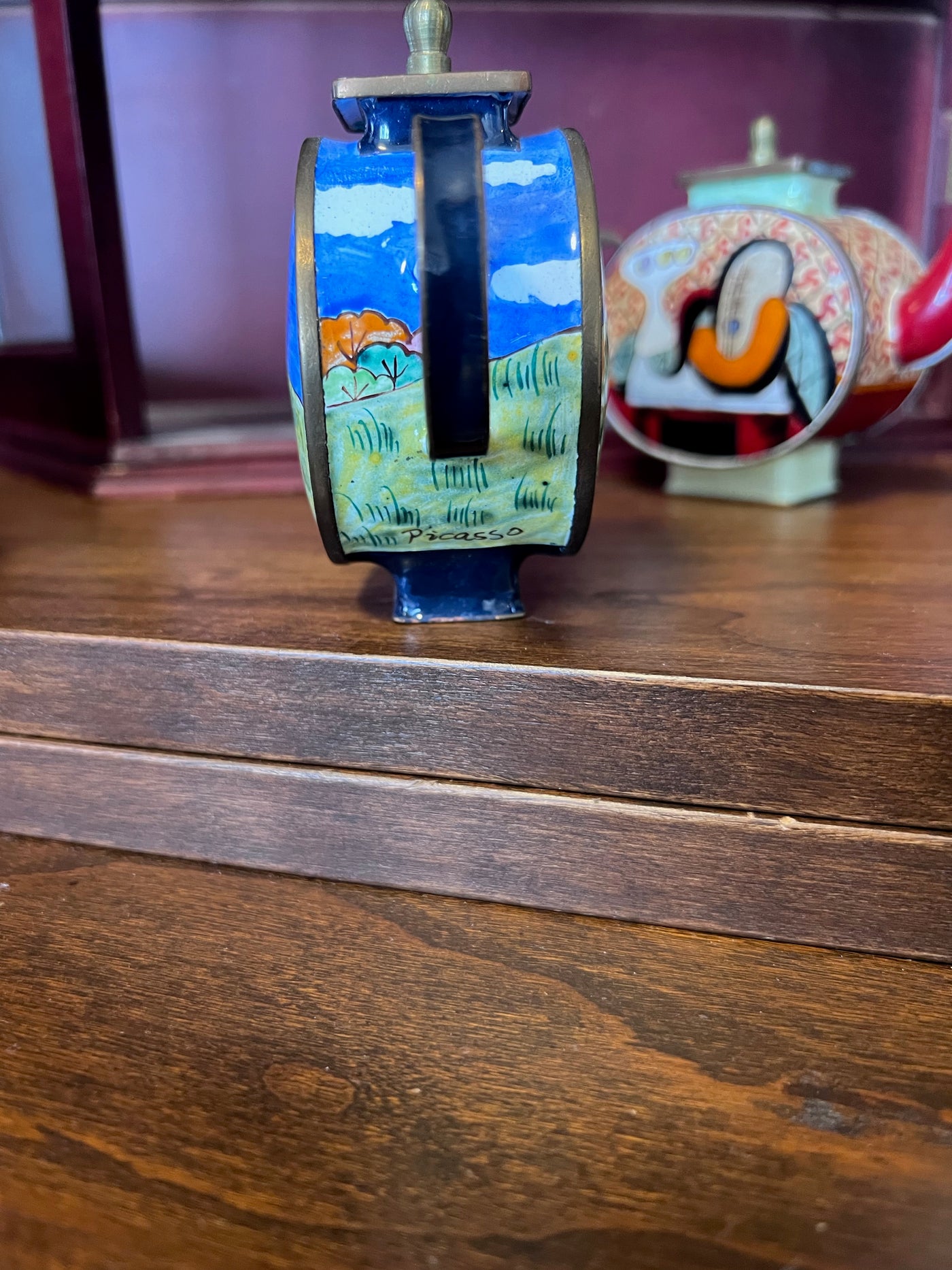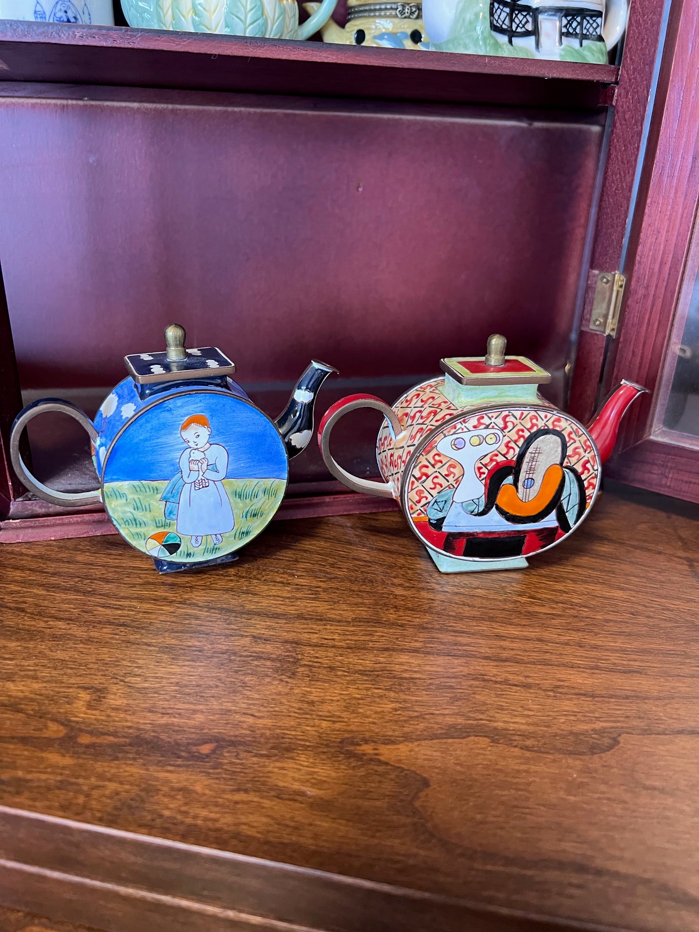 2 Vintage Miniature Enamelled Picasso Design Teapots.