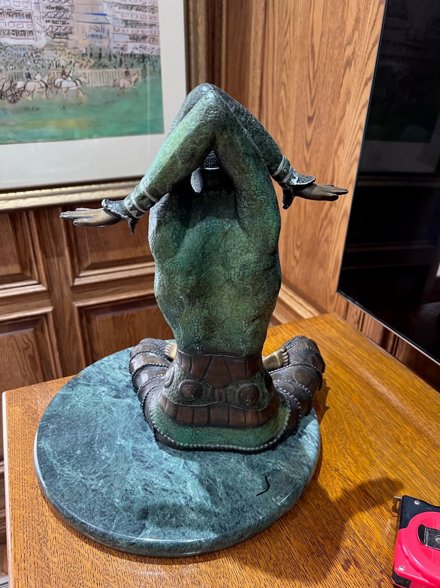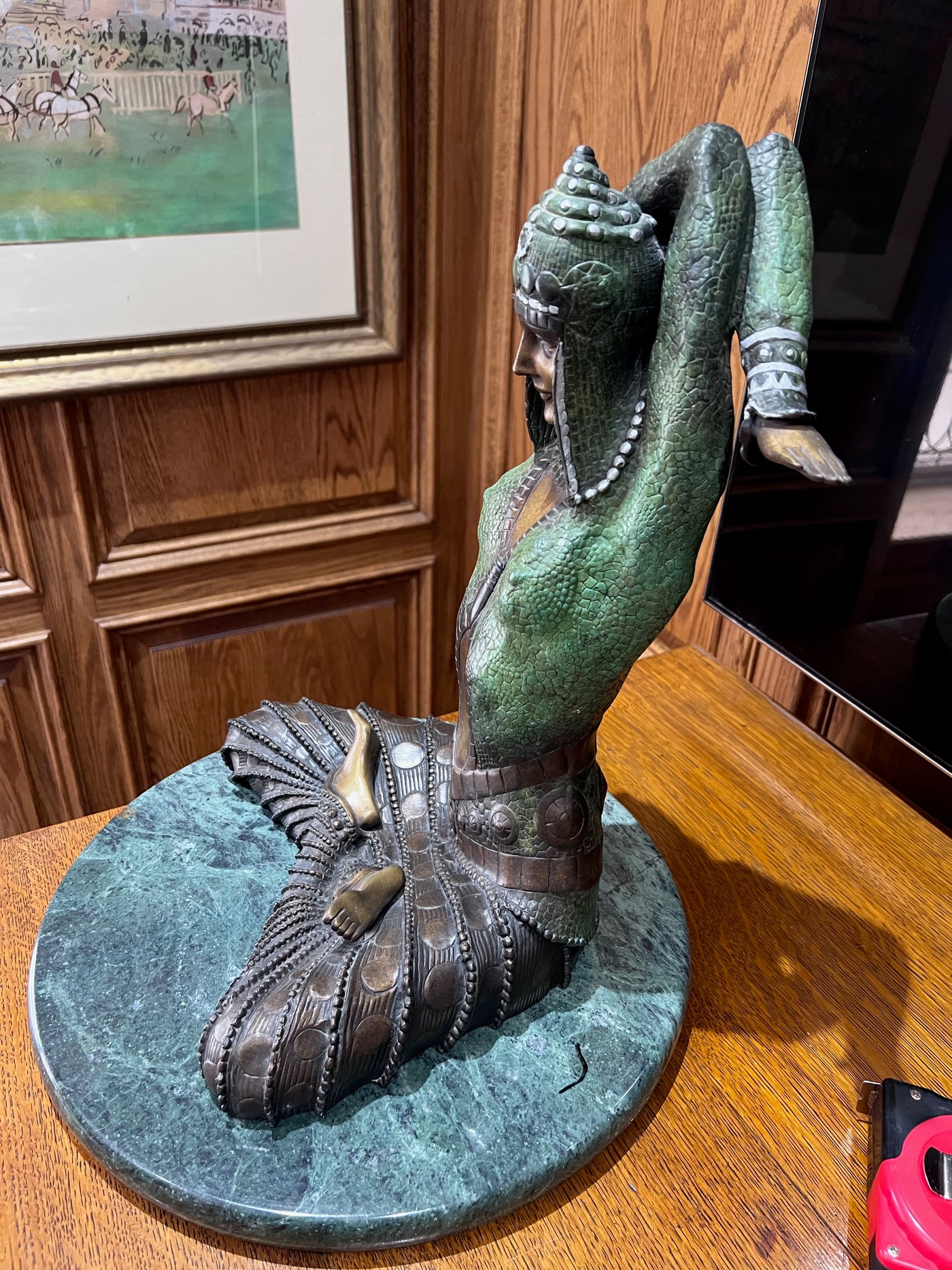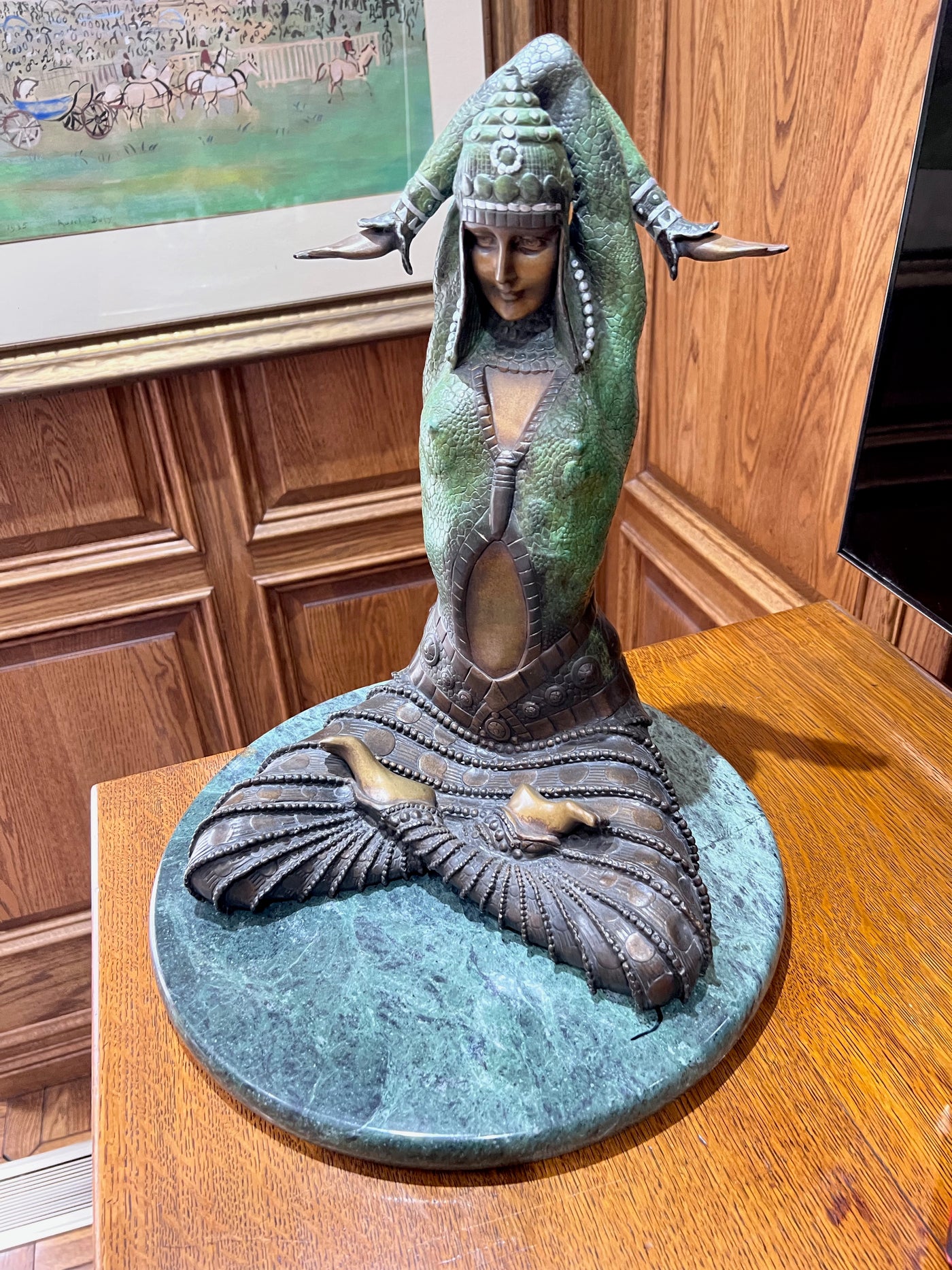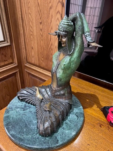 D.H. Chiparus Seated Dancer Bronze Sculpture on Round Marble Base- 14".