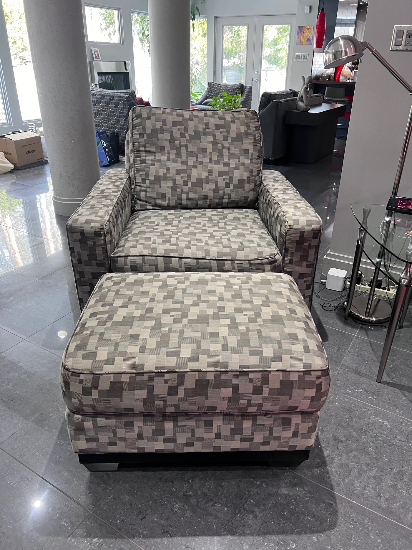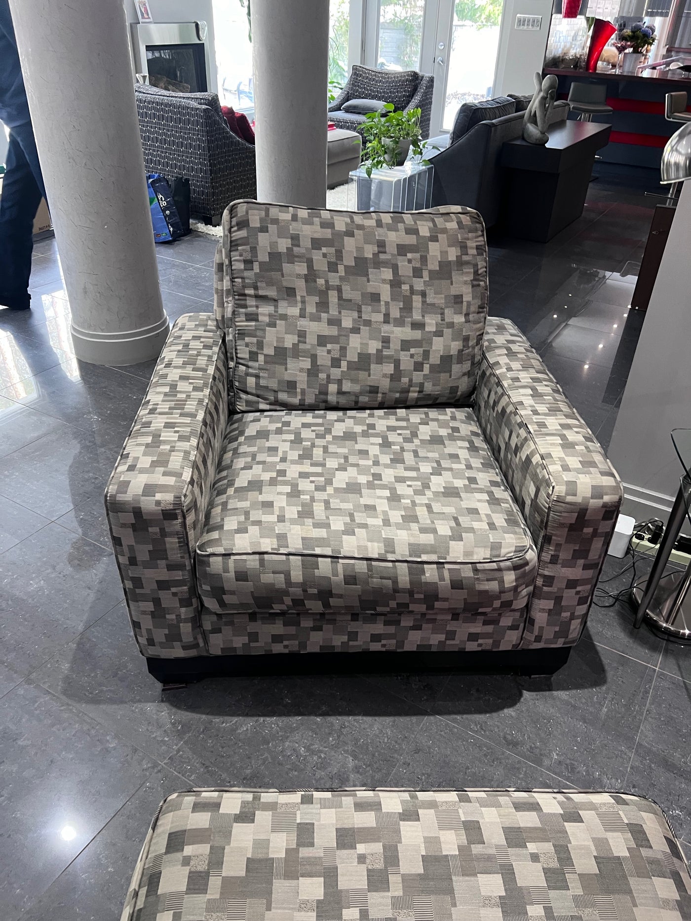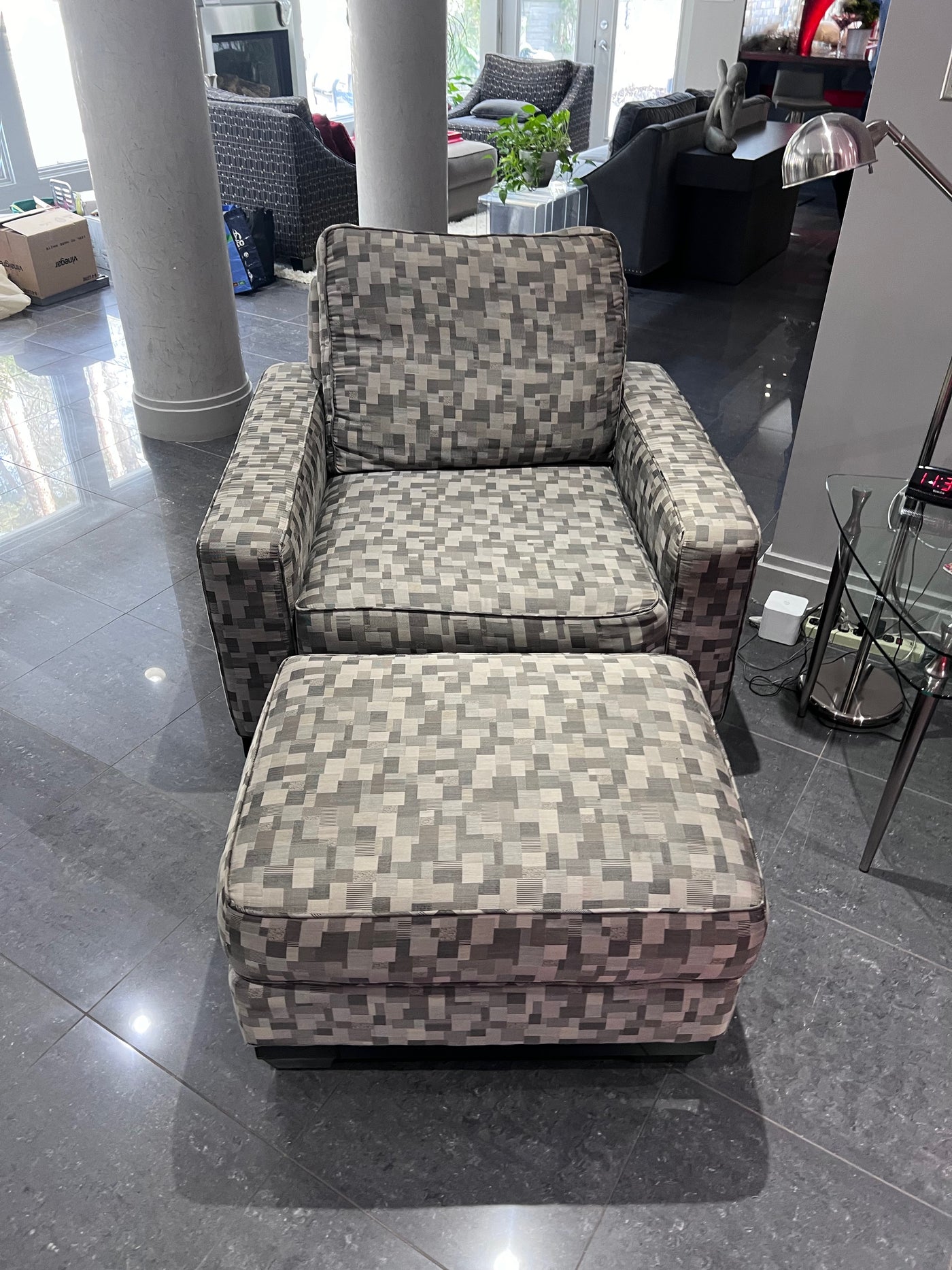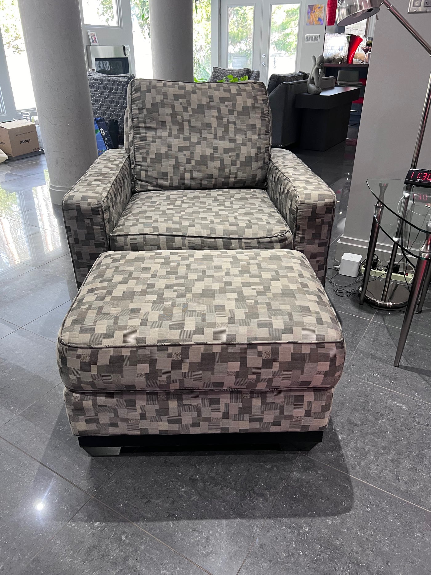 Chair- 42"w x 38"dOttoman- 29" x 22" x 18"h