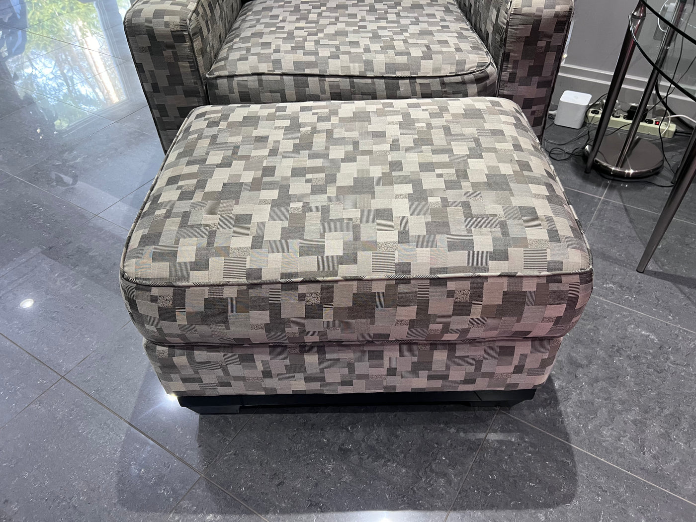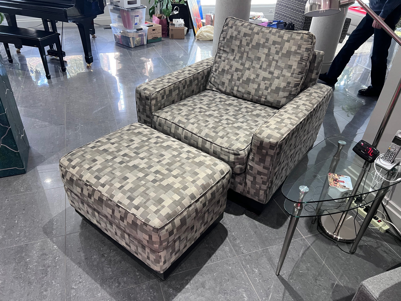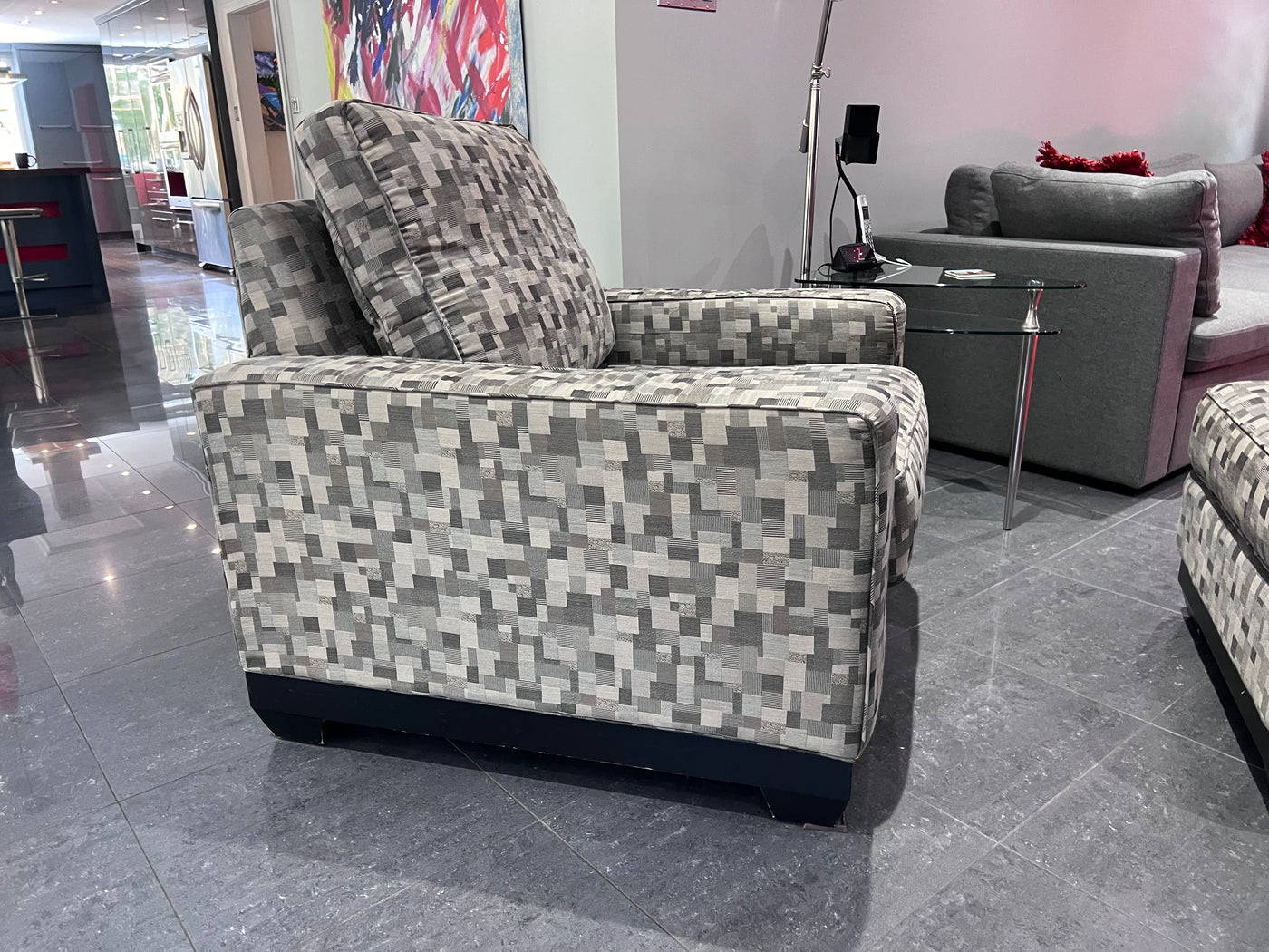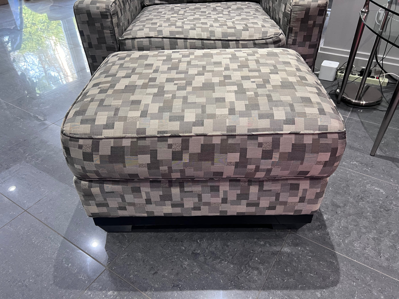 Chair- 42"w x 38"dOttoman- 29" x 22" x 18"h