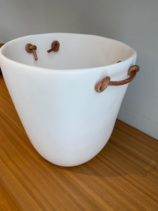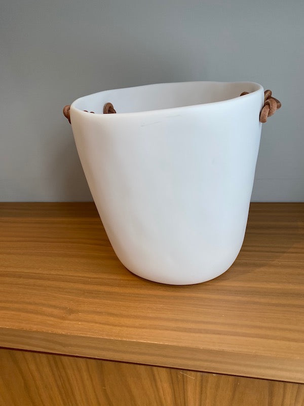 "TF Design" Barware Champagne Bucket With Leather Handles, White.
