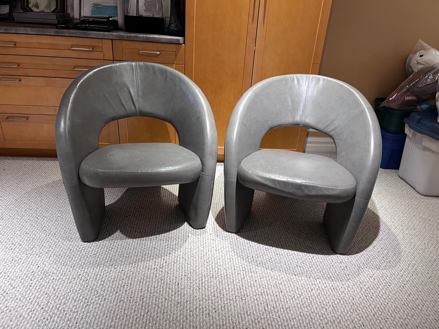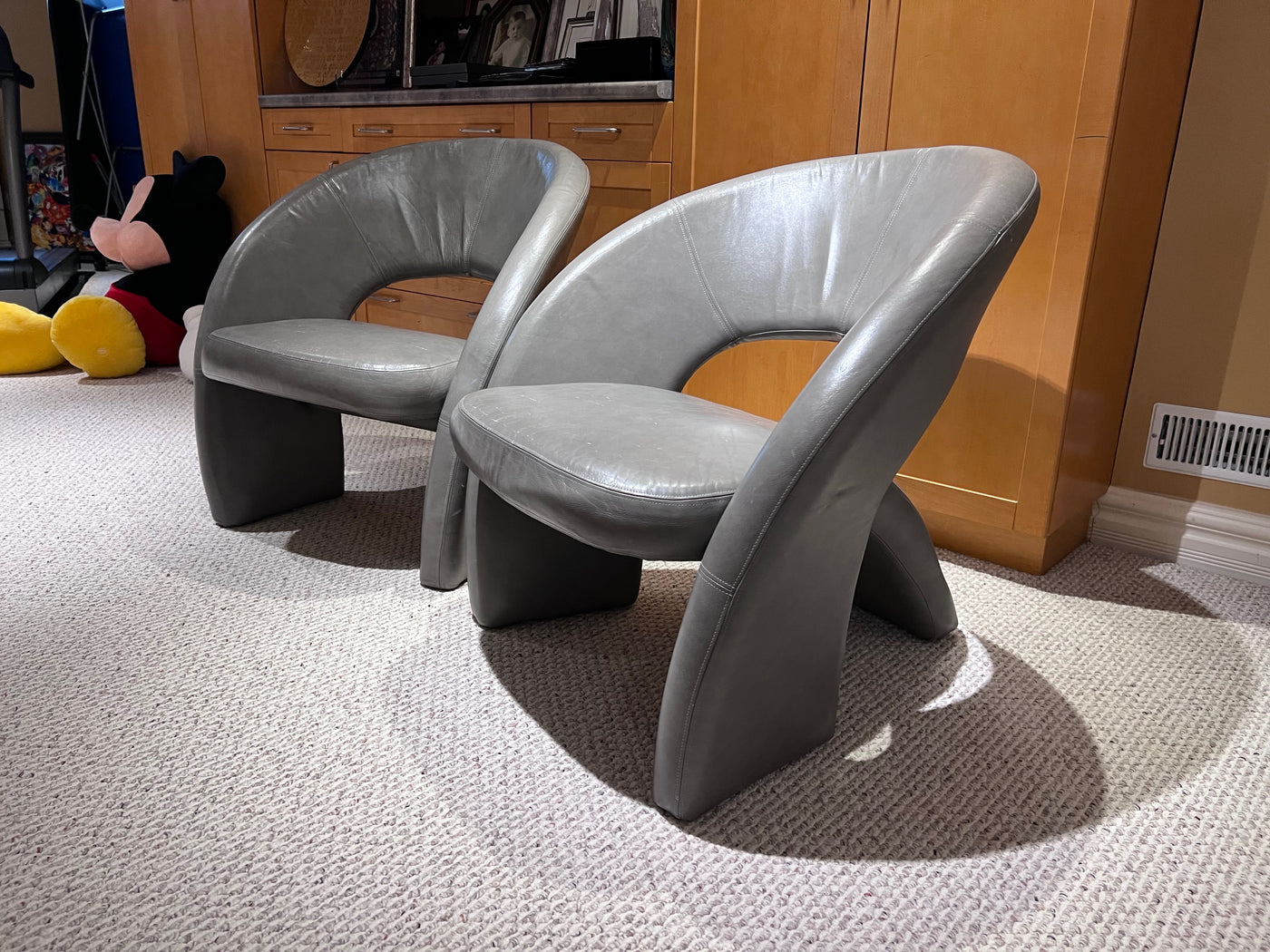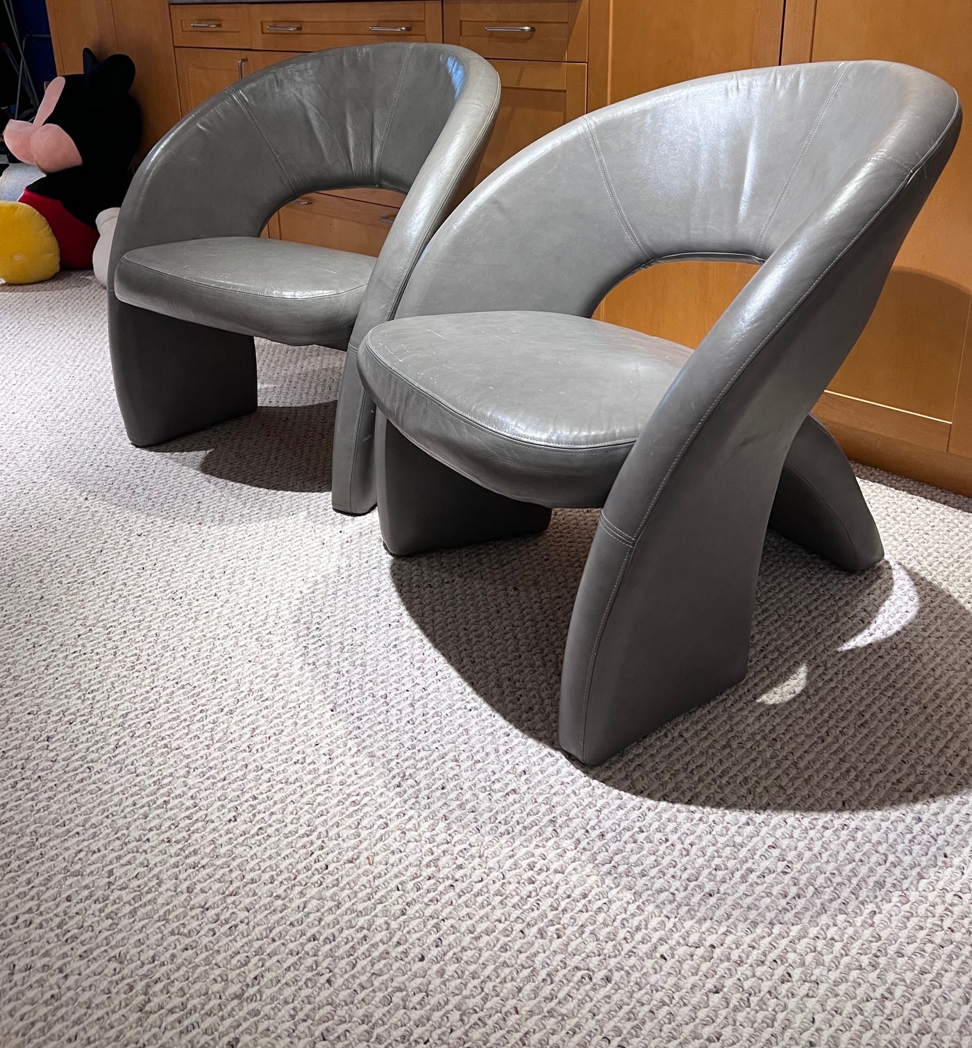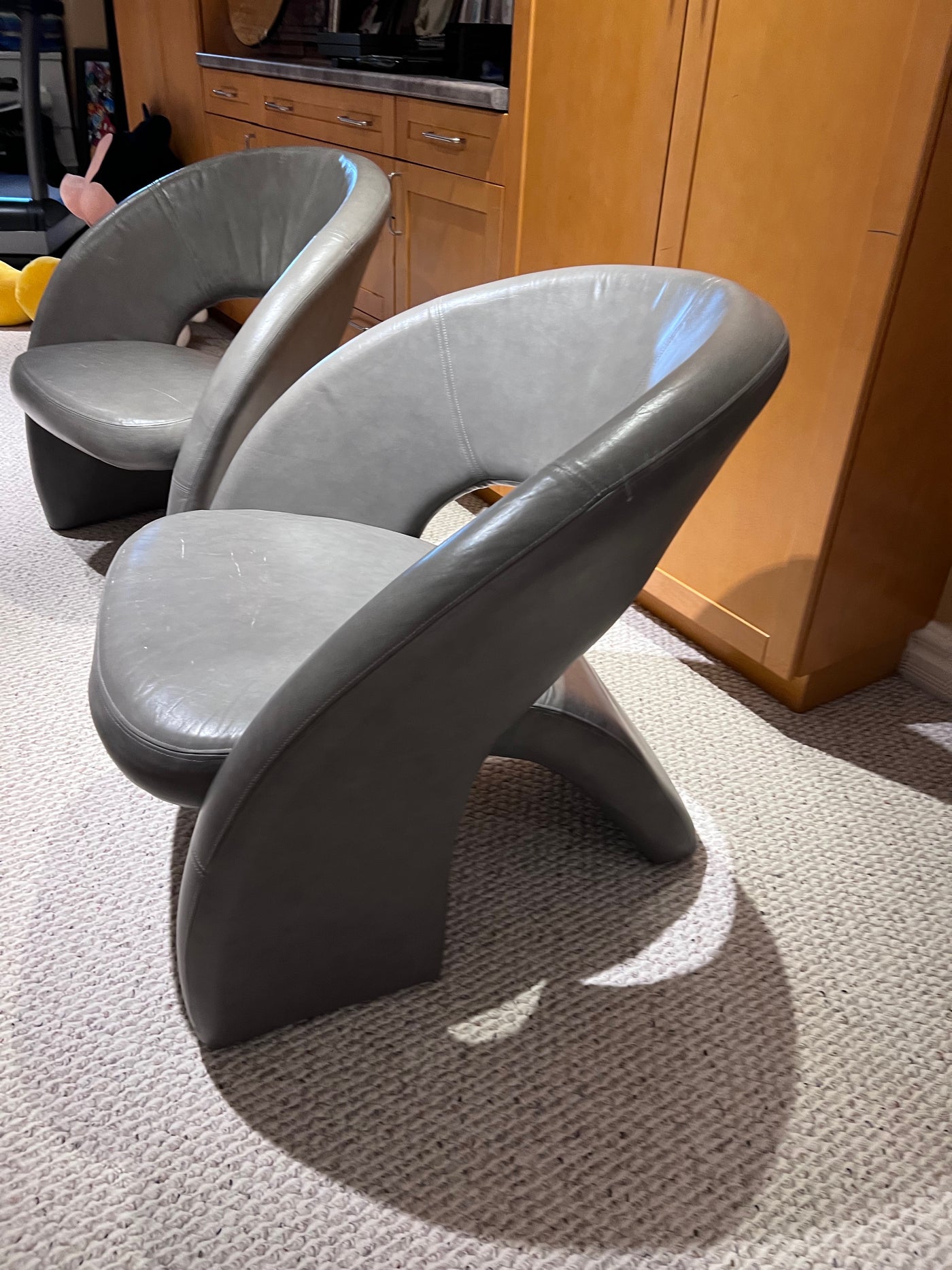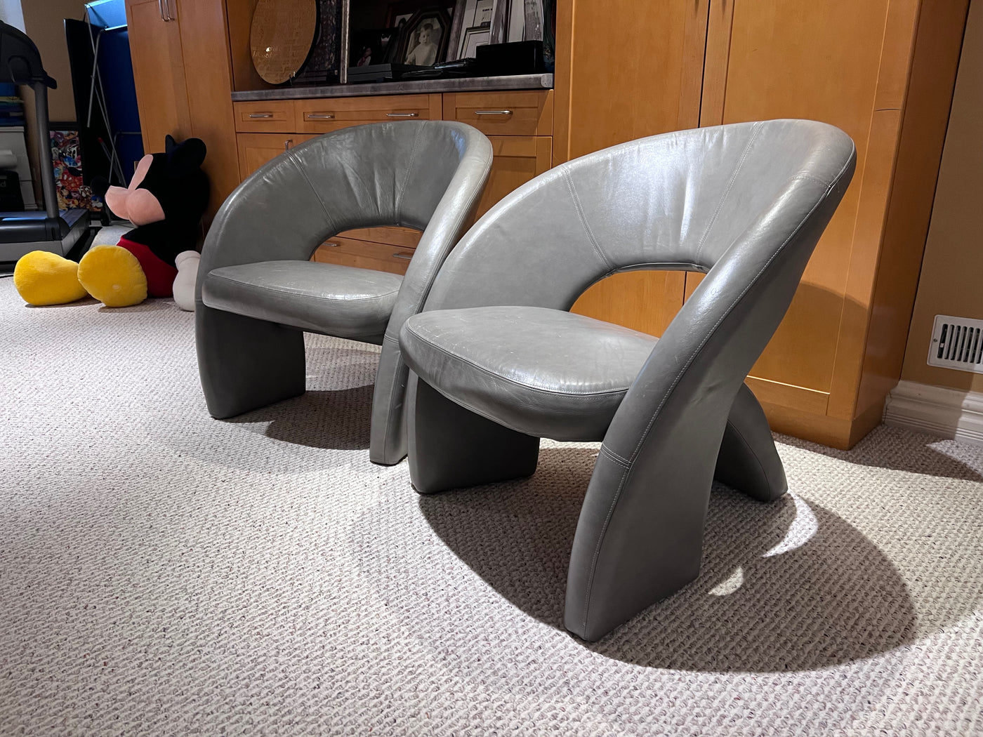Pair of Postmodern Jaymar Tongue Chairs, Grey Leather.