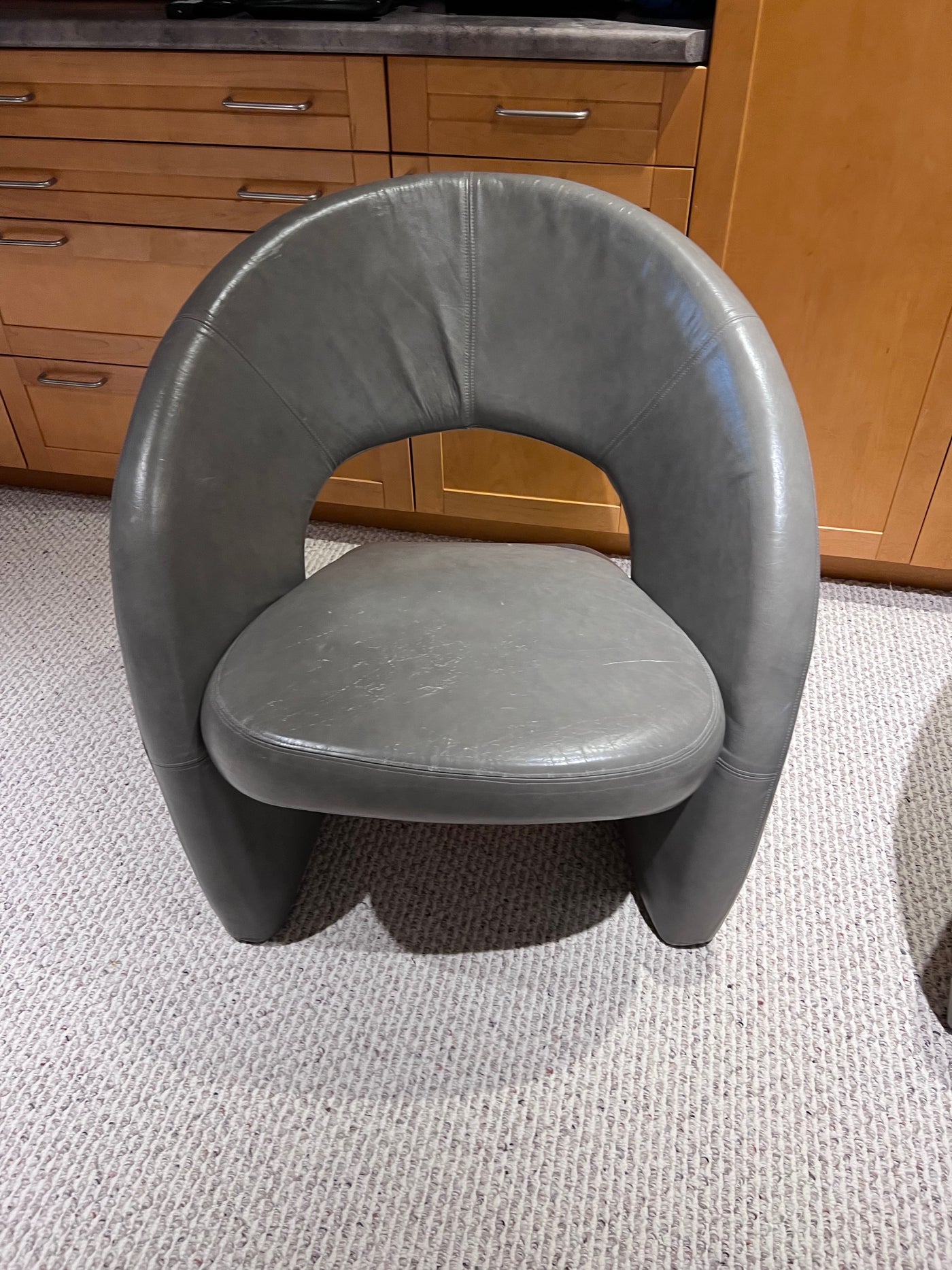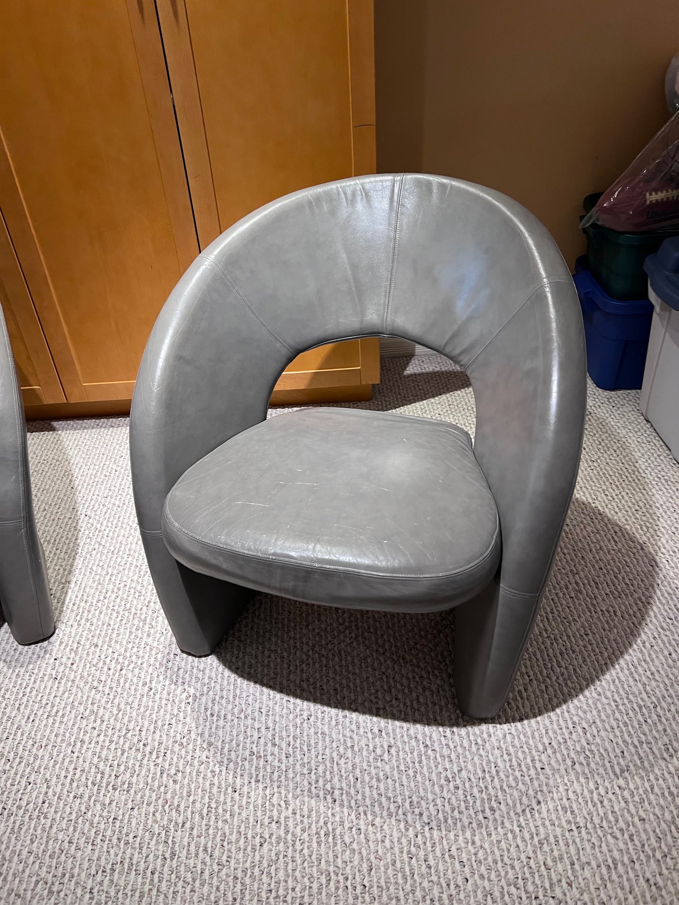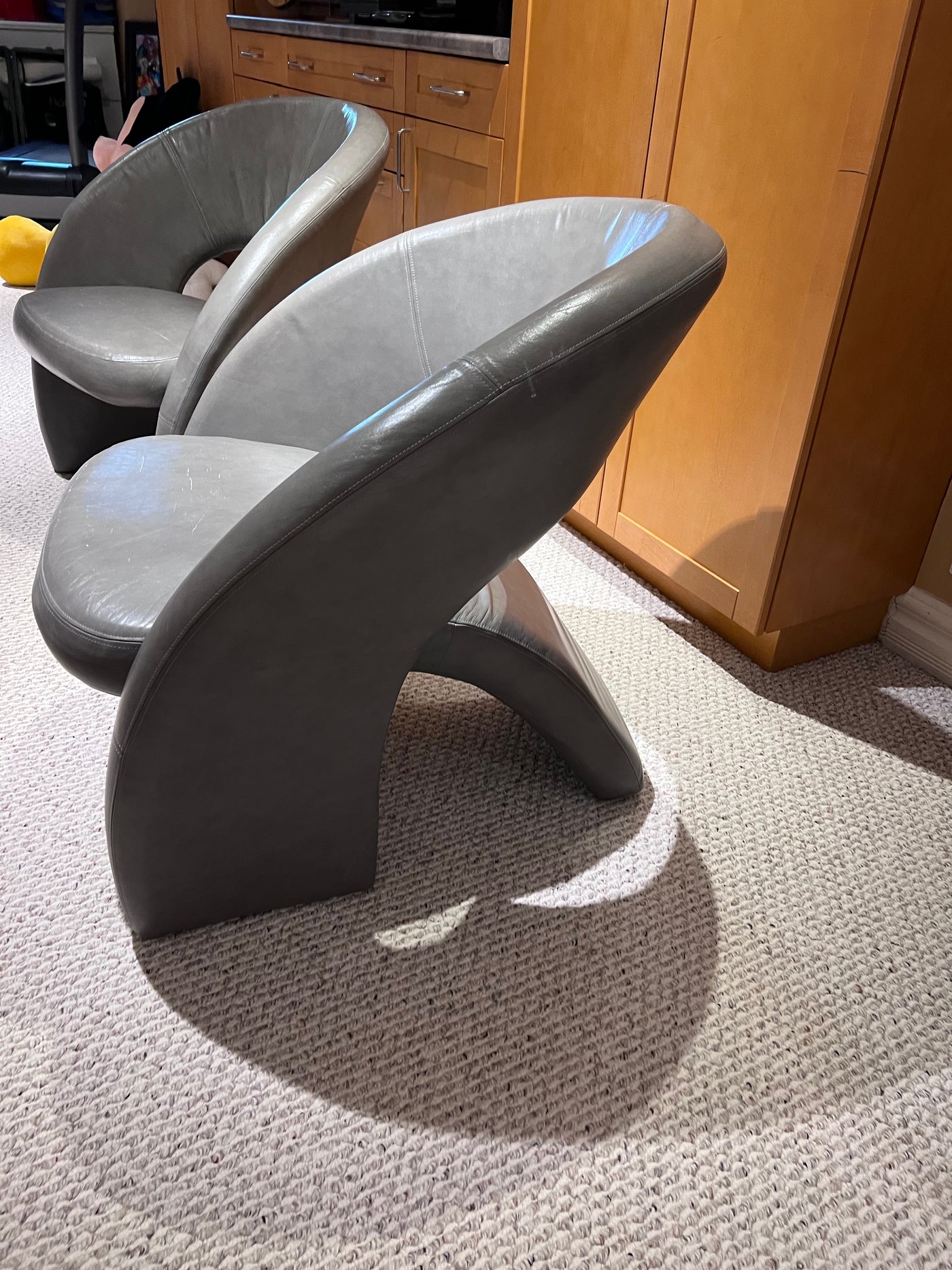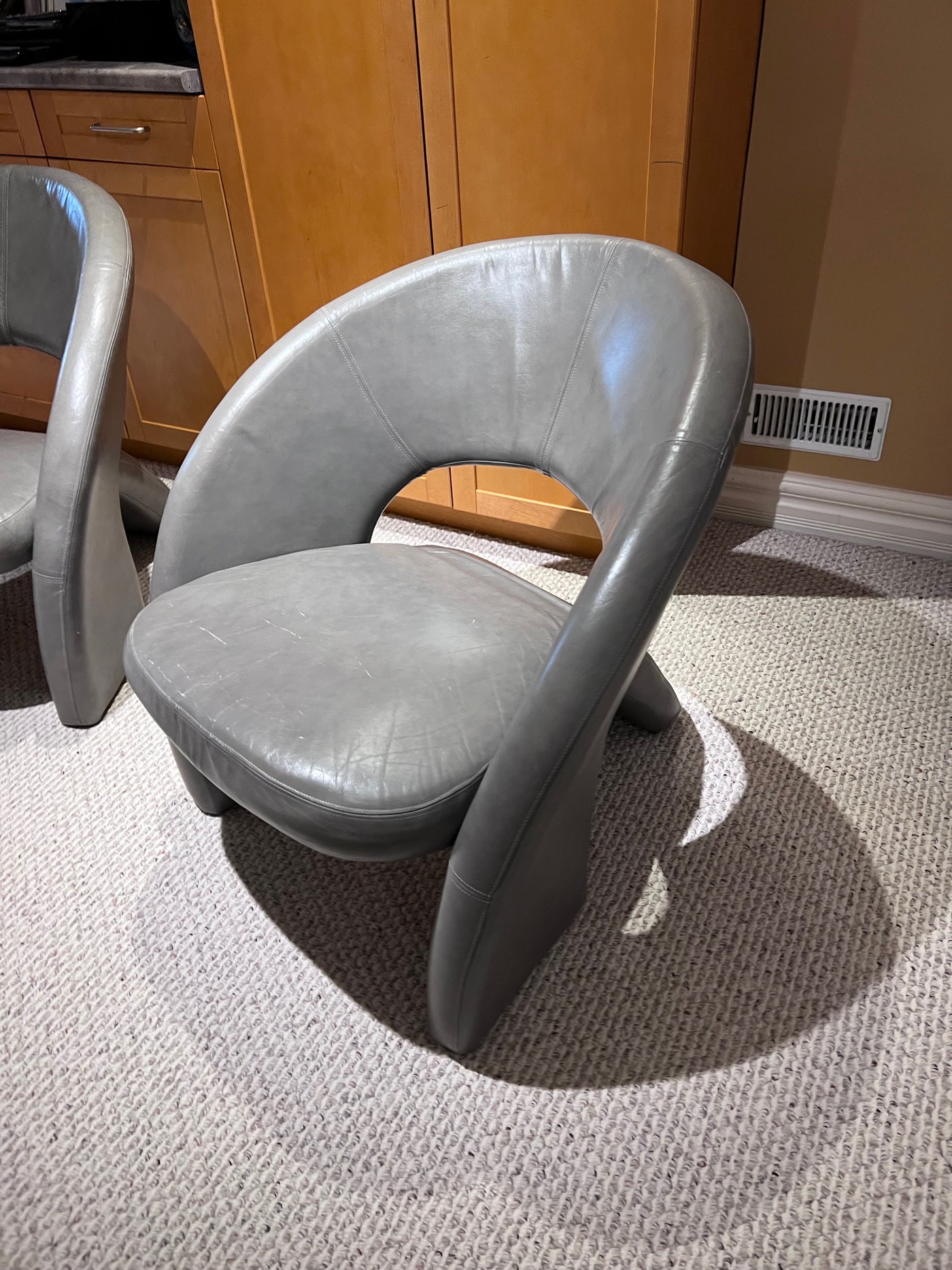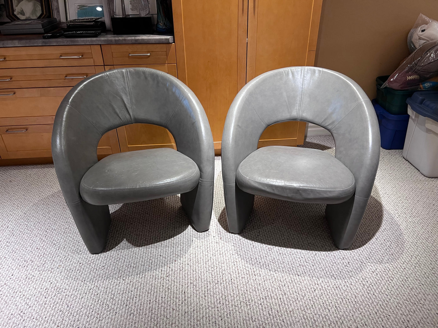 Pair of Postmodern Jaymar Tongue Chairs, Grey Leather.