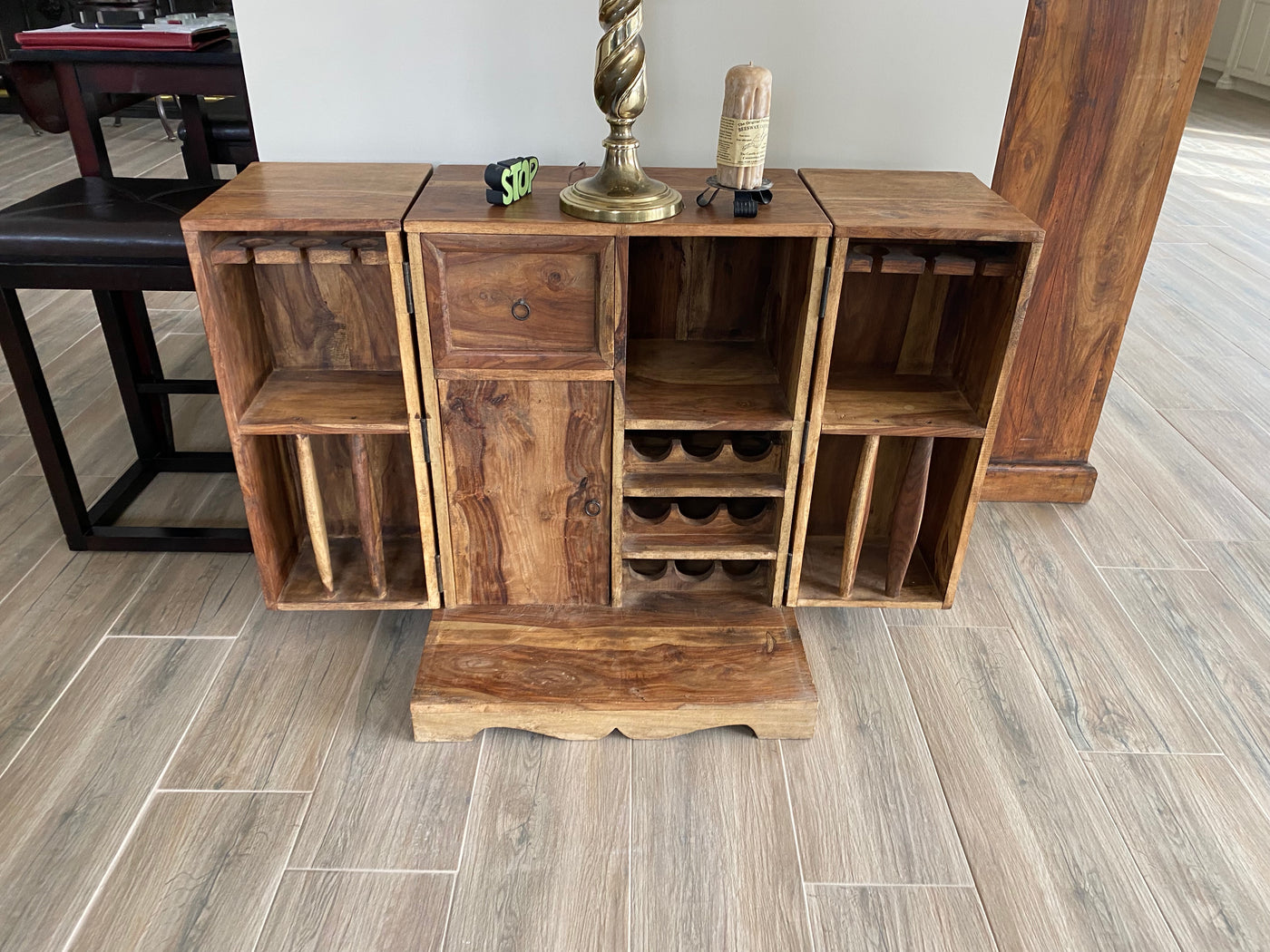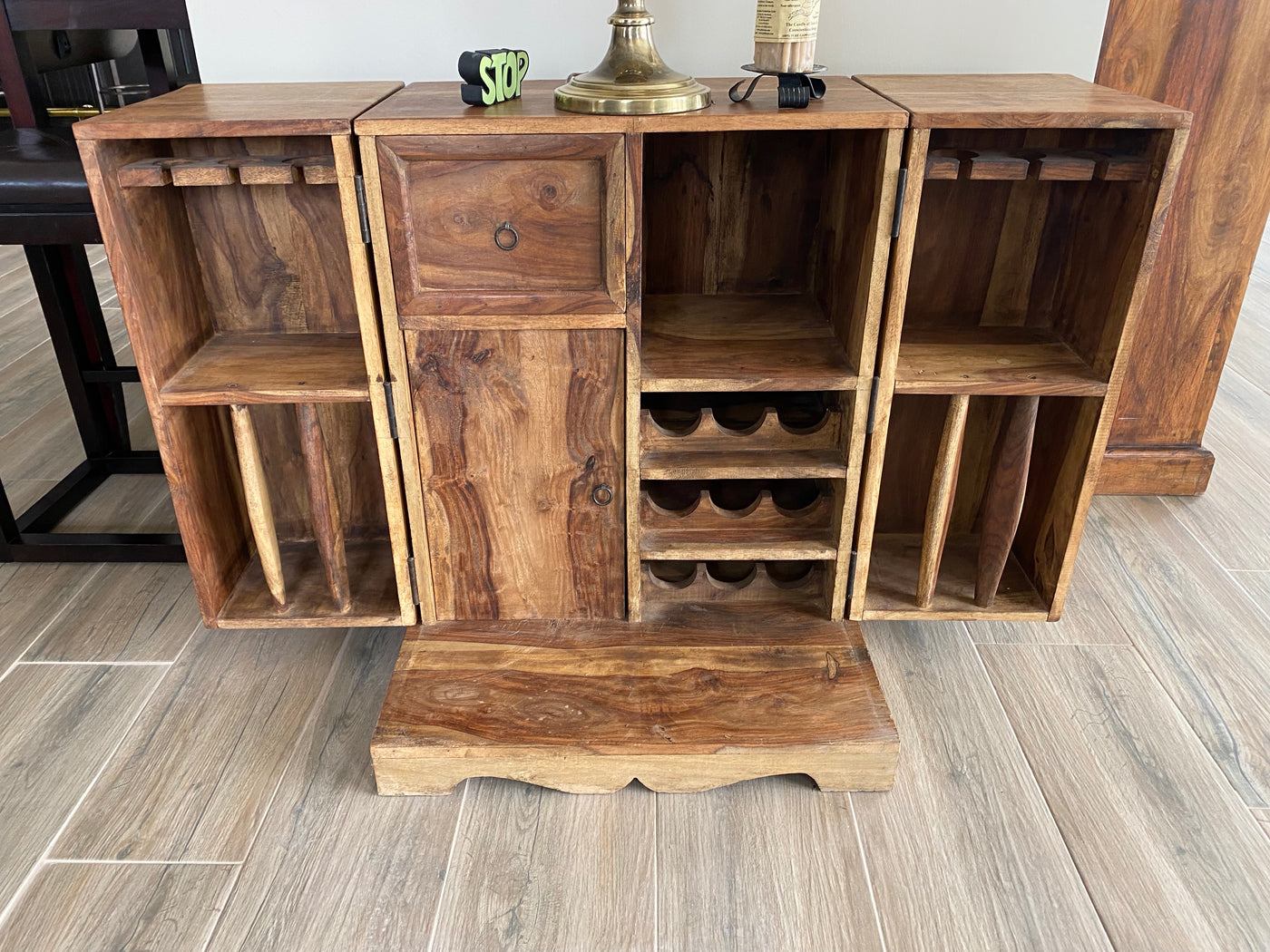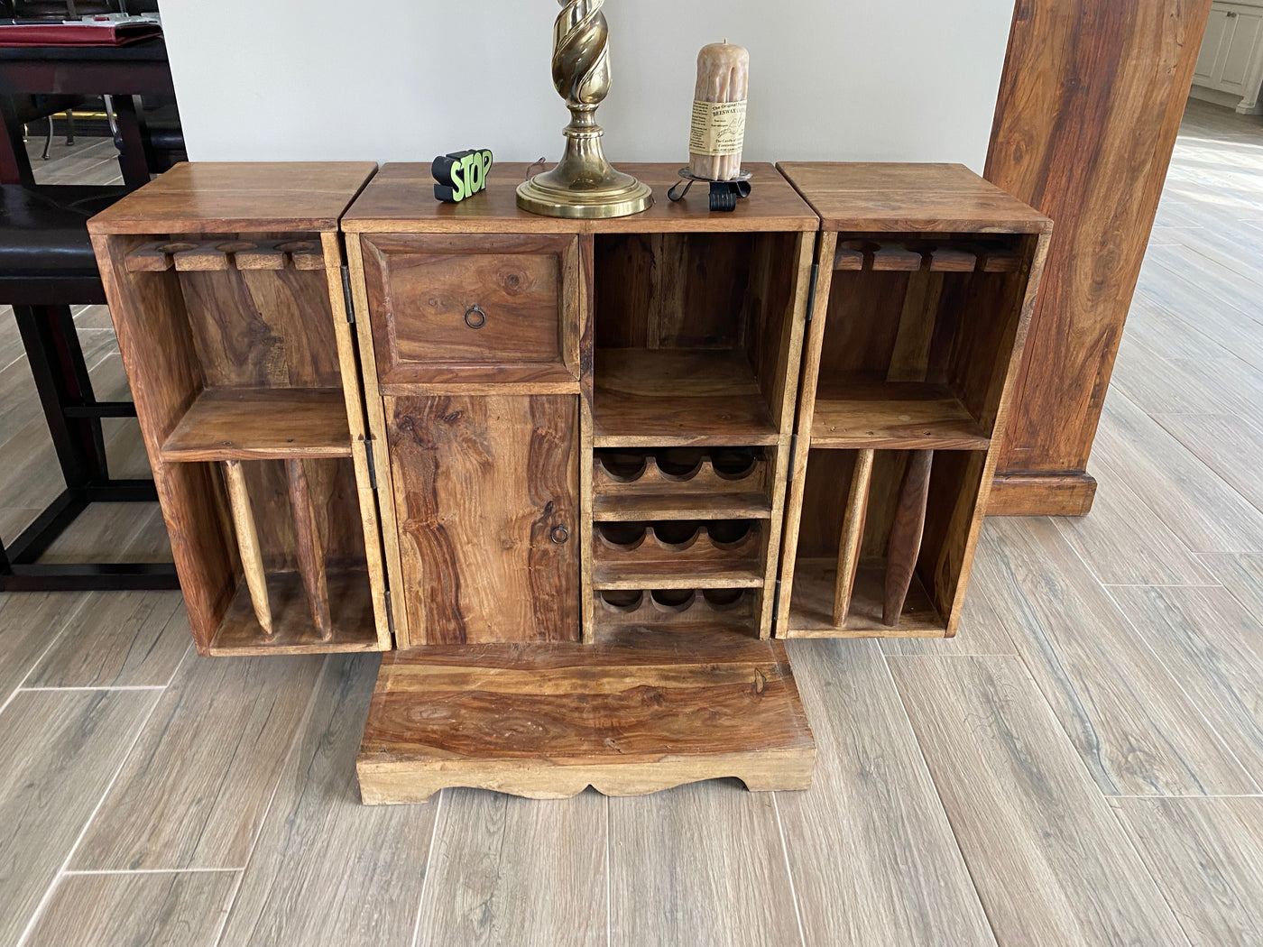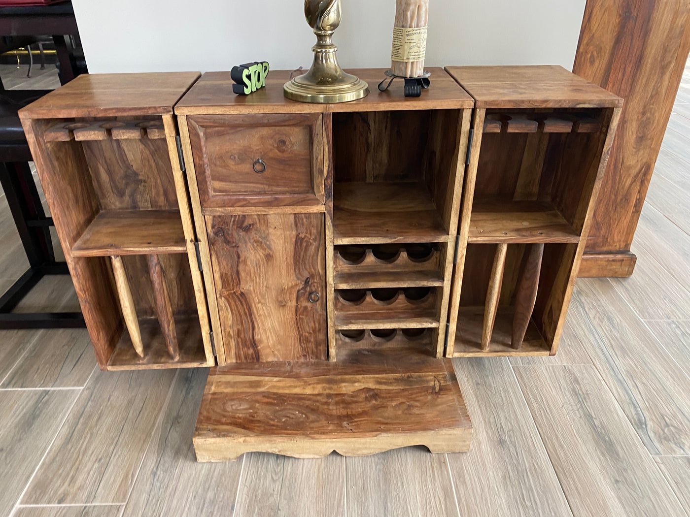 Live Edge Solid Wood Bar-Cabinet, Made in Mexico.