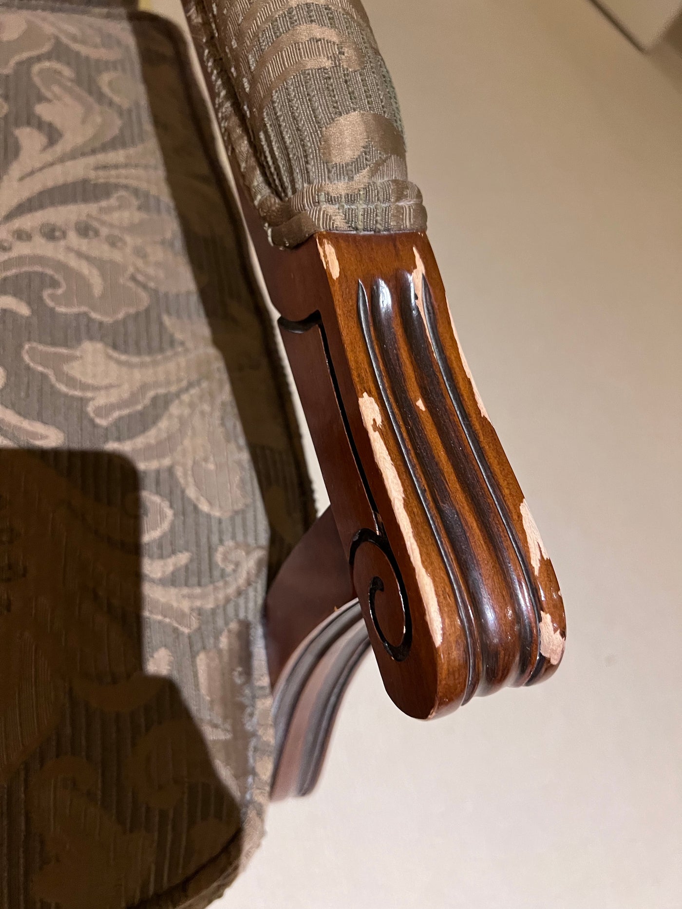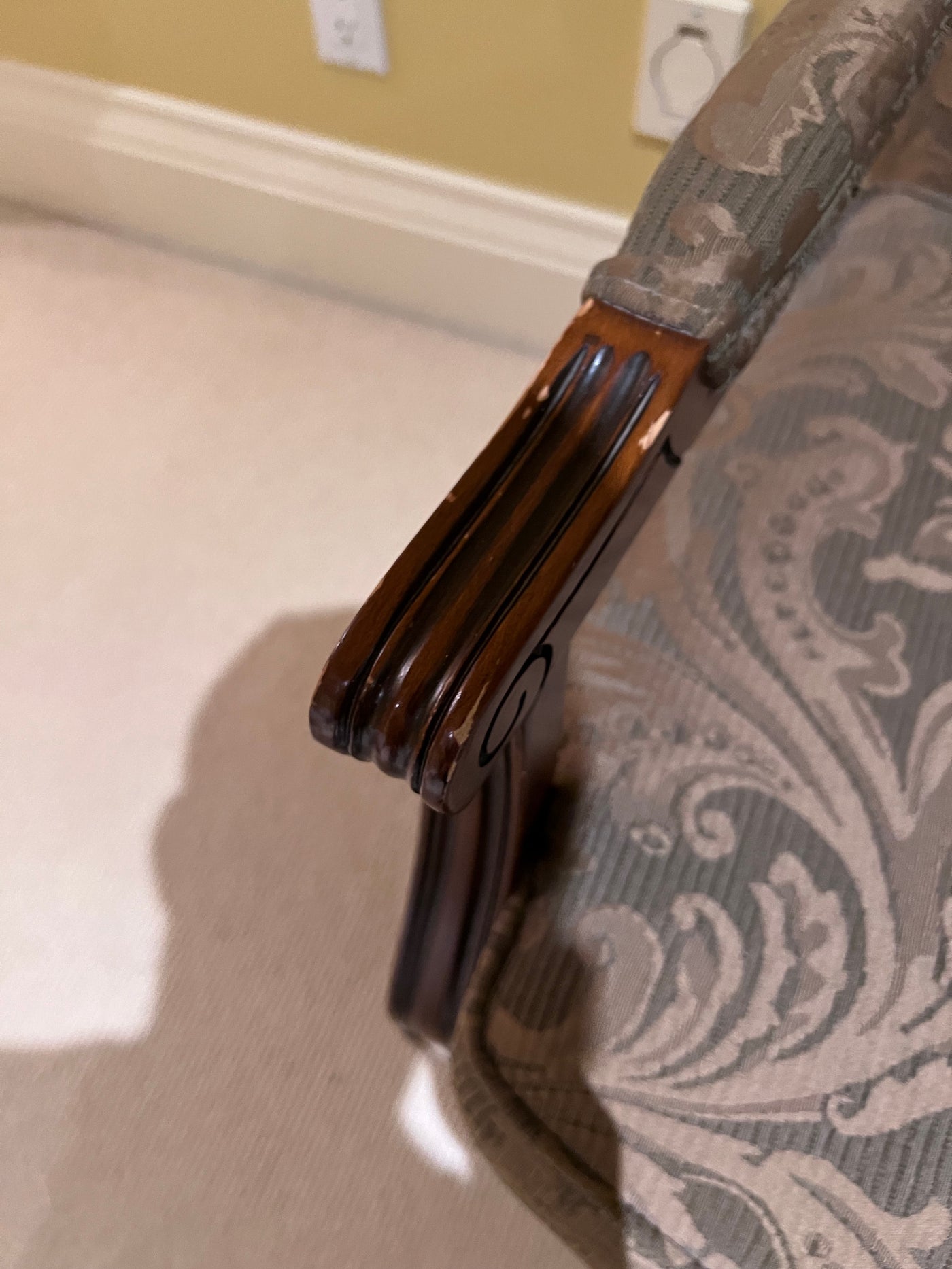 *condition: the wood finish on the arms has chips and is peeling. Please see pictures for details.