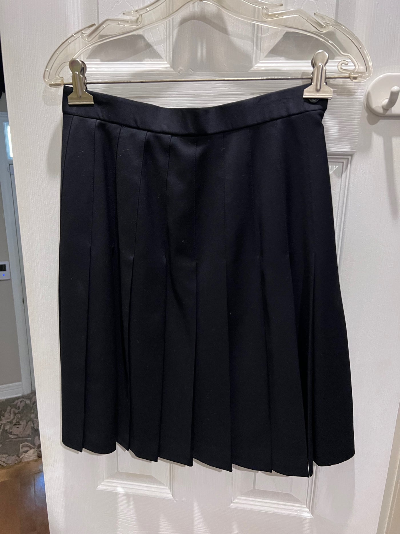 Burberry Double Breasted Navy Suit with Matching Pleated Skirt (Size: jacket- 8, skirt- 6)