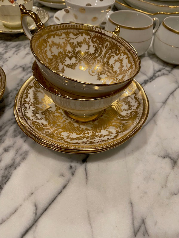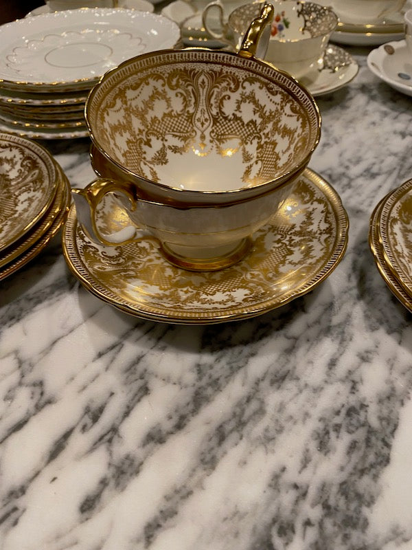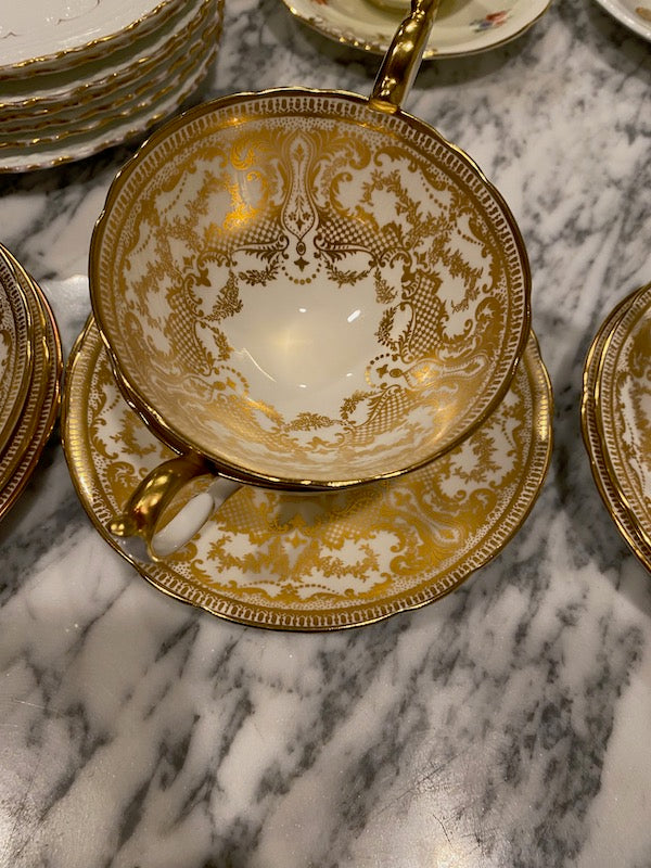 6 Aynsley Bone China 'Gold' Cups & Saucers- 7949.